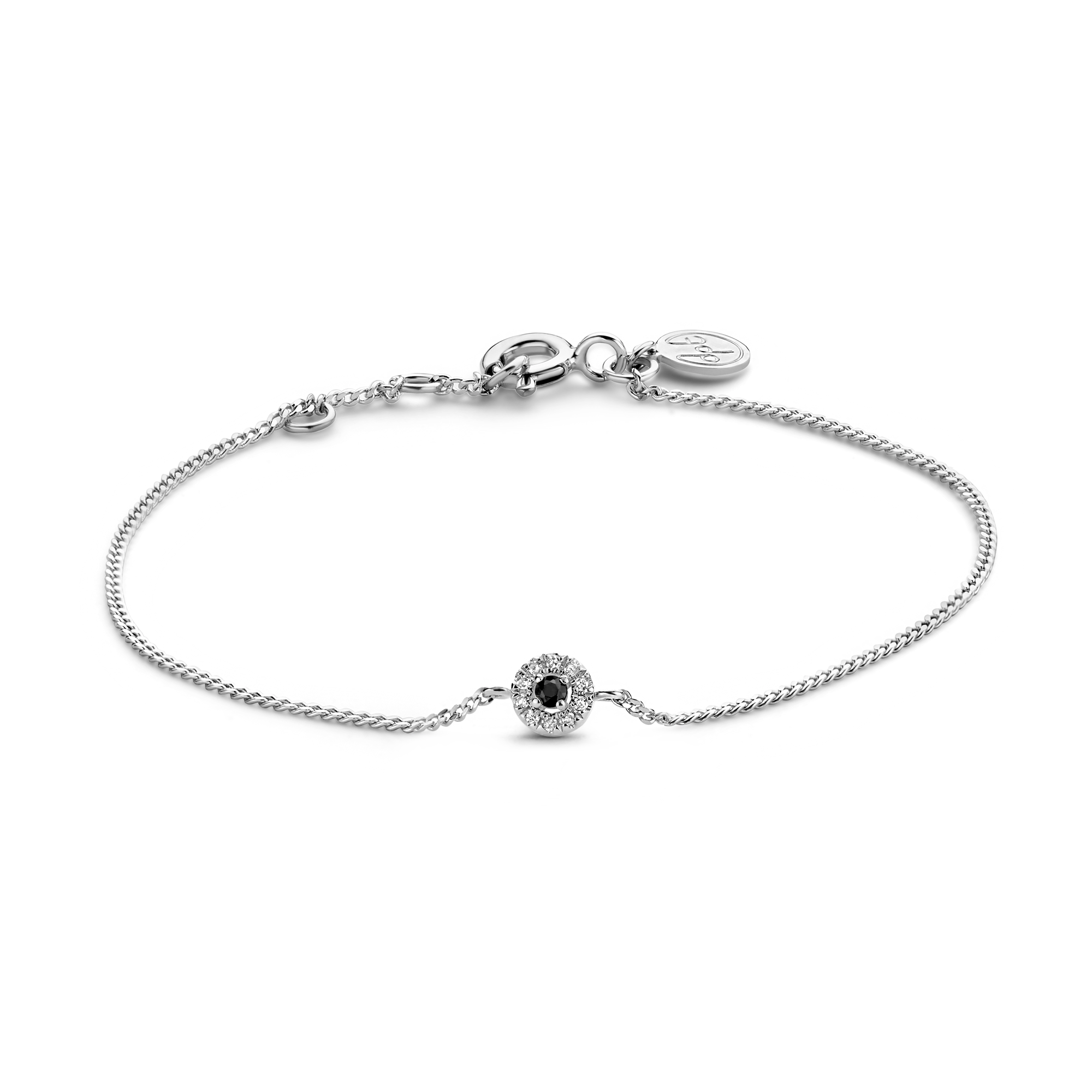 A gorgeous shimmering diamond halo, encircling a pitch-black Onyx gemstone. A divine new addition to mingle with our Circles collection. Meet me at midnight, underneath the stars.