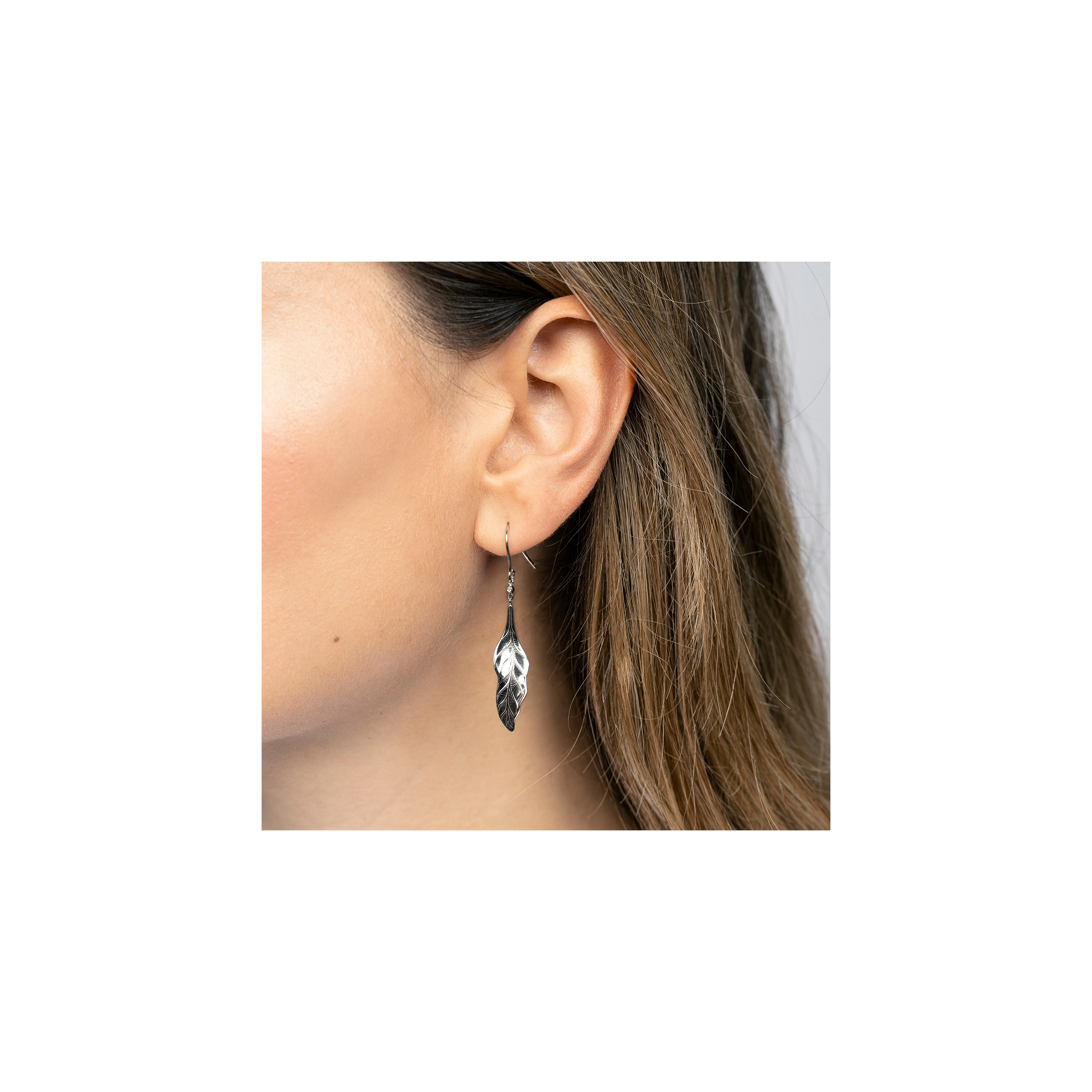 Inspired by the quiet strength and revolving blossoming of the earth element. With its petal-inspired design, softly brushed finish, and a touch of sparkle from natural white diamonds (2x), these hook earrings whisper luxury while celebrating nature’s elegance.