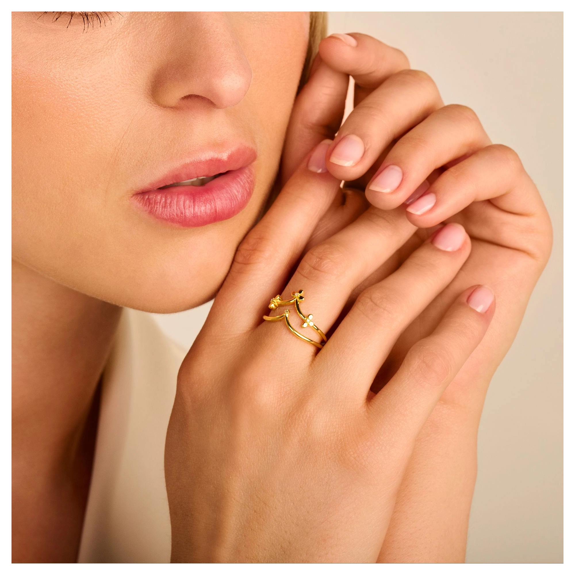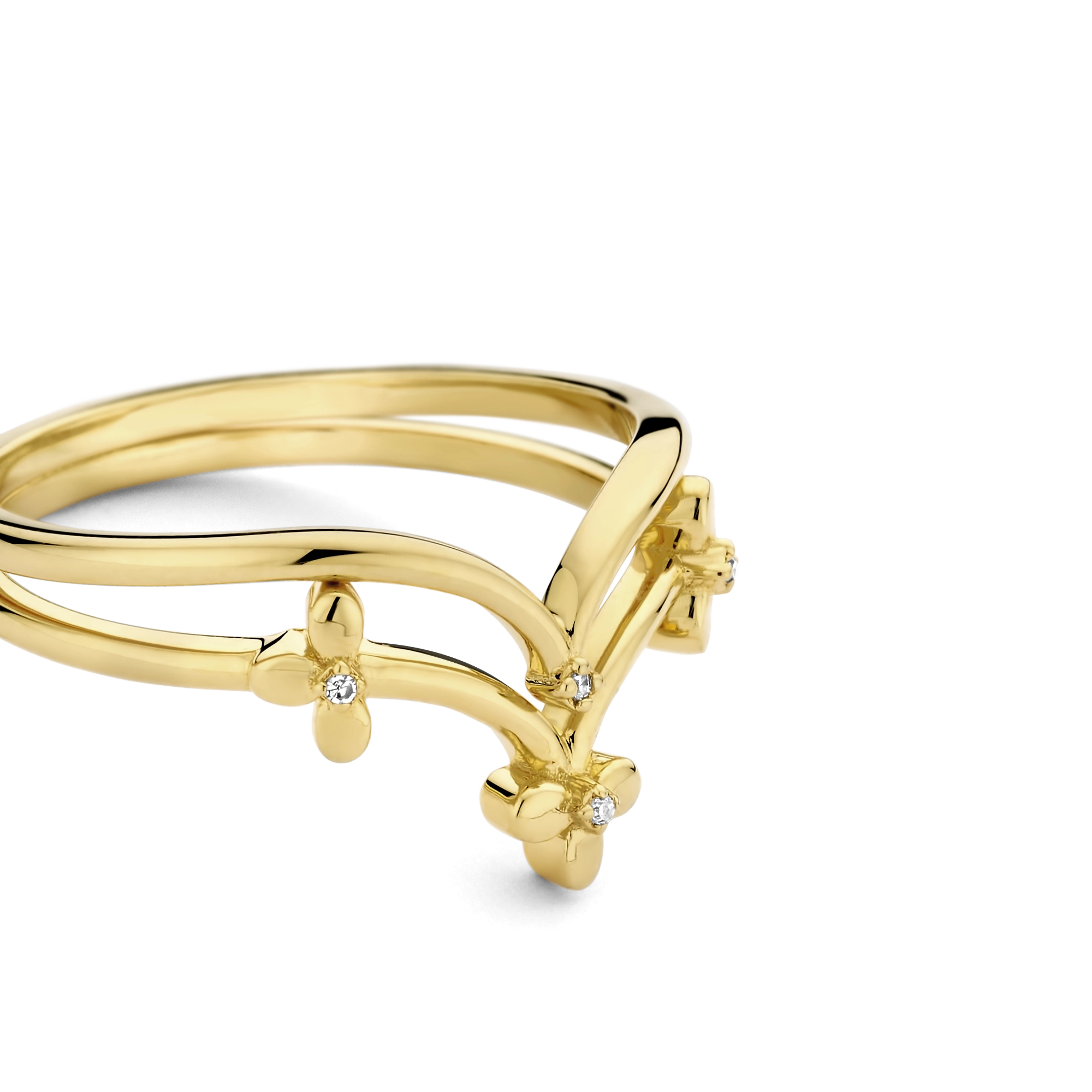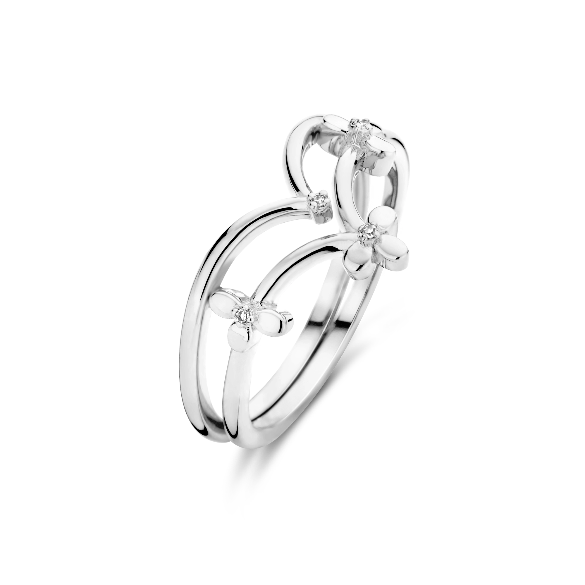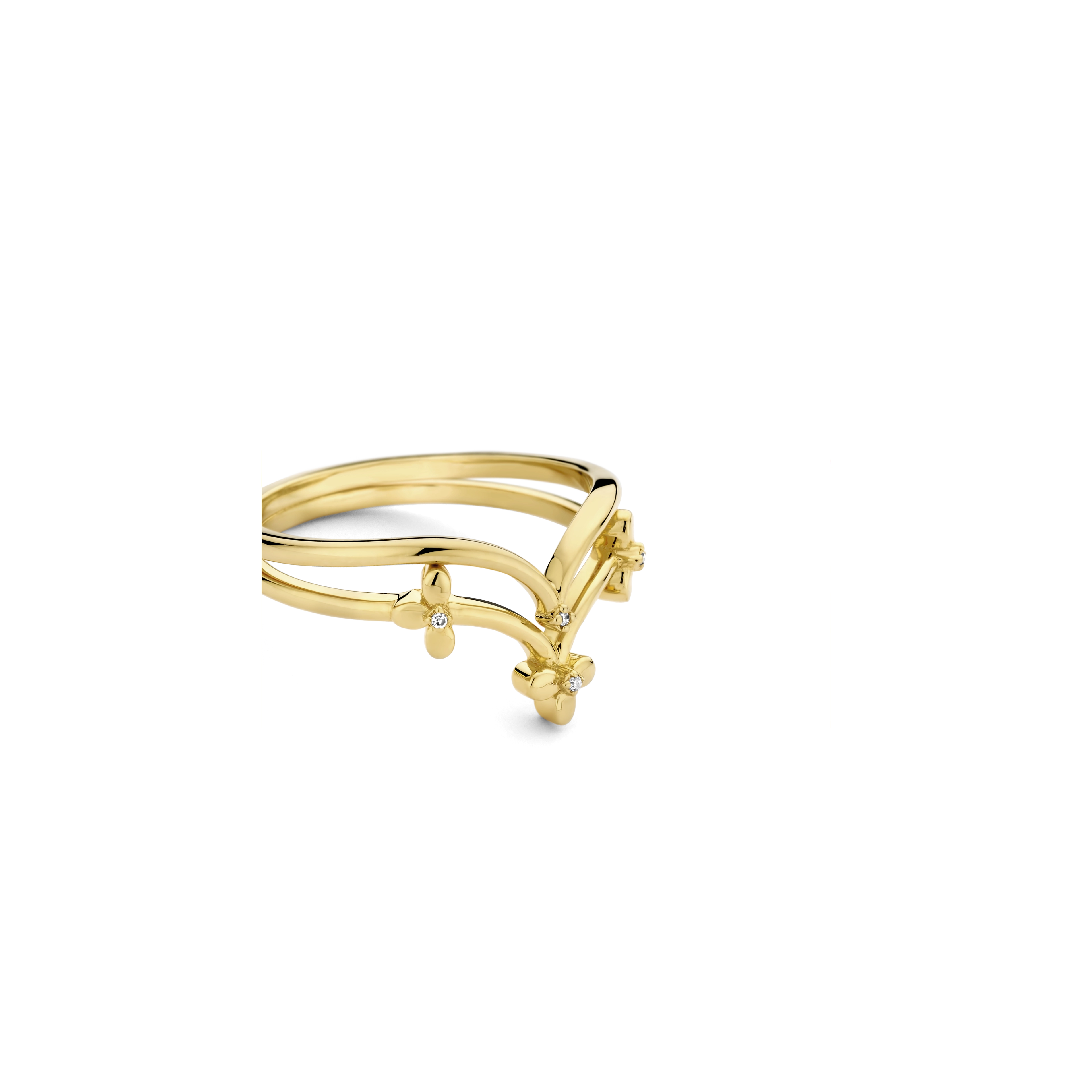 Inspired by floral embellishments, the lively functionality and delicate finesse of this diamond (4x) double ring deserves a standing ovation. STYLING TIP Switching positions between fingers and hands, stacking and flipping upside down – endless varieties to mix-and-match will leave you nothing but entertained.