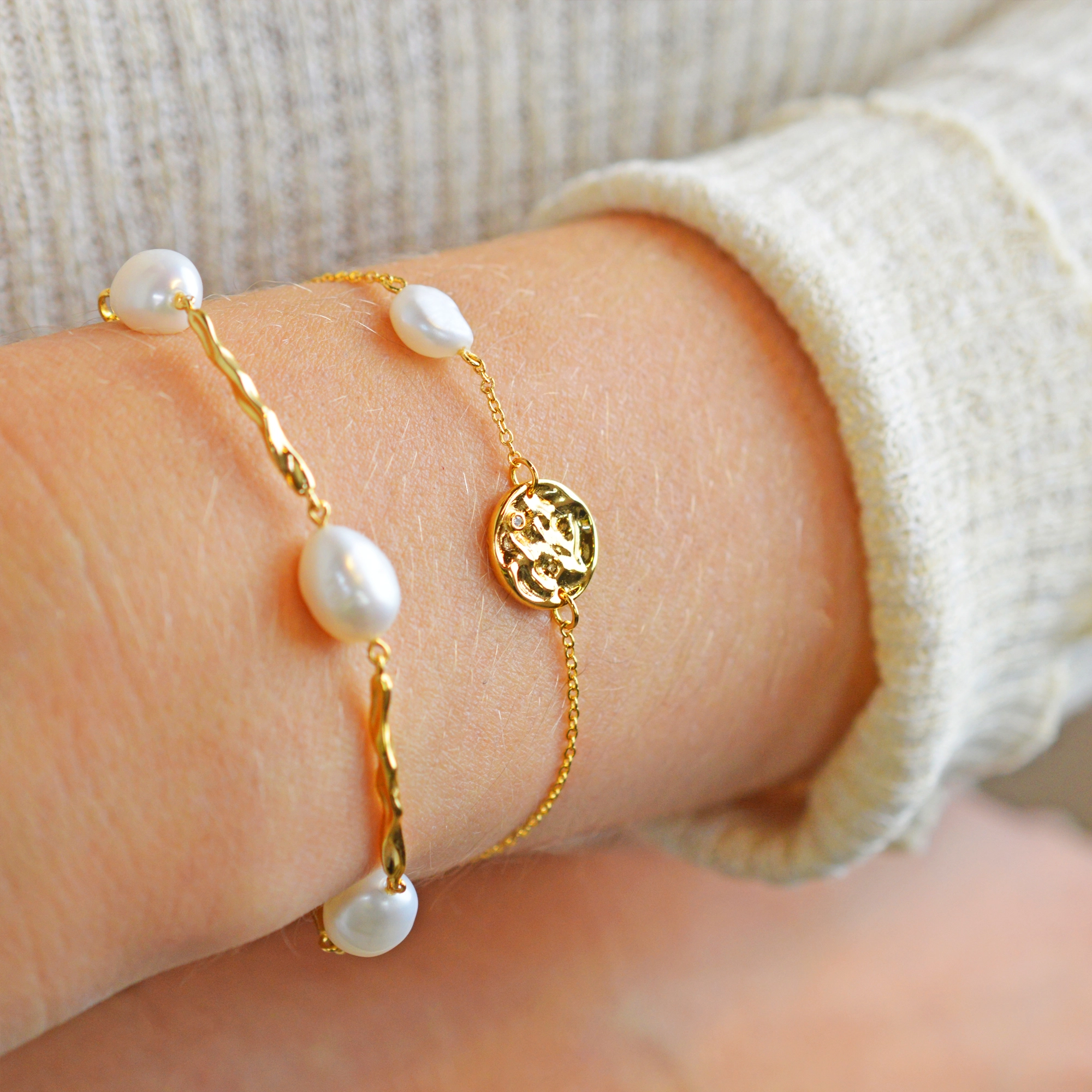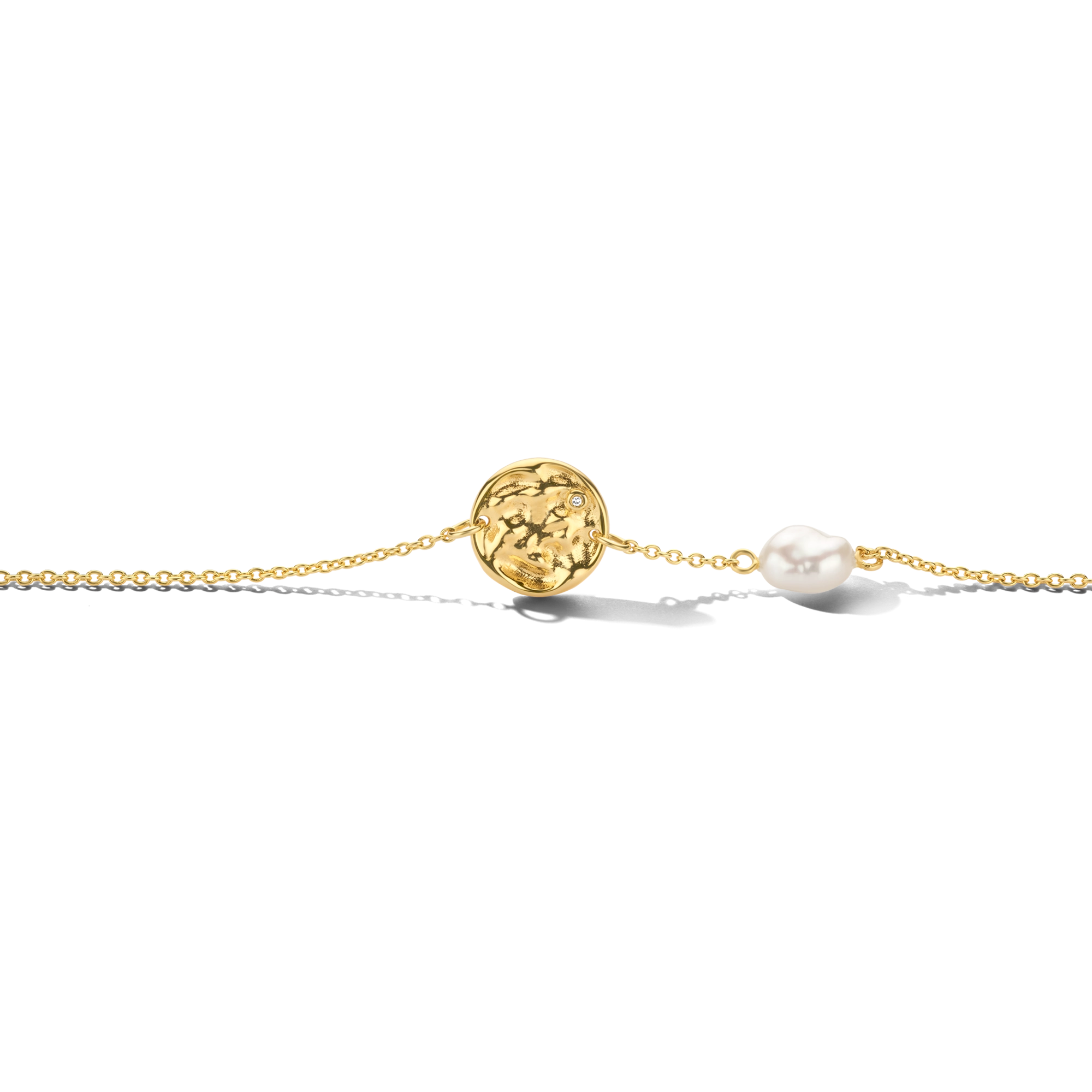 A hammered amulet bracelet with 1x white diamond and baroque pearl, your signature everyday casual chic style. Feel free to layer up with our Audrey bracelet.