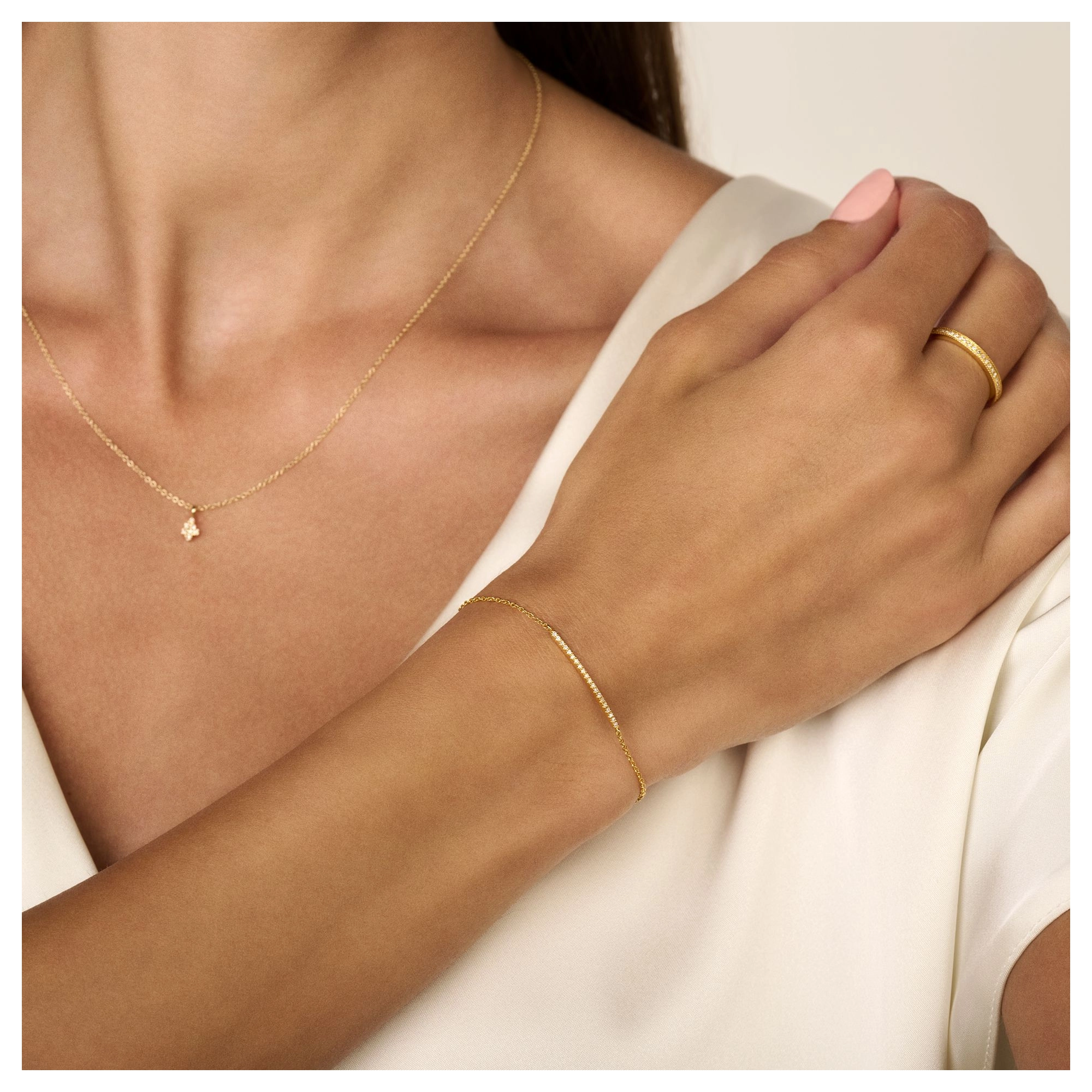 A supreme and pure style to match your everyday adventures. 20x white diamonds in a 14 carat gold setting on a classic chain bracelet, the kind of excellence you deserve.