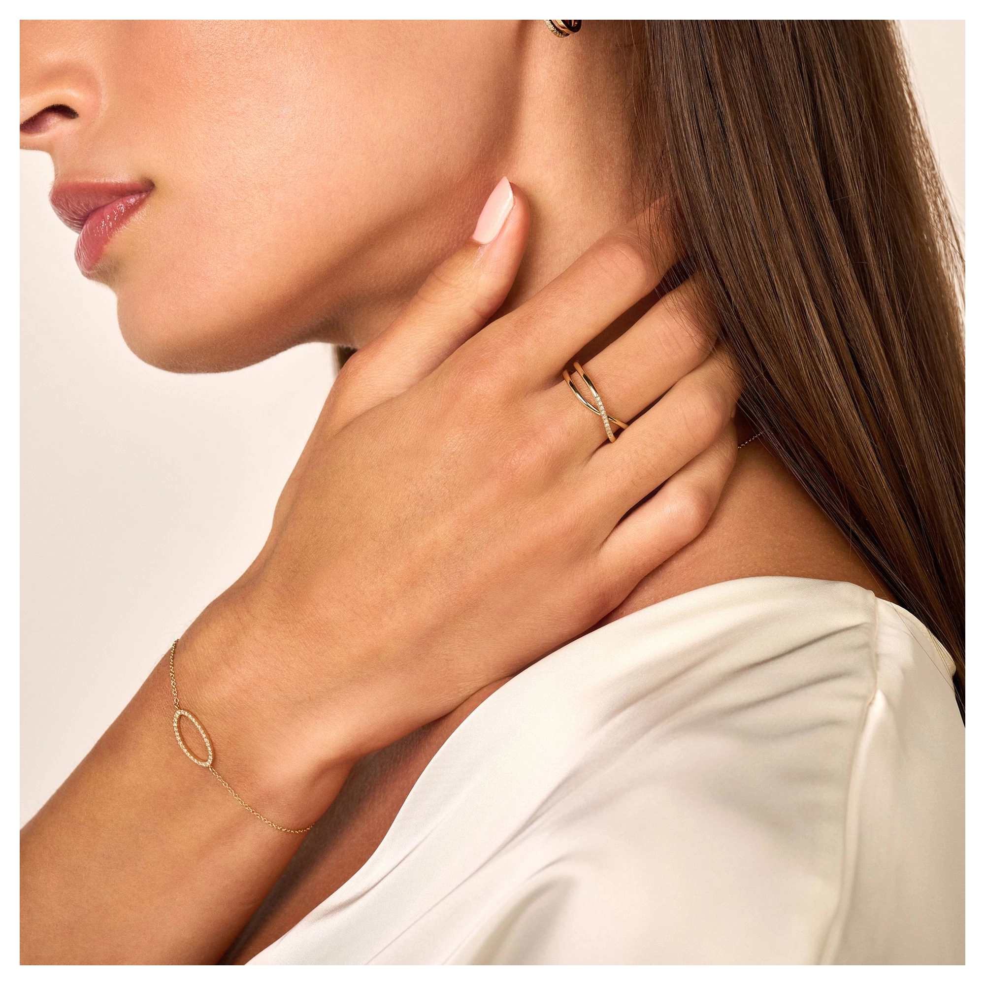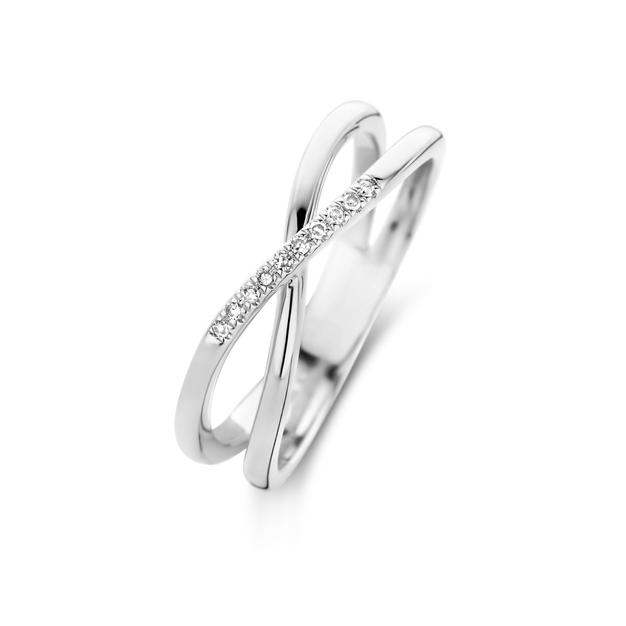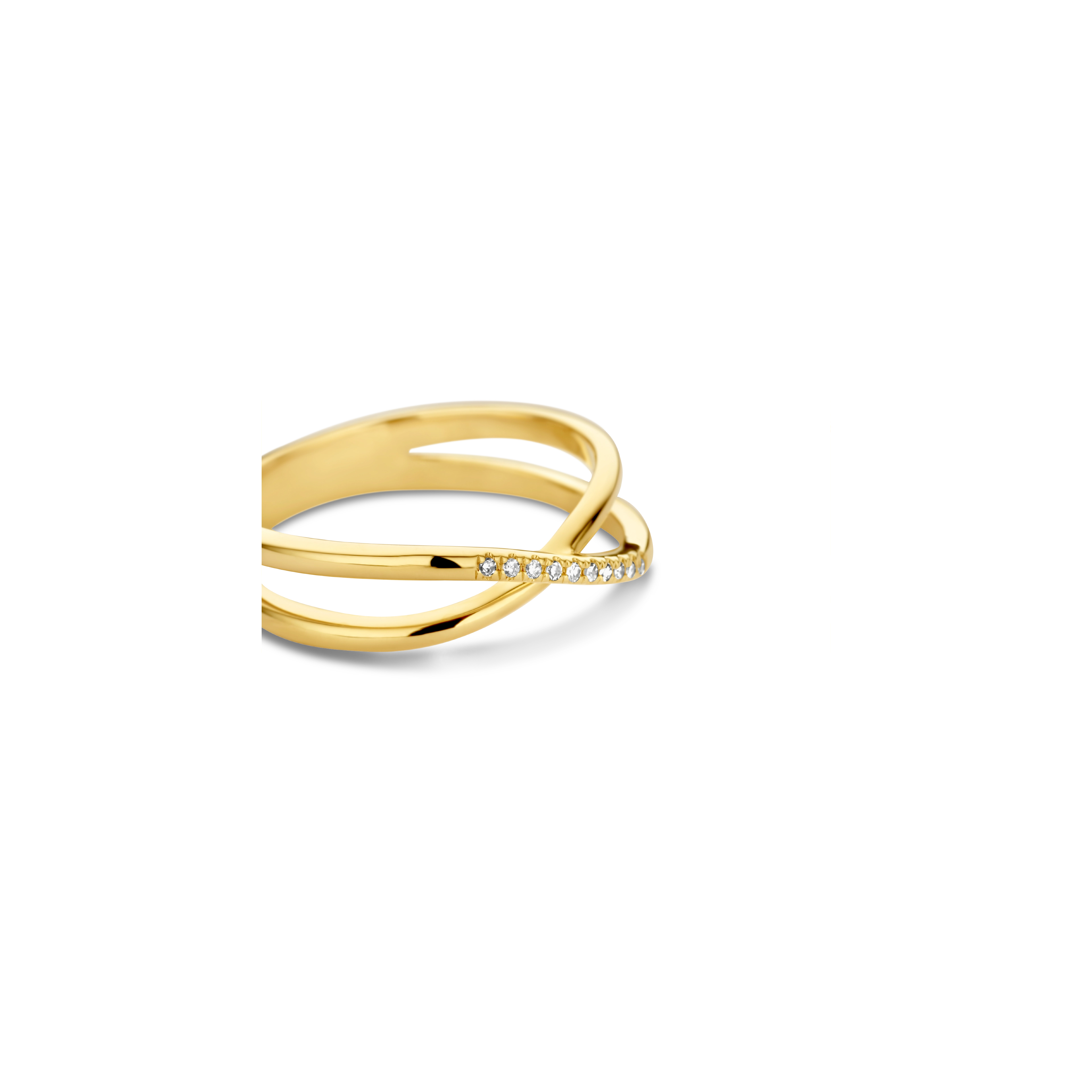 When elegance and brightness meet. A 14 carat gold crossover style, featuring 10x classic diamonds on a rounded duo band — it’s as pure and simple as that.