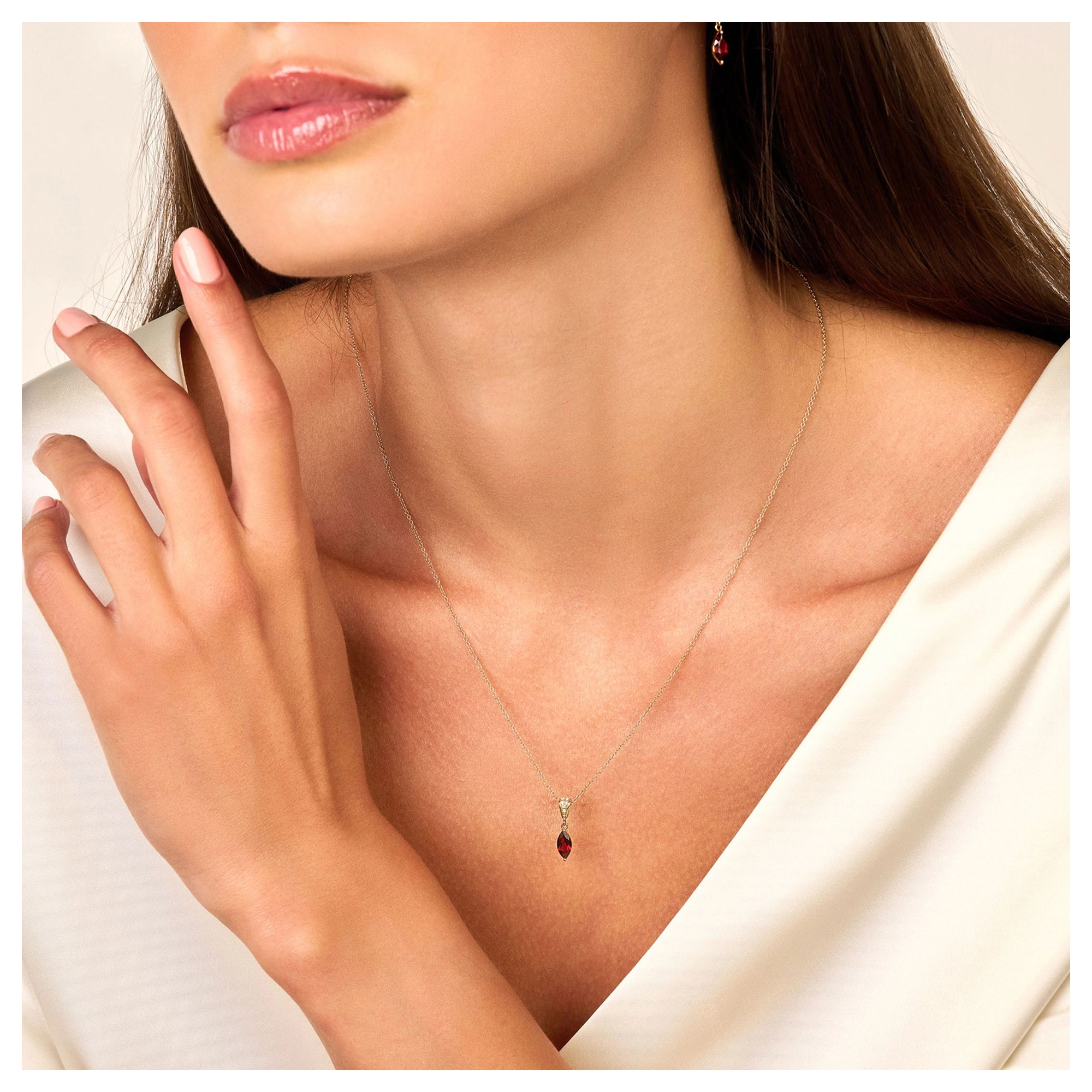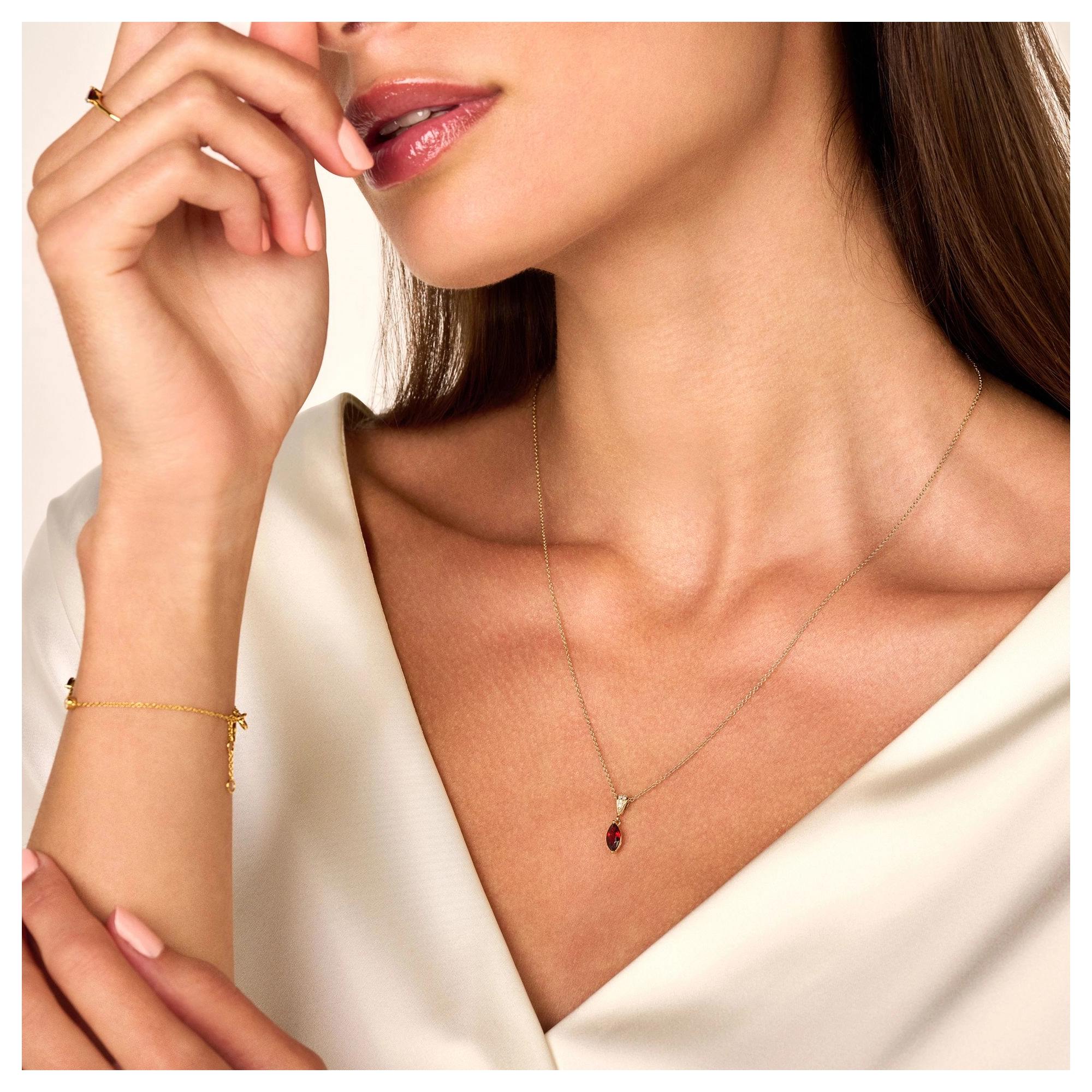 A majestic marquise-shaped red Garnet pendant, as if it came straight out of the royal vault. This stately 14 carat gold necklace will spark confidence for generations to come.