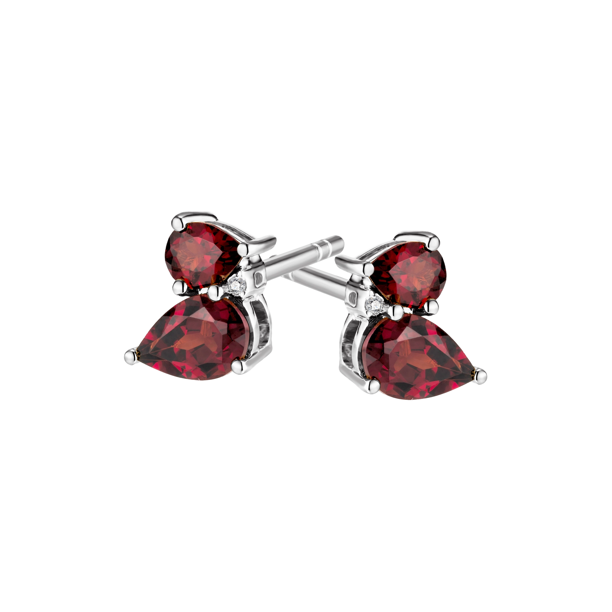 Starring 2x pear-cut red Garnet gemstones, beautifully connected by a sparkling white diamond, these earrings radiate an air of classic refinement. Let the rich hues of the red Garnet and the brilliance of white diamonds brighten everyday life into your glory days.