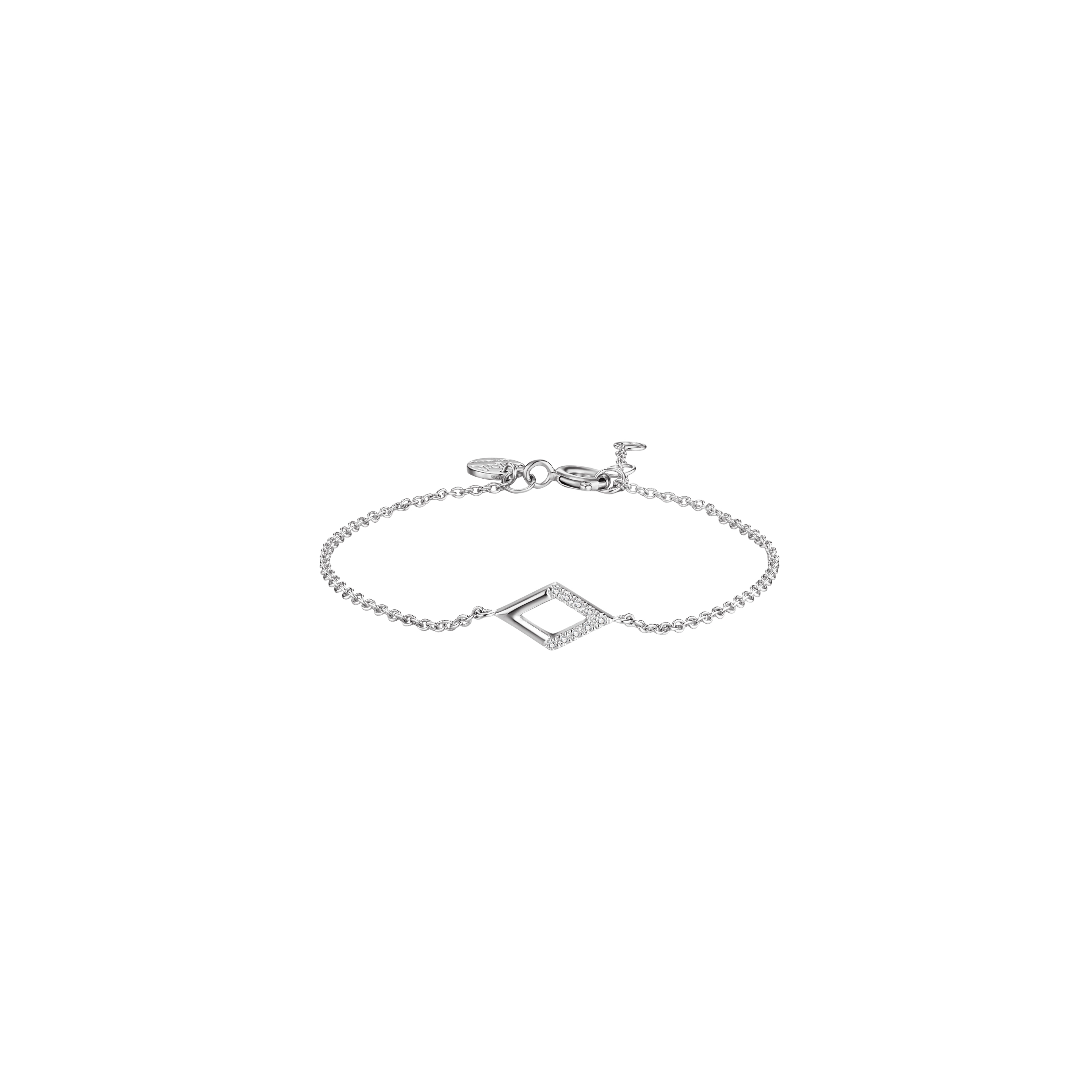 This bracelet’s gorgeous centerpiece features a striking diamond-shaped ornament, where one half dazzles with a V-shape, handset with 9x sparkling diamonds, while the other half gleams with polished silver. ‘V’ stands for valor, victory, vigor, vision, virtue, vitality and also just being vibrantly va-va-voom.