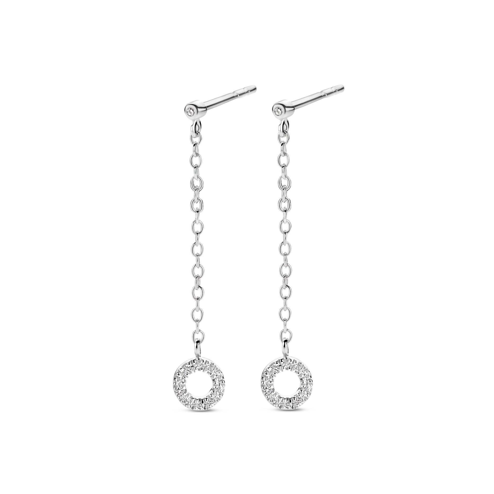 In need for earrings to both fit your everyday style, as well as to finish off your party look? These Mars earrings will surely do the trick. 22x white diamonds are set along its curves, dangling on an elegant chain. Made in sterling silver, gilded with white rhodium or 18 carat yellow or rose gold vermeil.