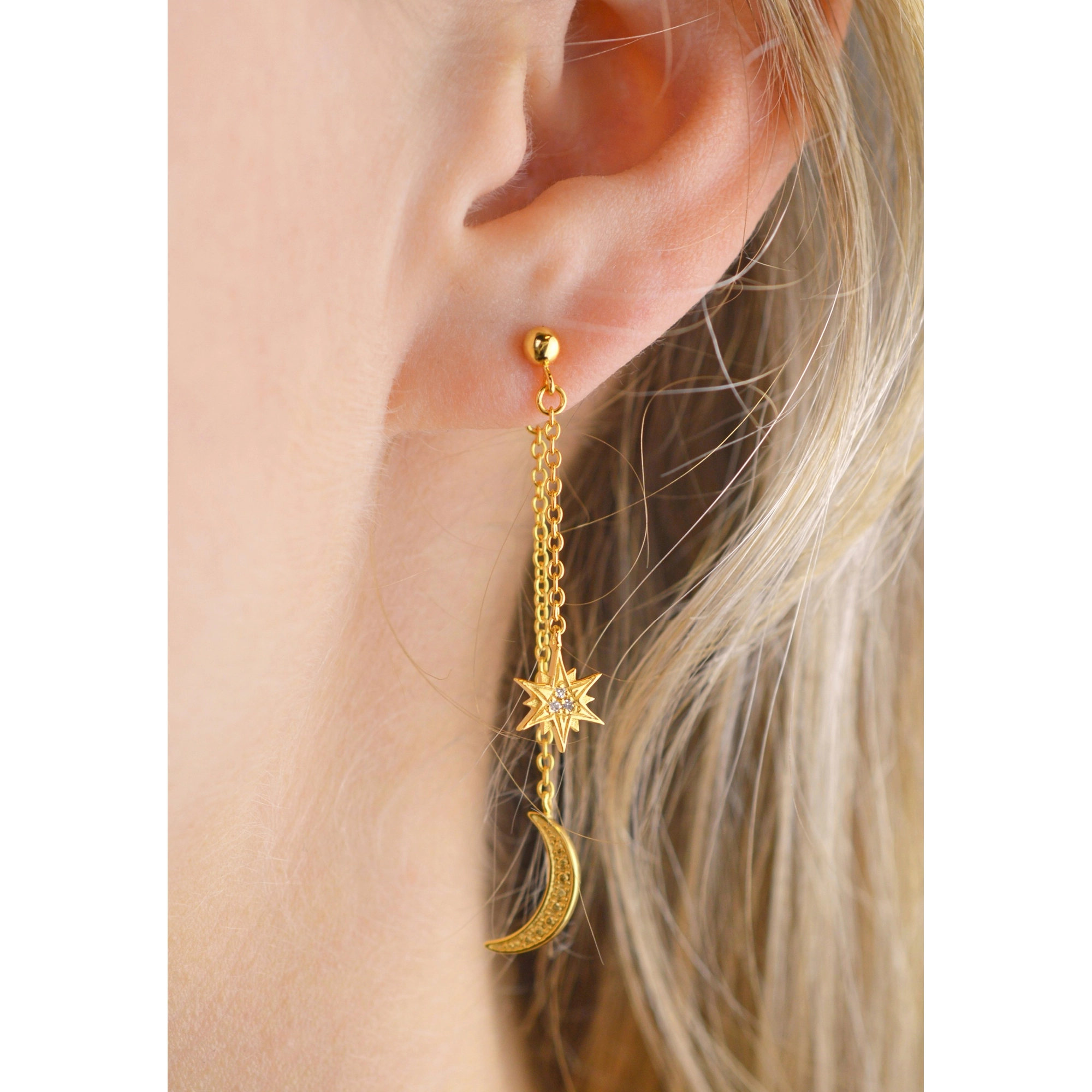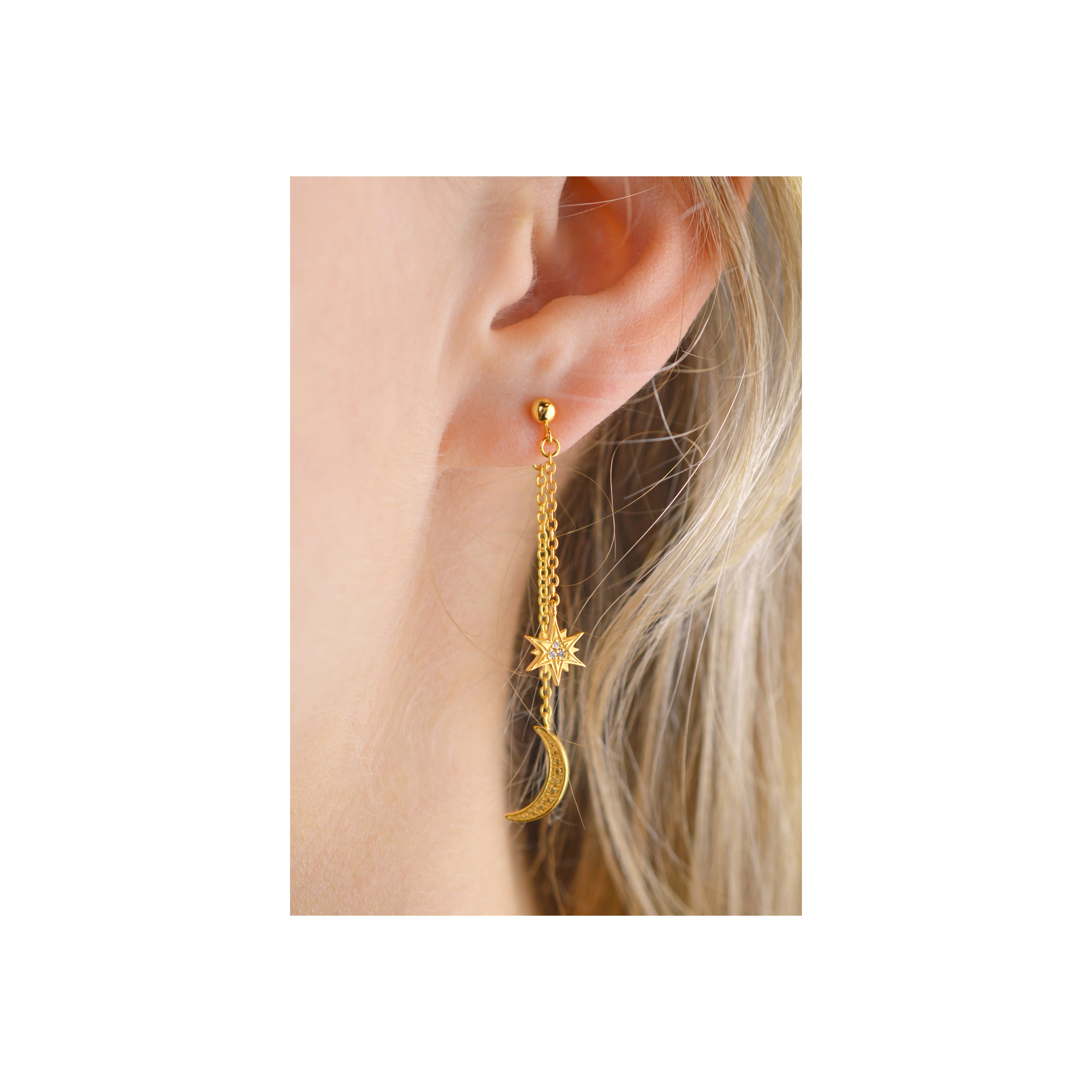 Festive nights filled with fireworks and starlight call for our Night Sky single earring. Moon and 3x diamond star pendants lighting up the nightfall.