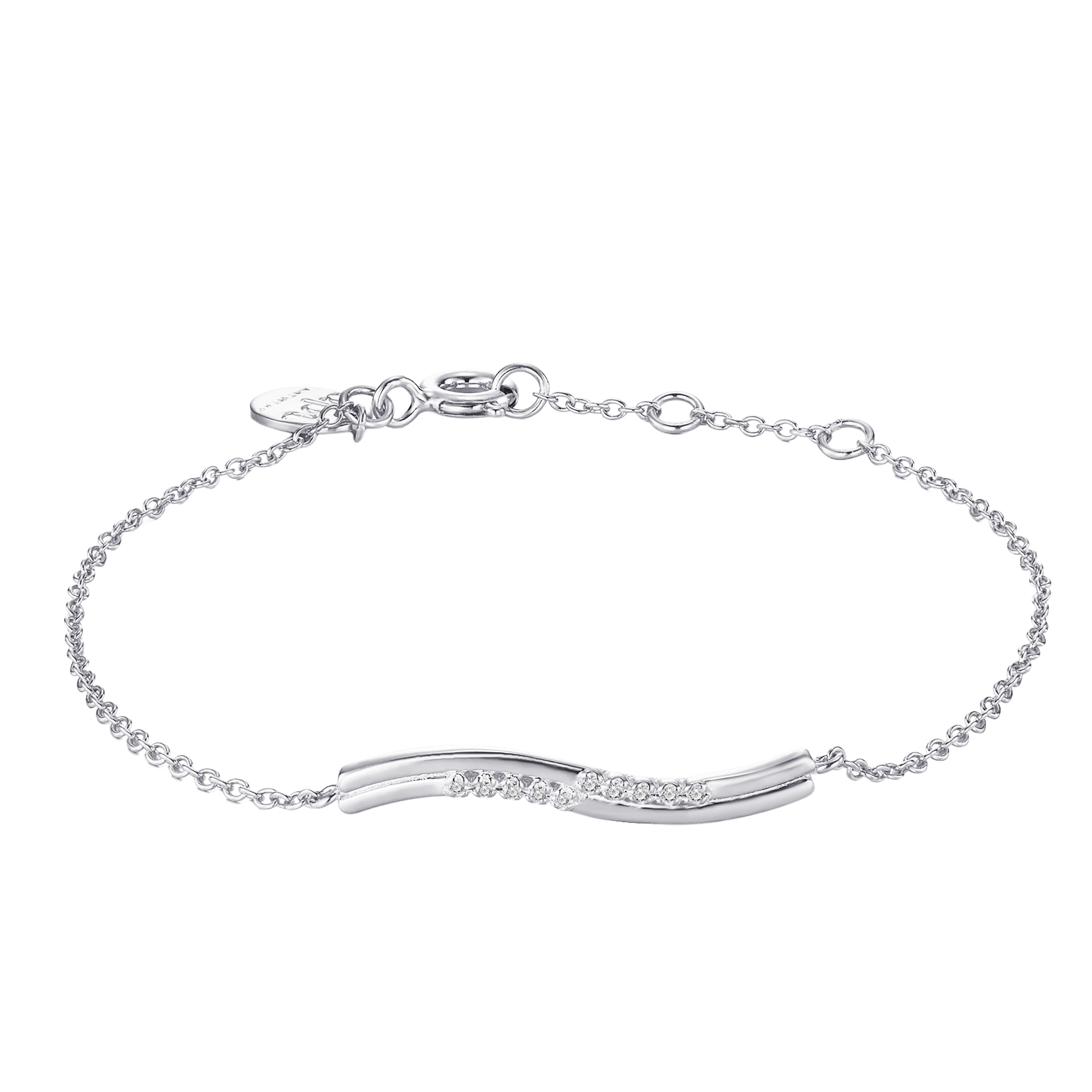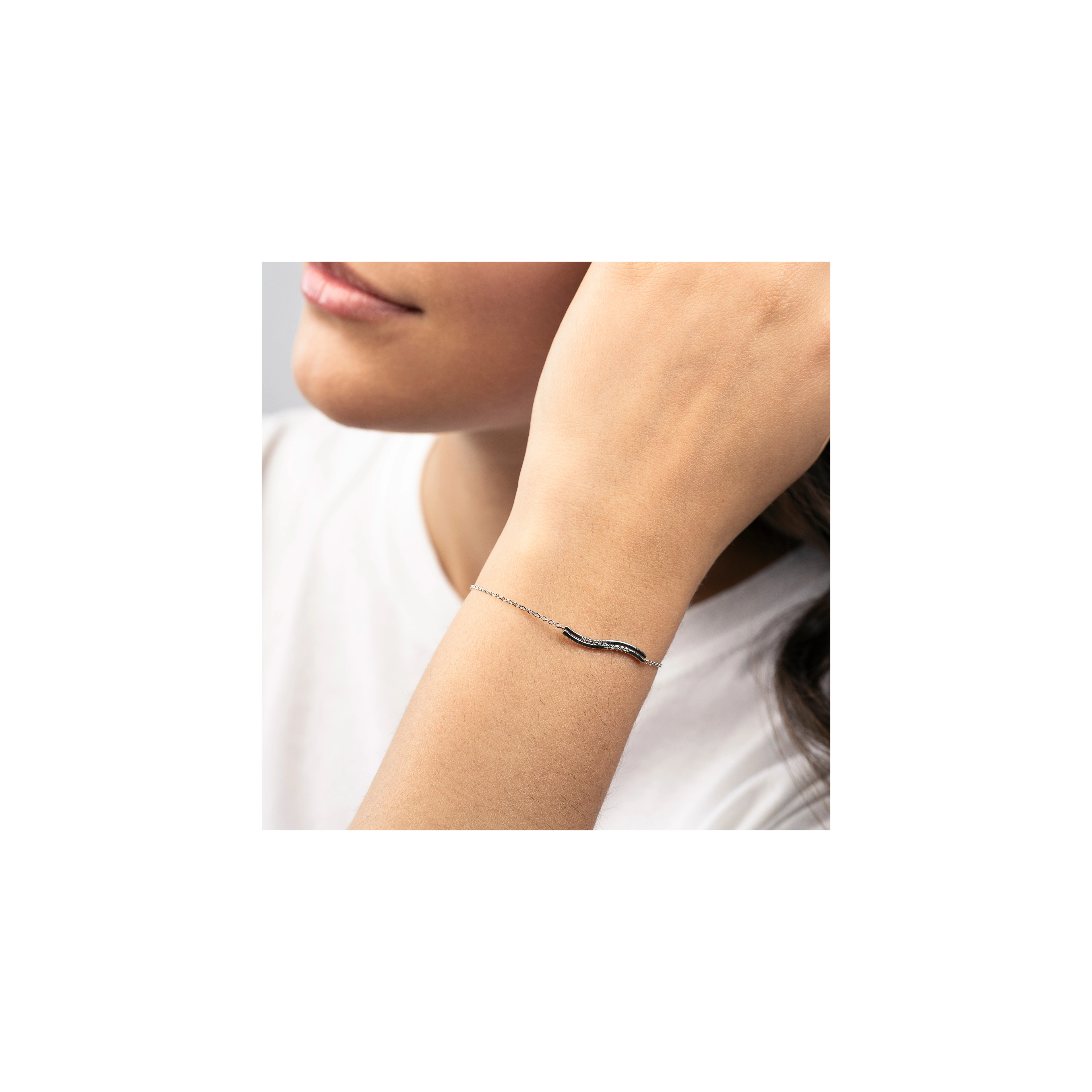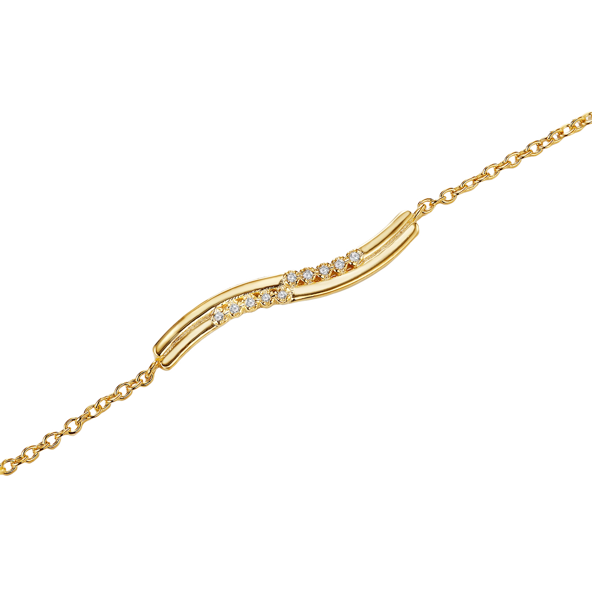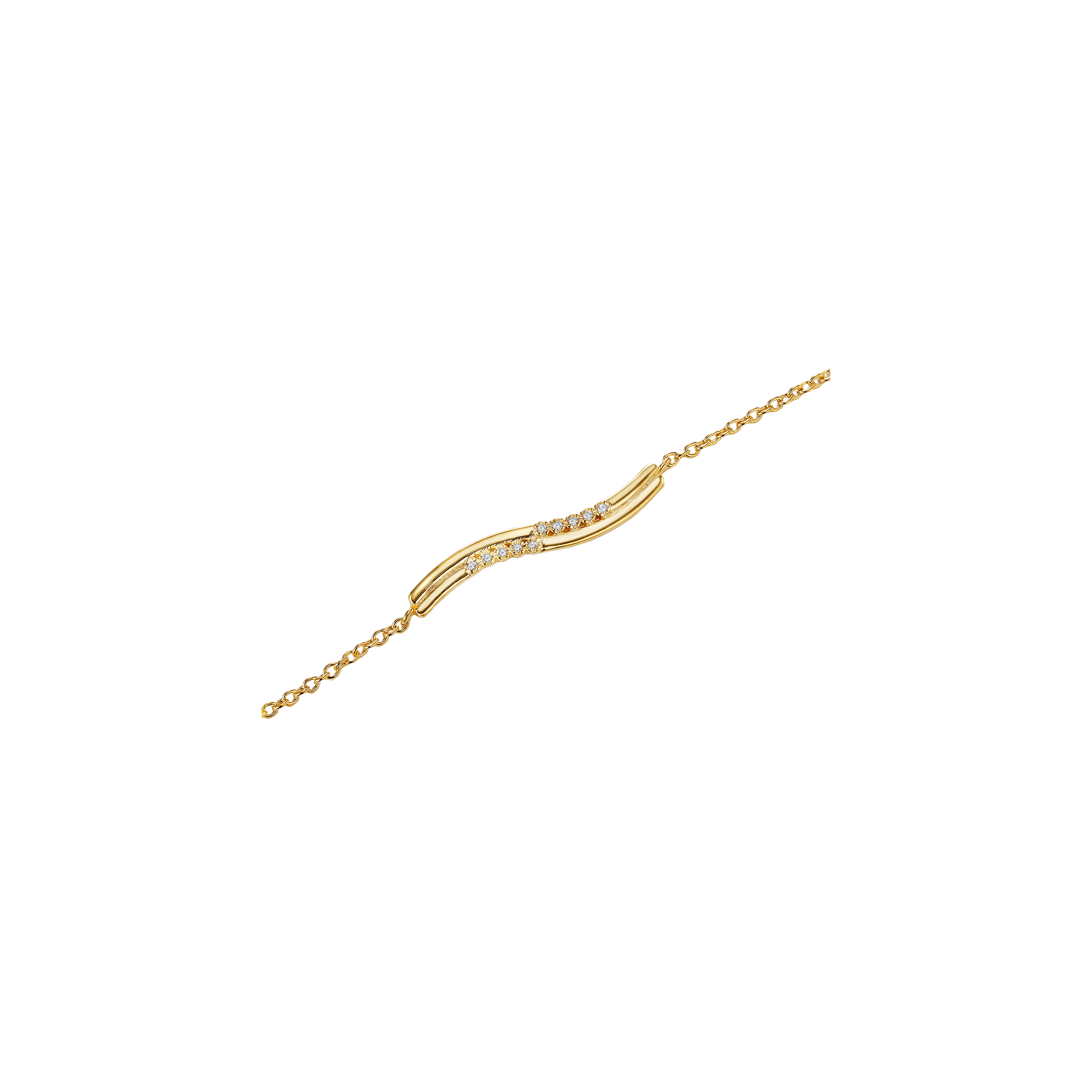 Dive into elegance — a waved bracelet inspired by the graceful flow of the water element. Featuring two delicate streams that weave together, this design captures the power and serenity of water in motion. Each handset has 5x natural diamonds, like glistening droplets in a sea of sophistication.