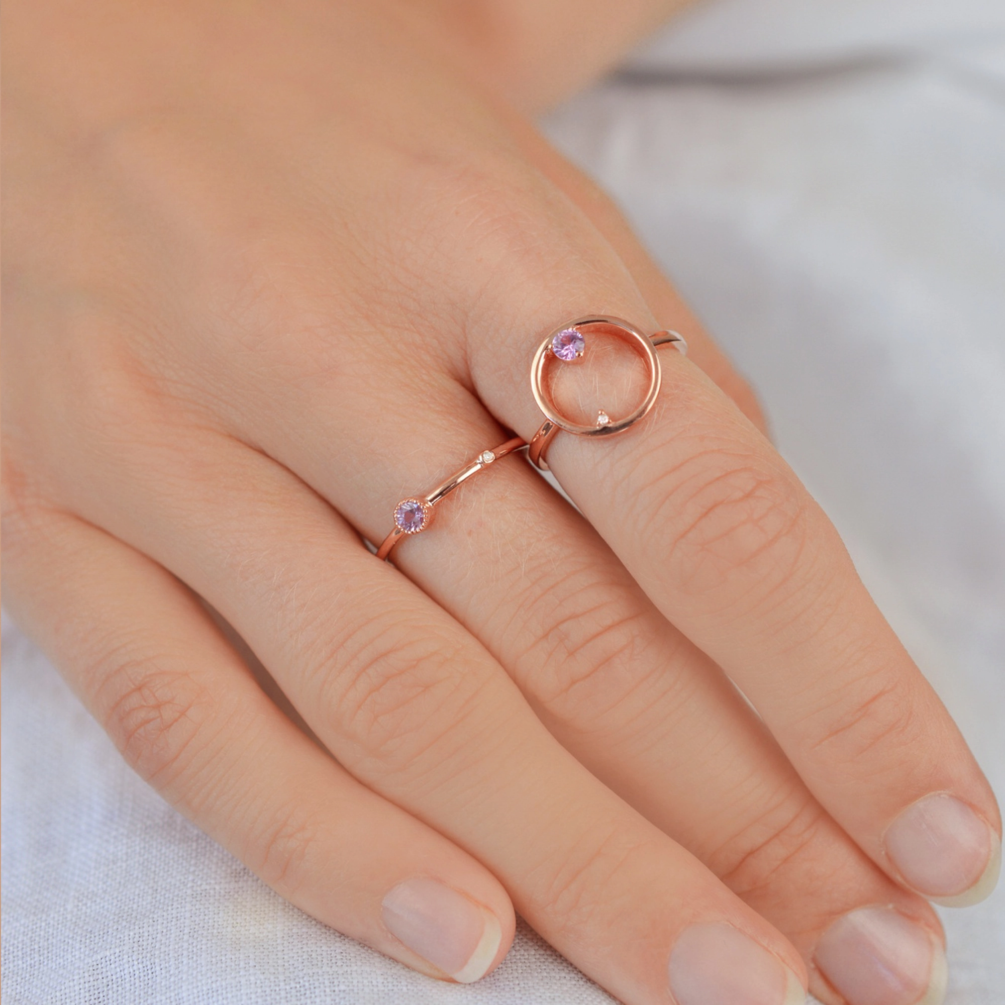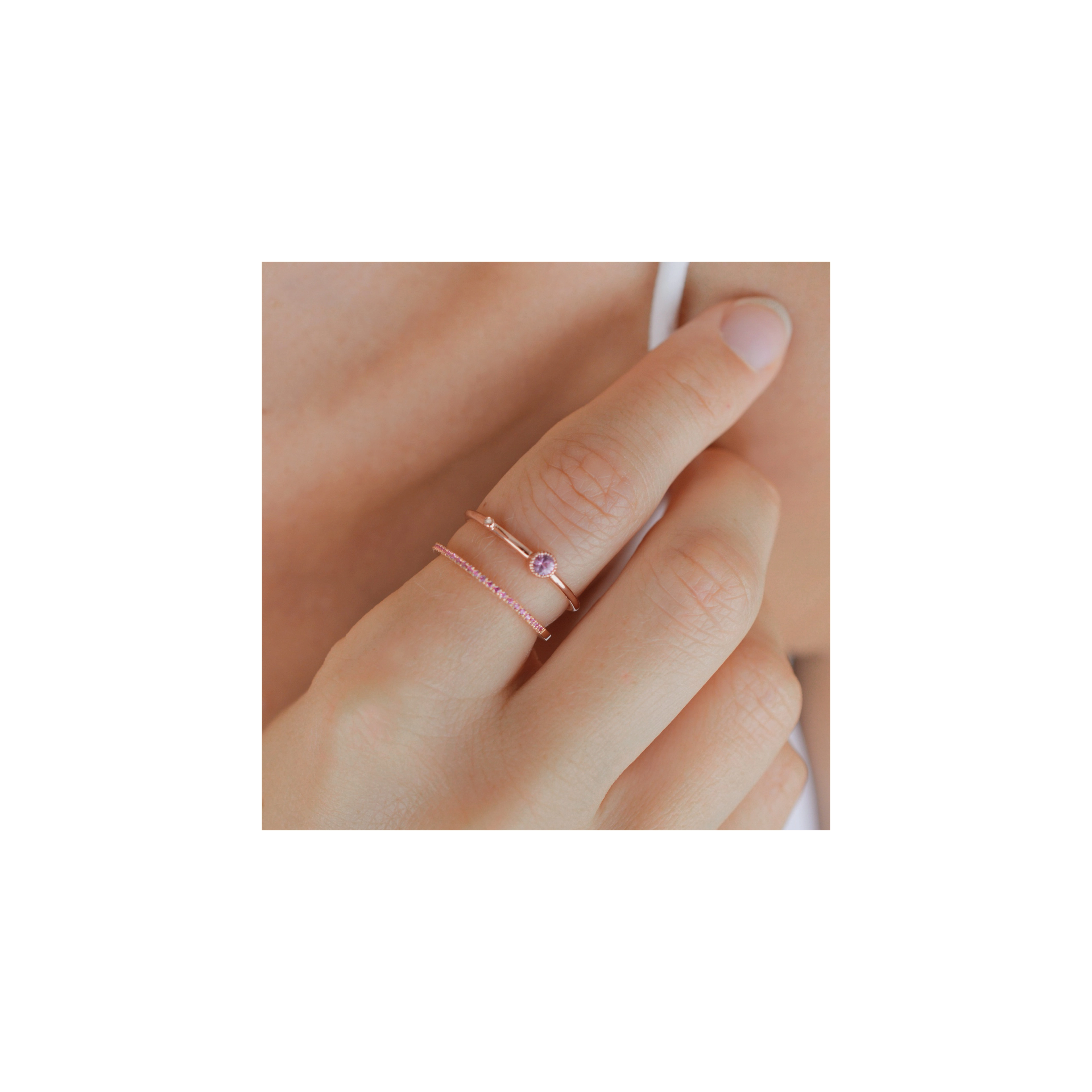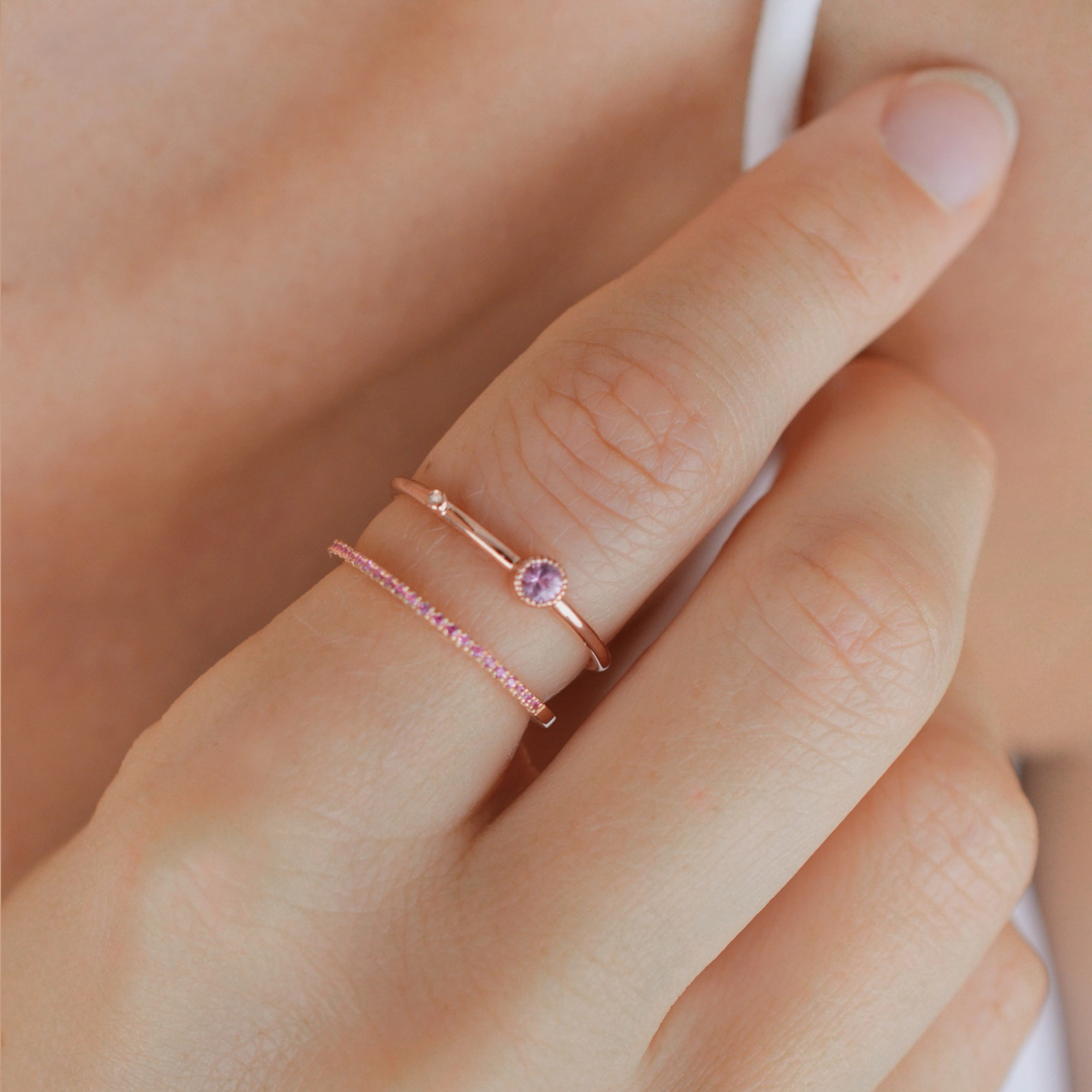 A darling ring, made of a petite white diamond and a mesmerising light pink Sapphire in an exclusive milgrain setting, giving the design a romantic vintage style for a love to infinity and beyond. Along with its matching earrrings, they make a treasured gift set.