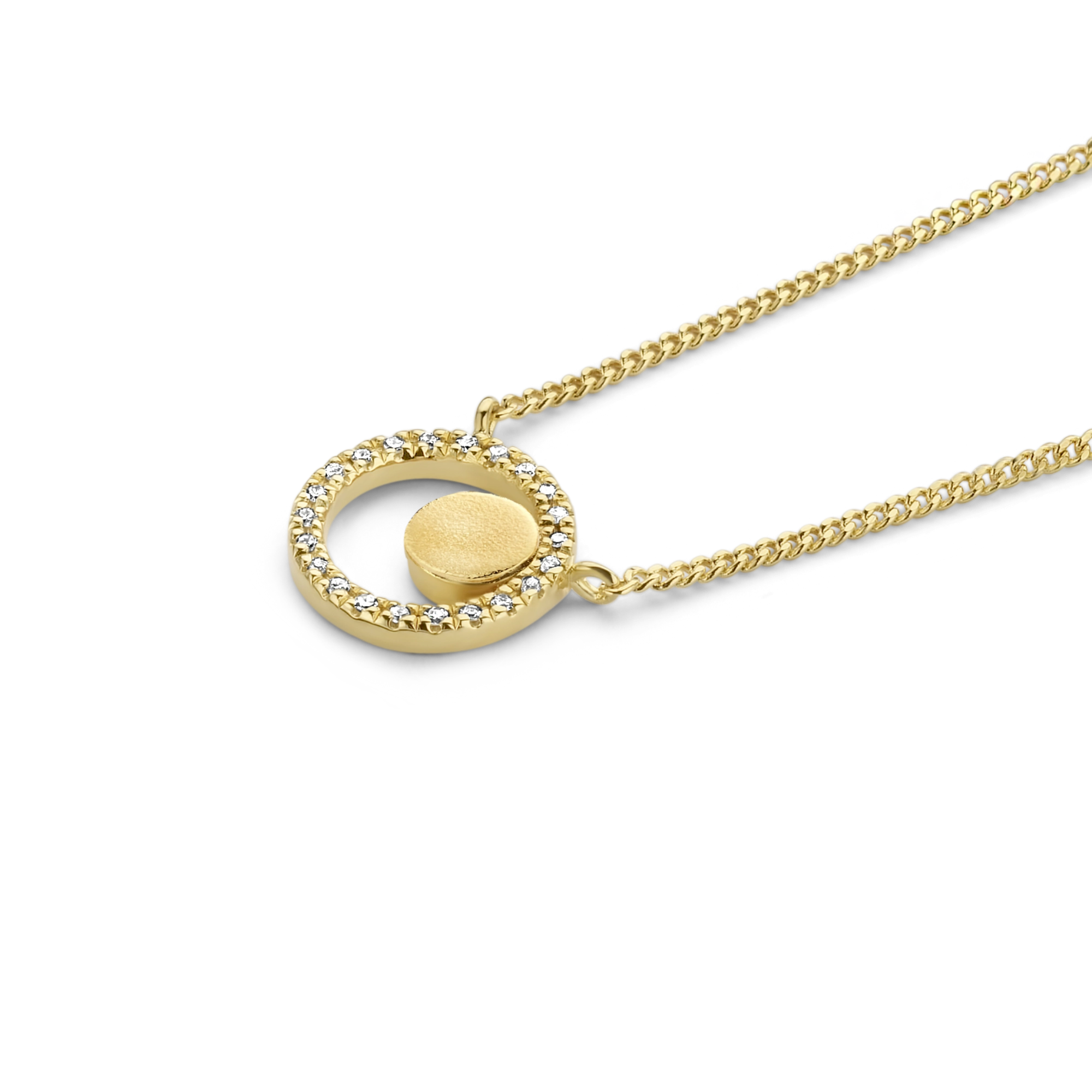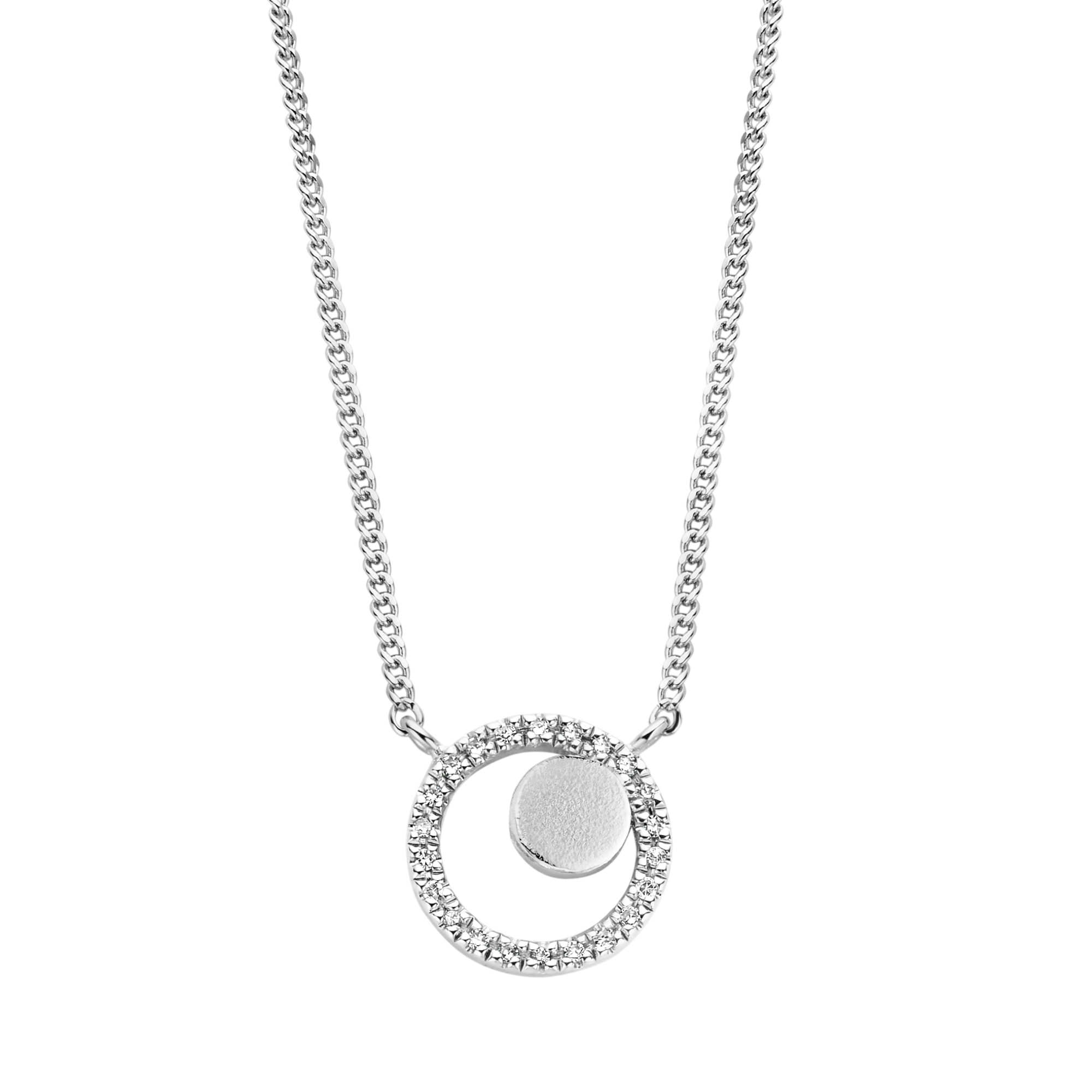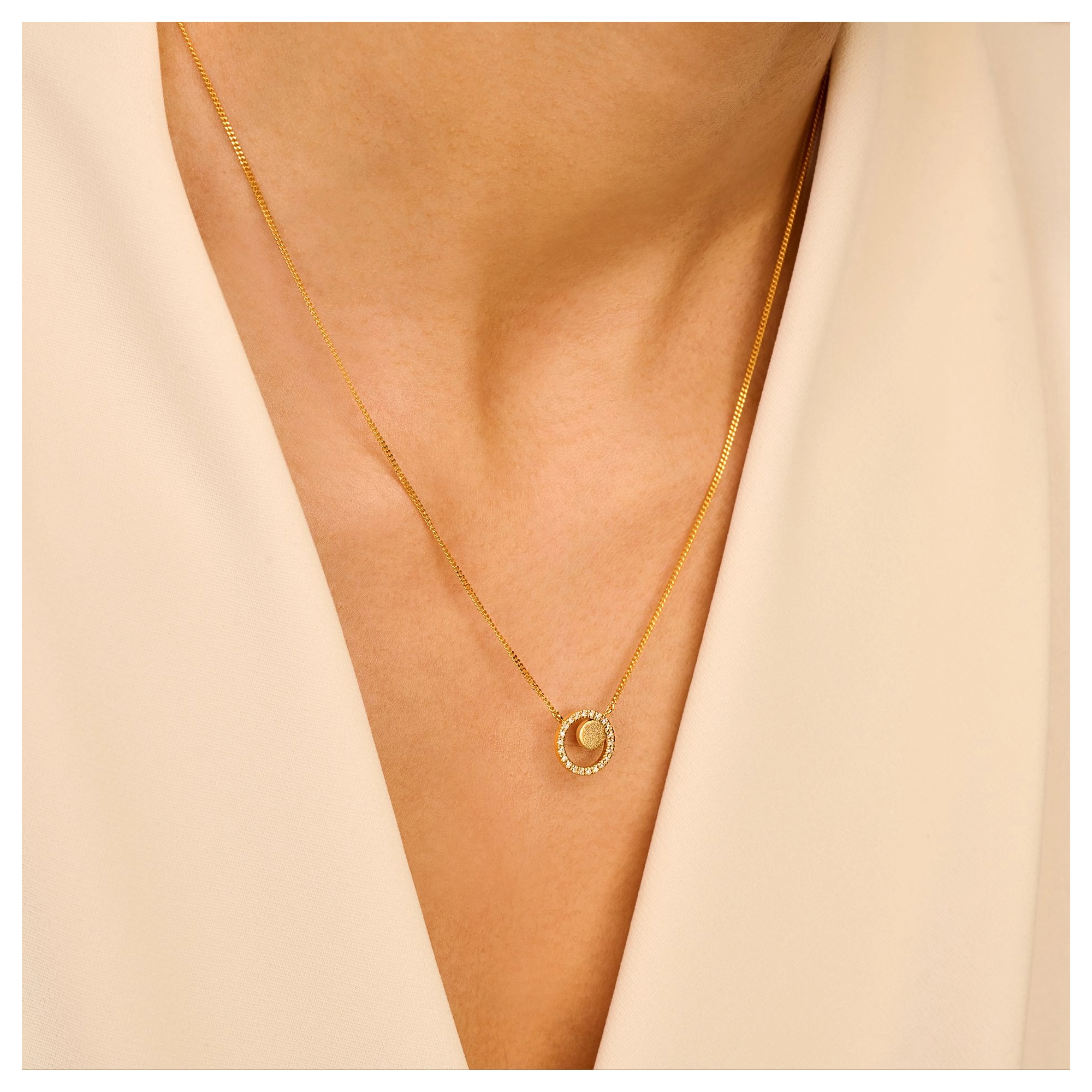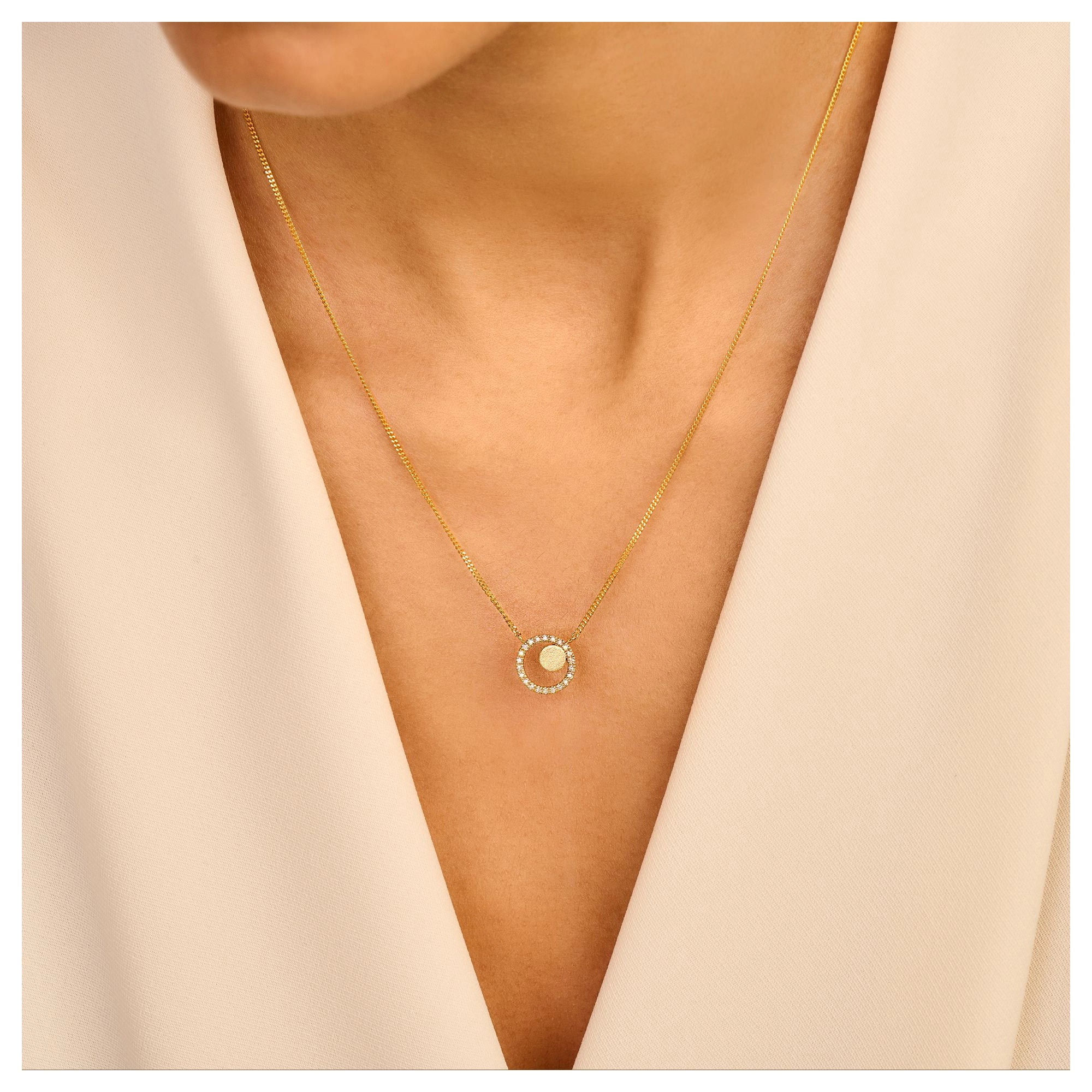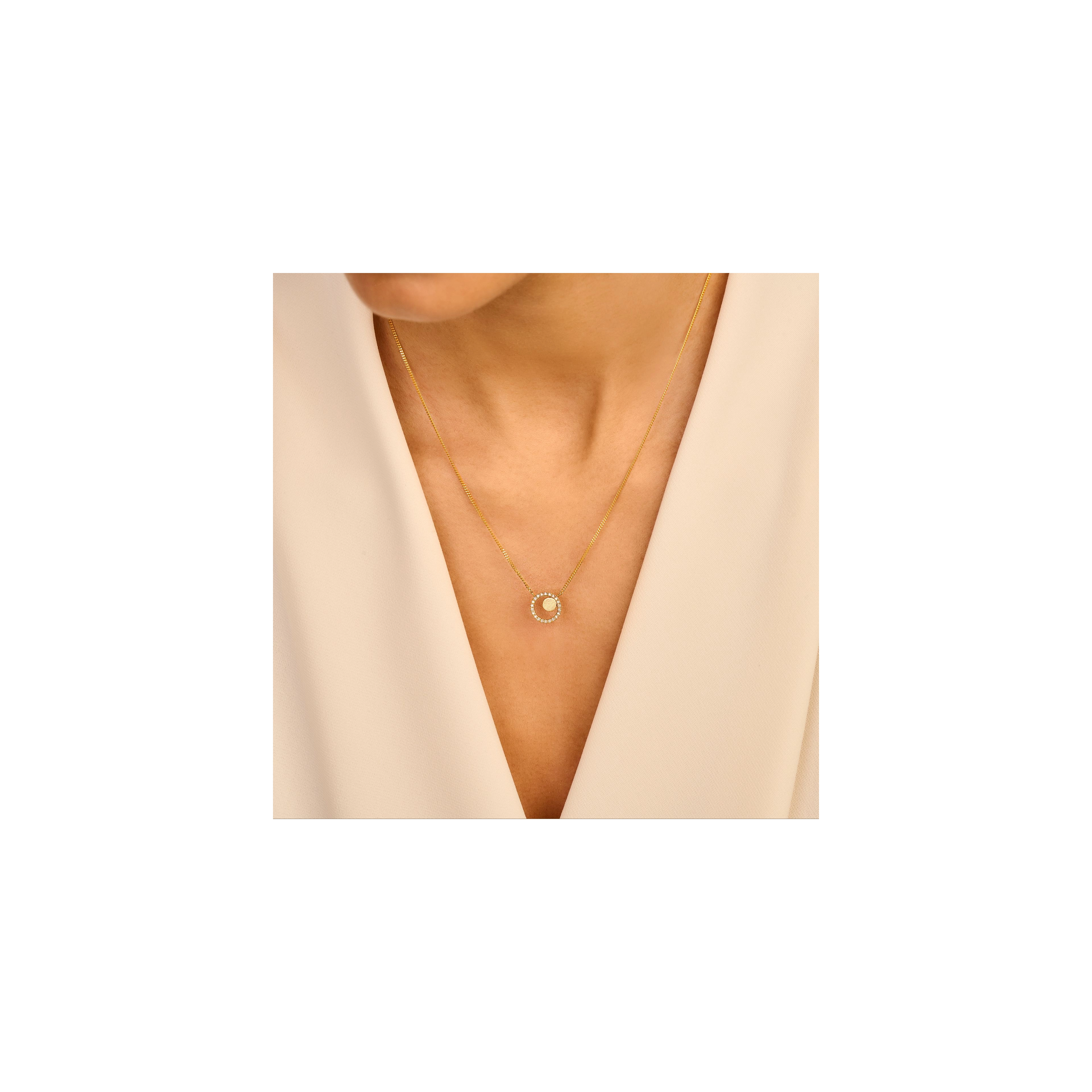A diamond pave sphere of 22x natural diamonds, graced by a delicately brushed disc — the perfect pendant necklace for those who belong amongst the brightest stars.STYLING TIP Effortlessly stylish with anything from our Venus, Mars and Jupiter series. Play around with sizes and layers for an out of this world brilliance.