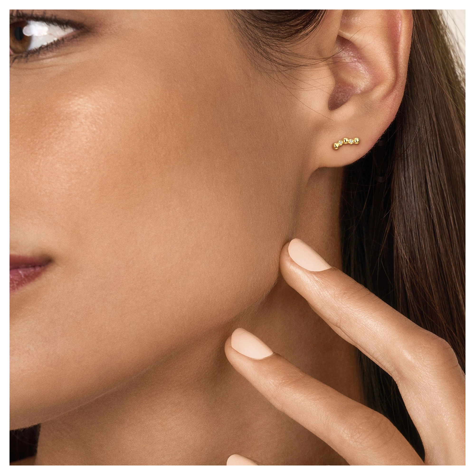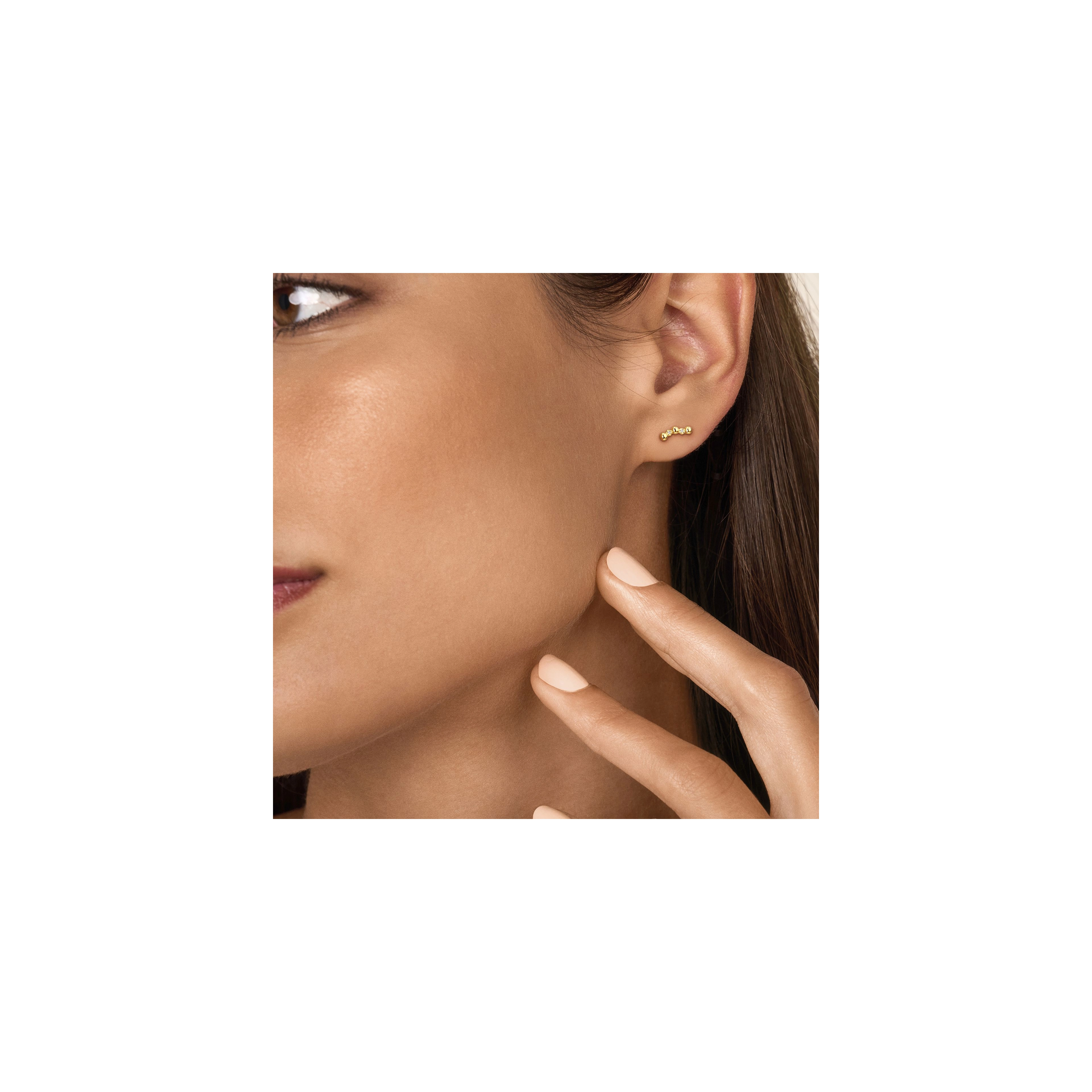 A dainty curve stud-piece, accessorized with 2x natural diamonds in its beads – inspired by the calmness of a gentle breeze and soft waves as they break upon the shore. STYLING TIP Have a look at our Wave earrings too if you’re looking for this design’s versatile pair.