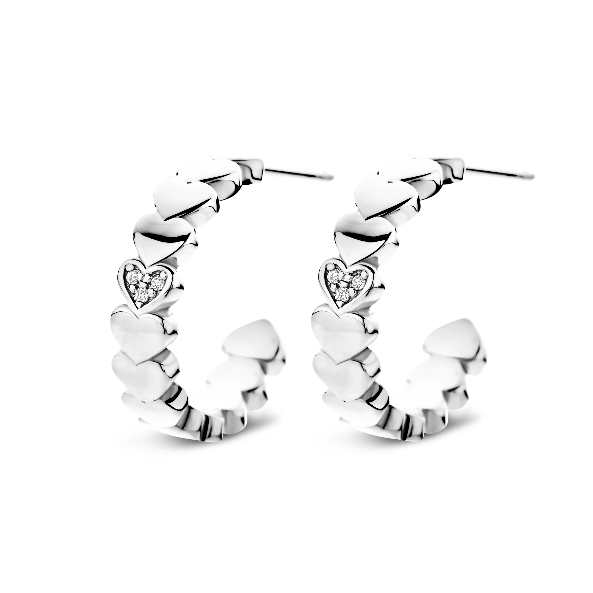 Finished with 6x everlasting diamonds, handset into connecting hearts, these delicate hoops capture the essence of modern romance. Little clusters of love that will make this Valentine’s Day and every day after unforgettable.