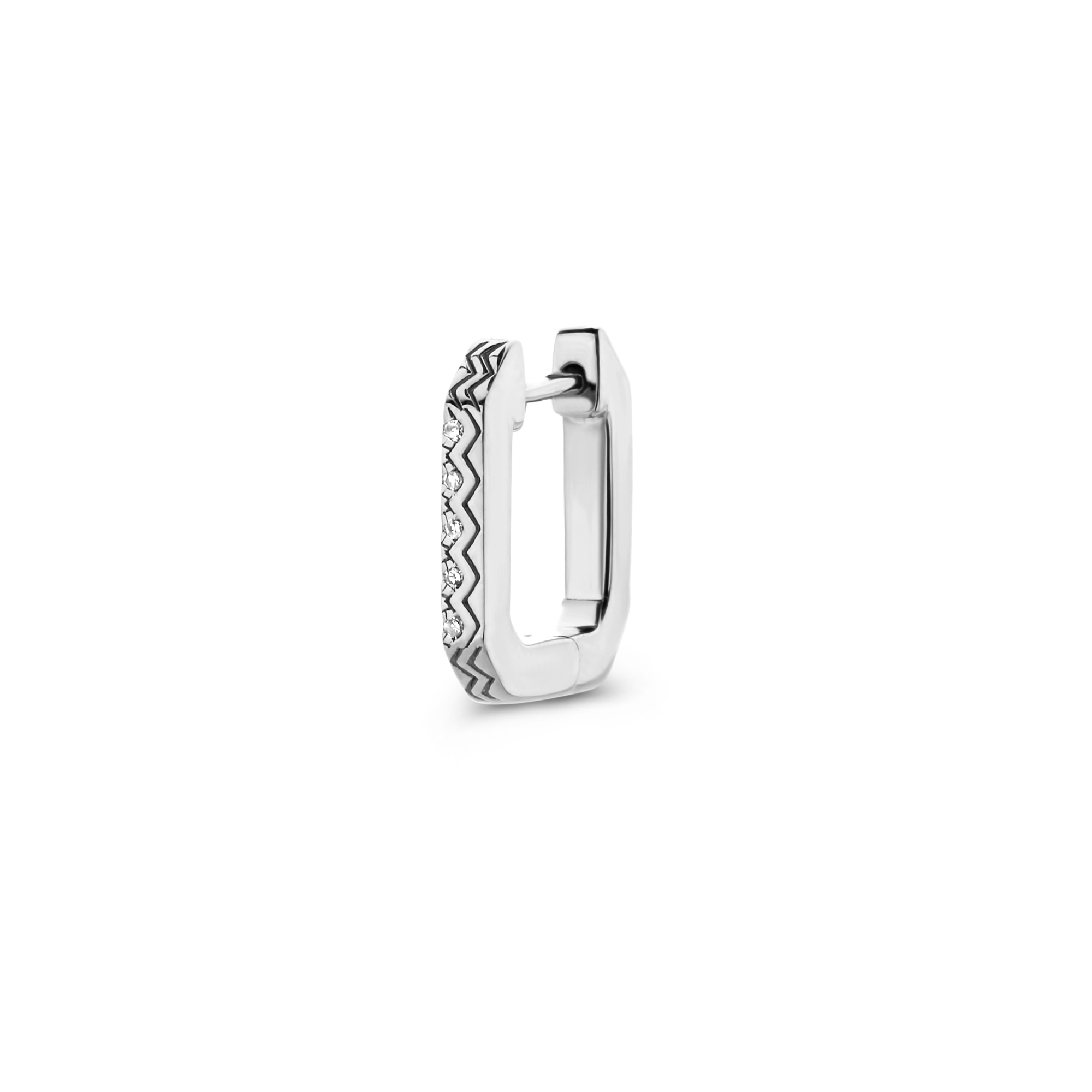 A rectangular single hoop for a sleek and contemporary ear stack. A new shape, with the diamonds you know and love.Styling tip: Pair it up with our Endless hugging hoop, Break-Away earrings or Agra stud.