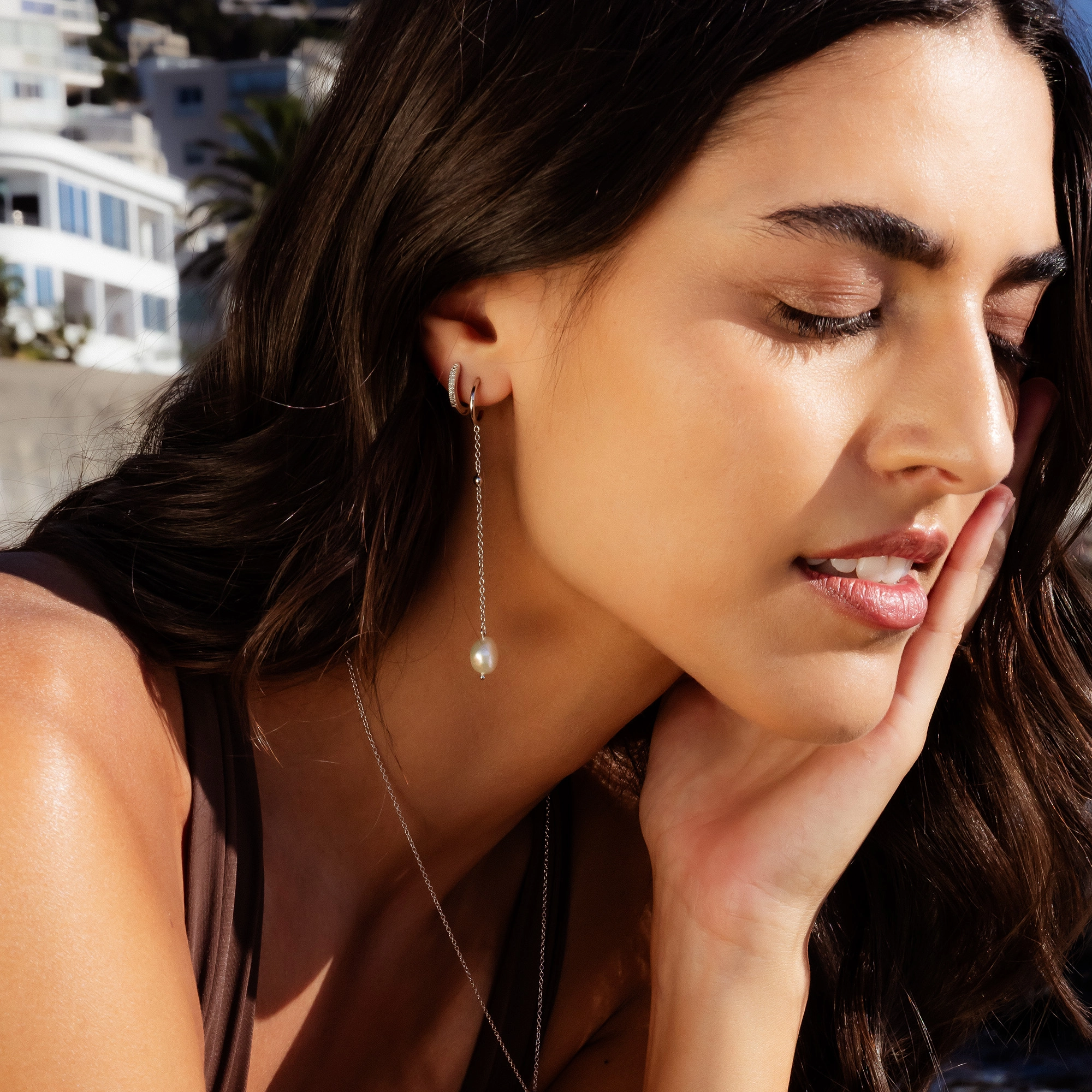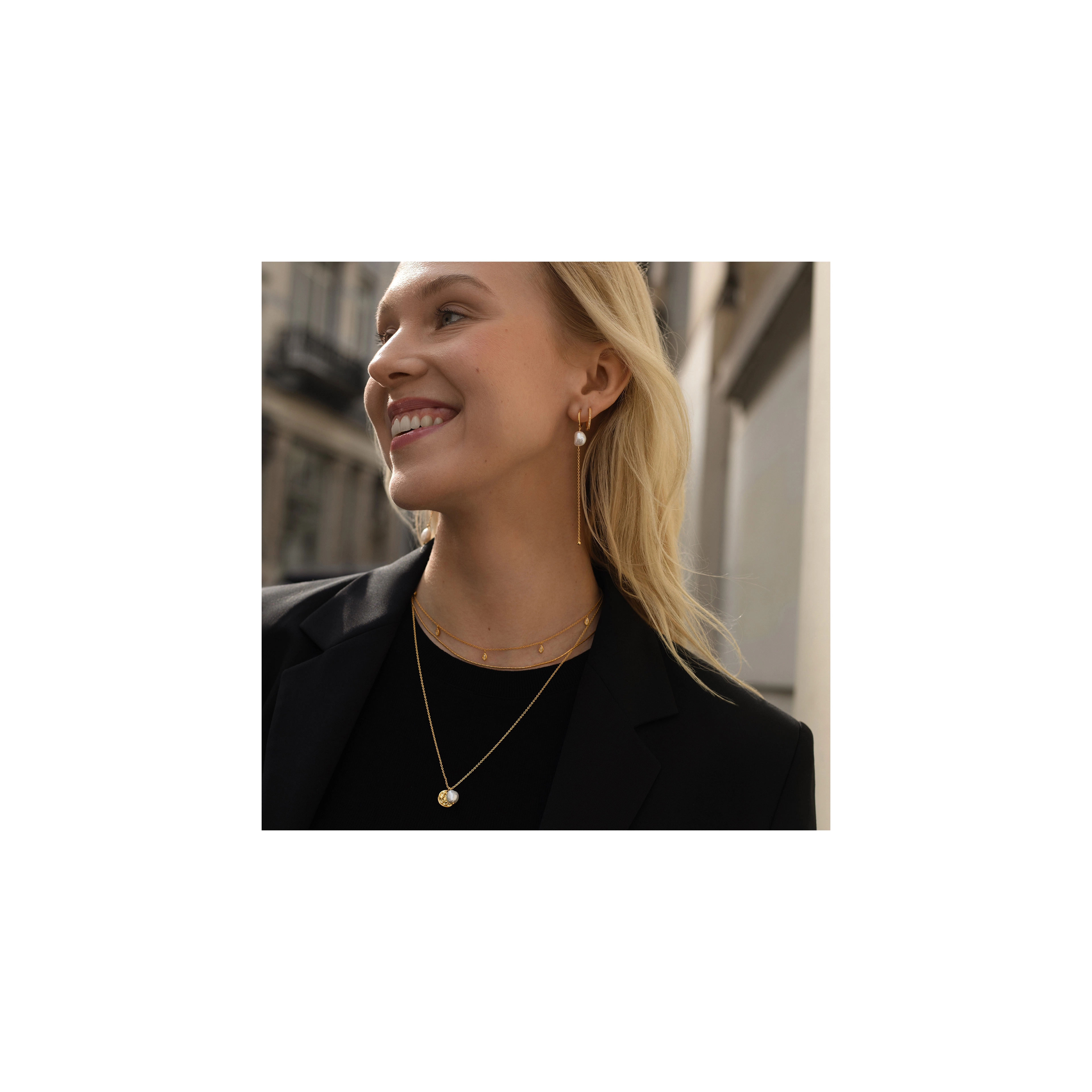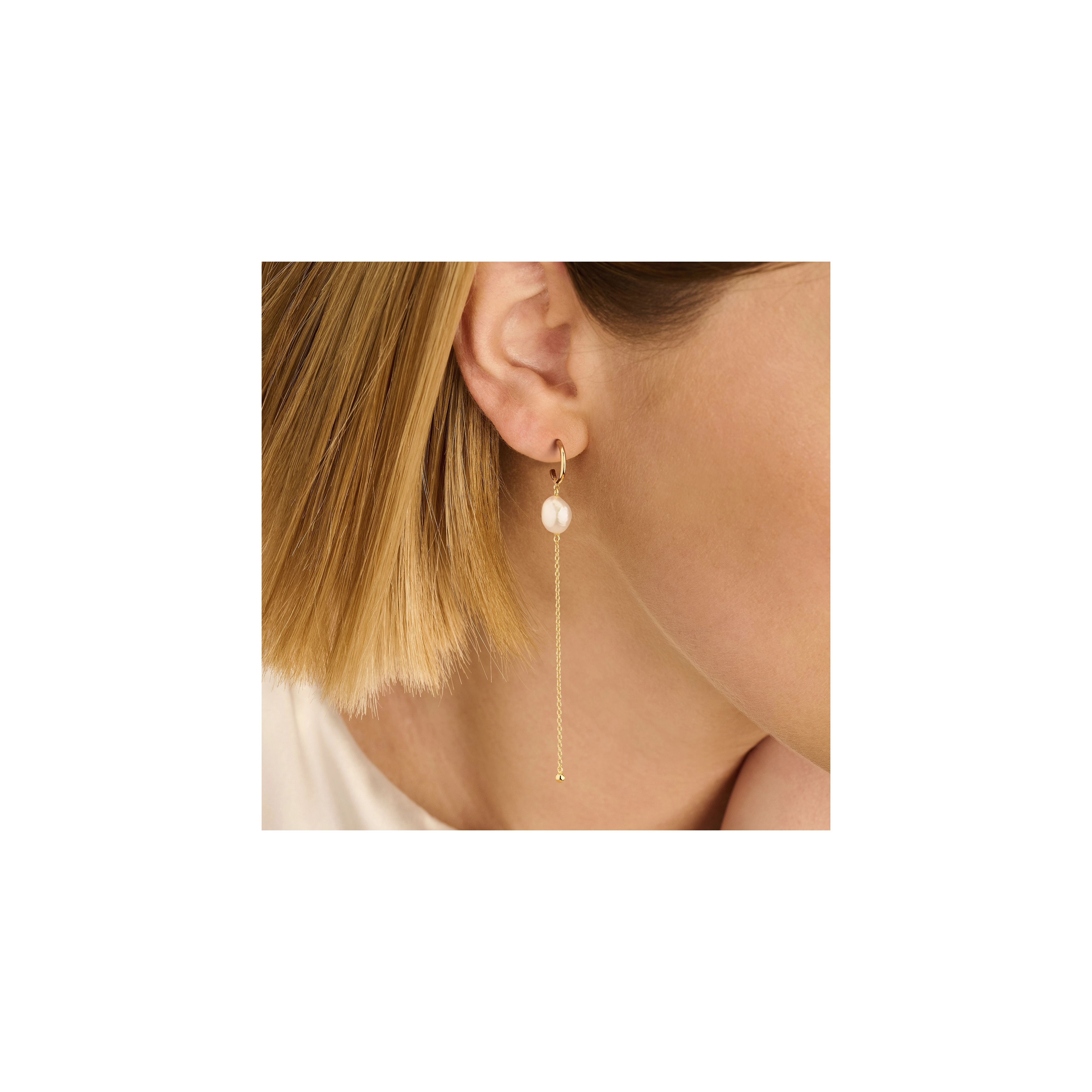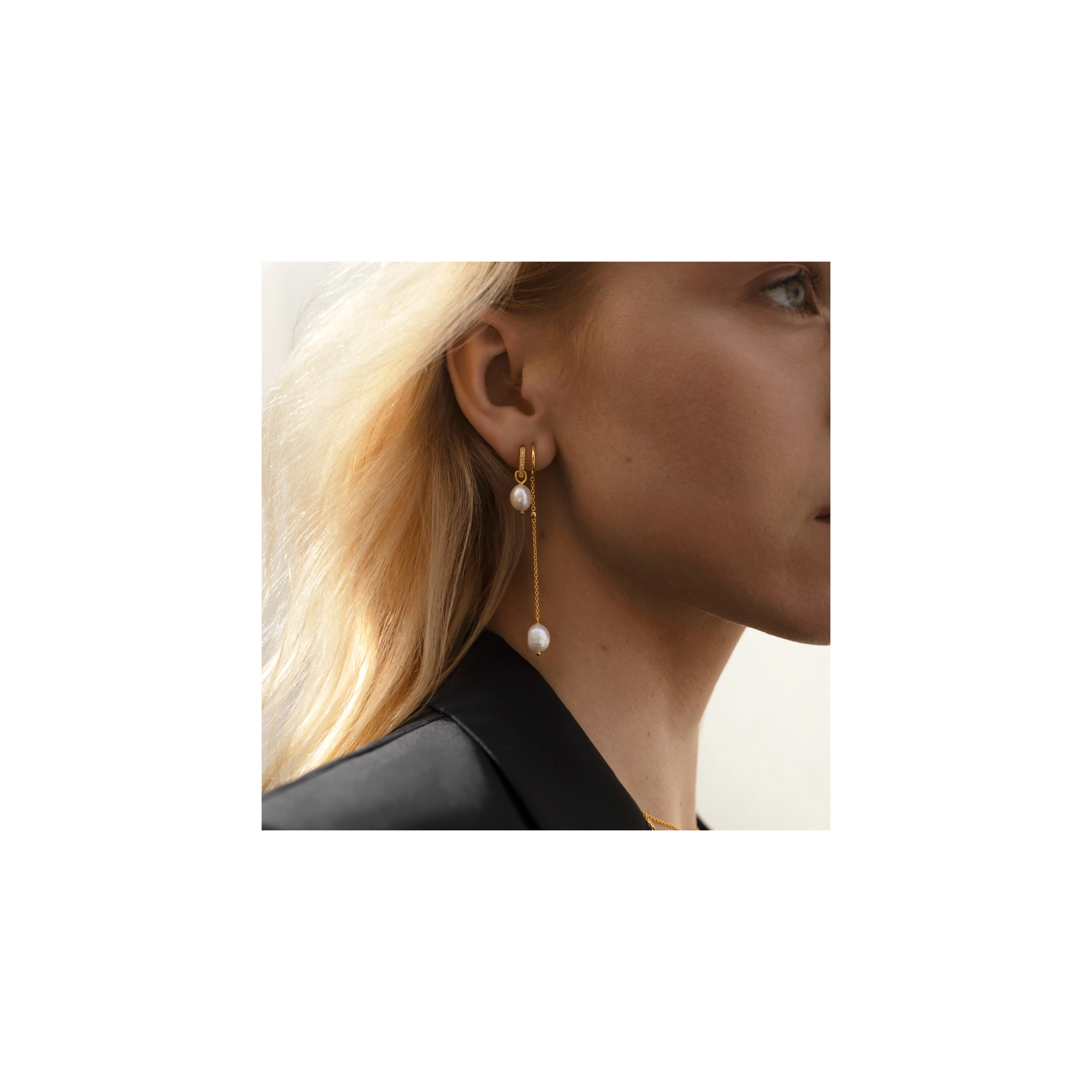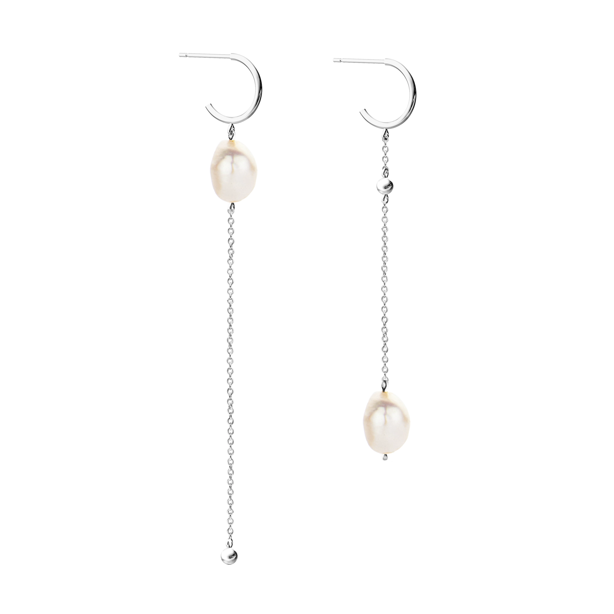 Inspired by the ultimate diva Audrey Hepburn, screen legend in Golden Age Hollywood. Playful asymmetric chain earrings with 2x baroque pearls - extraordinary and always classy.