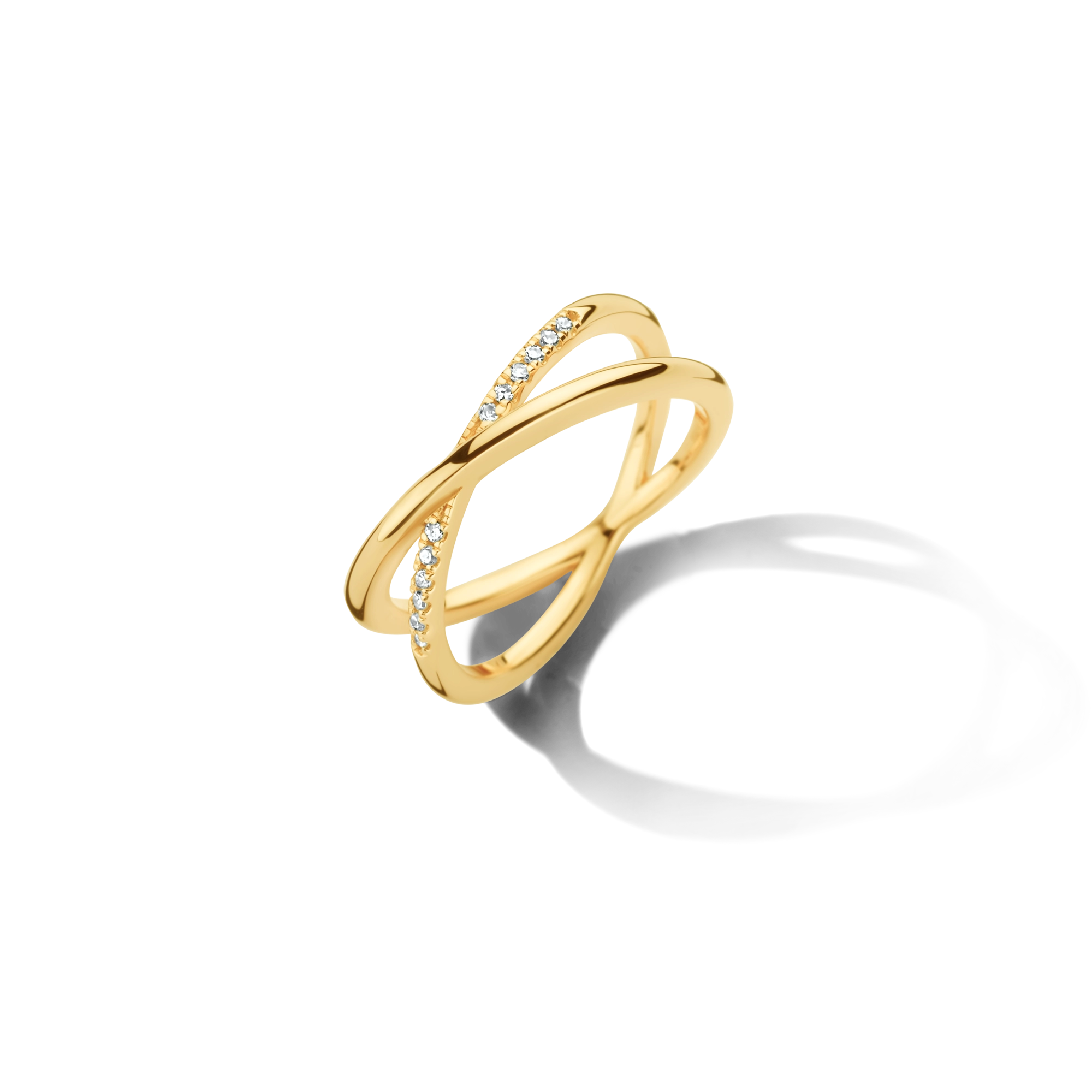 A timeless series of re-interpretations of a classic pavé band: our Crossover ring puts 10x pure diamonds beautifully on display in a crossover design. Easy to pair with our Braided ring, Double Cross ring or Endless series.