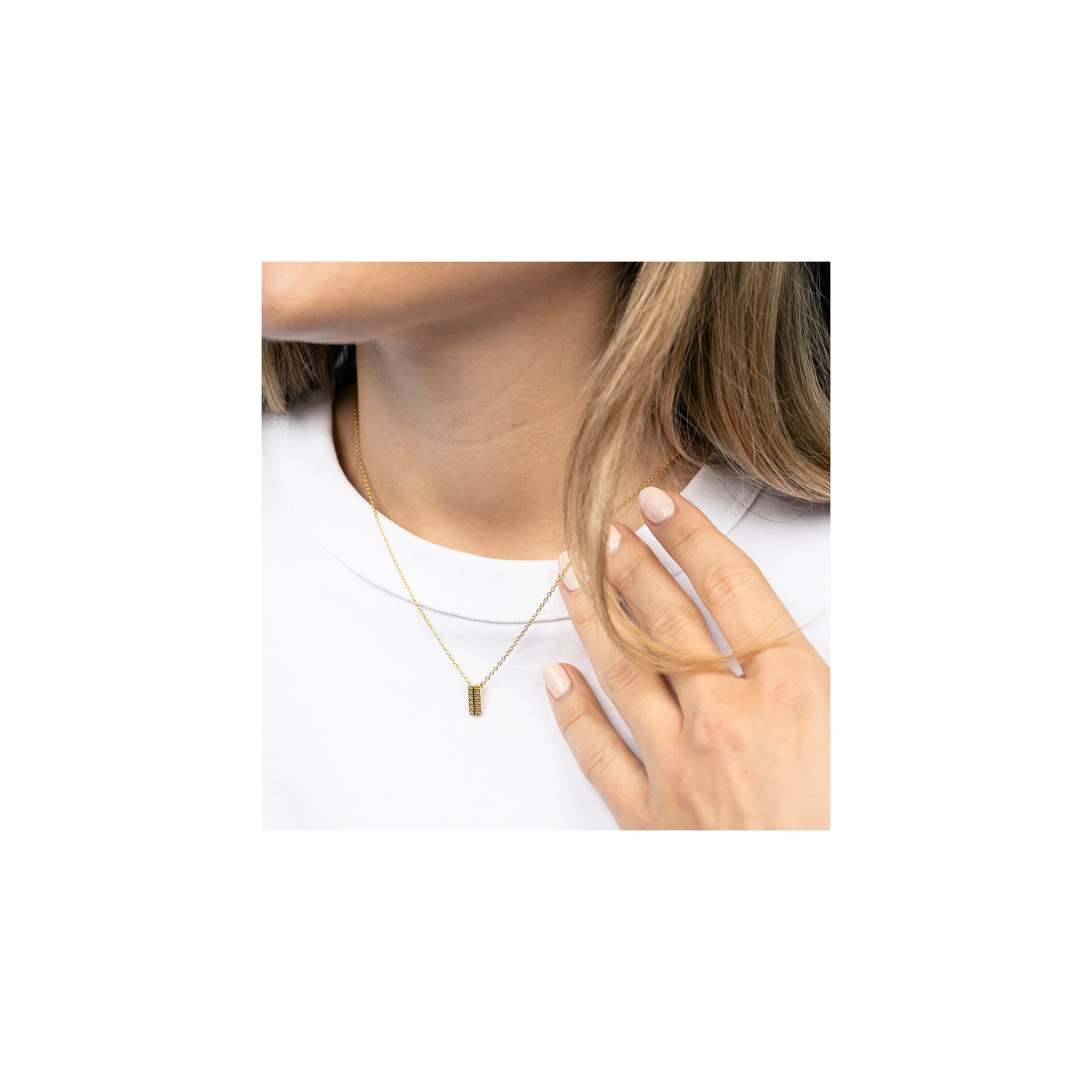 Float effortlessly into elegance — a necklace inspired by the celestial beauty of the free-spirited air element. Two vertical lanes of pavé-set diamonds (12x) shimmer side by side, like twin trails of starlight cutting through a clear night sky. Designed to embody lightness and grace, this piece is a tribute to the boundless energy of the winds.