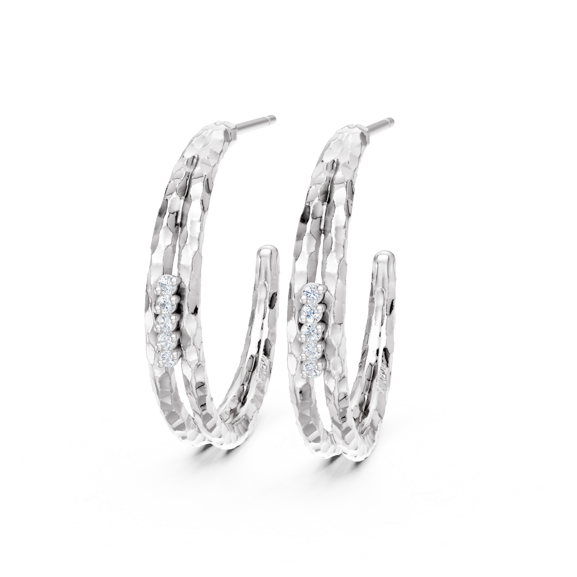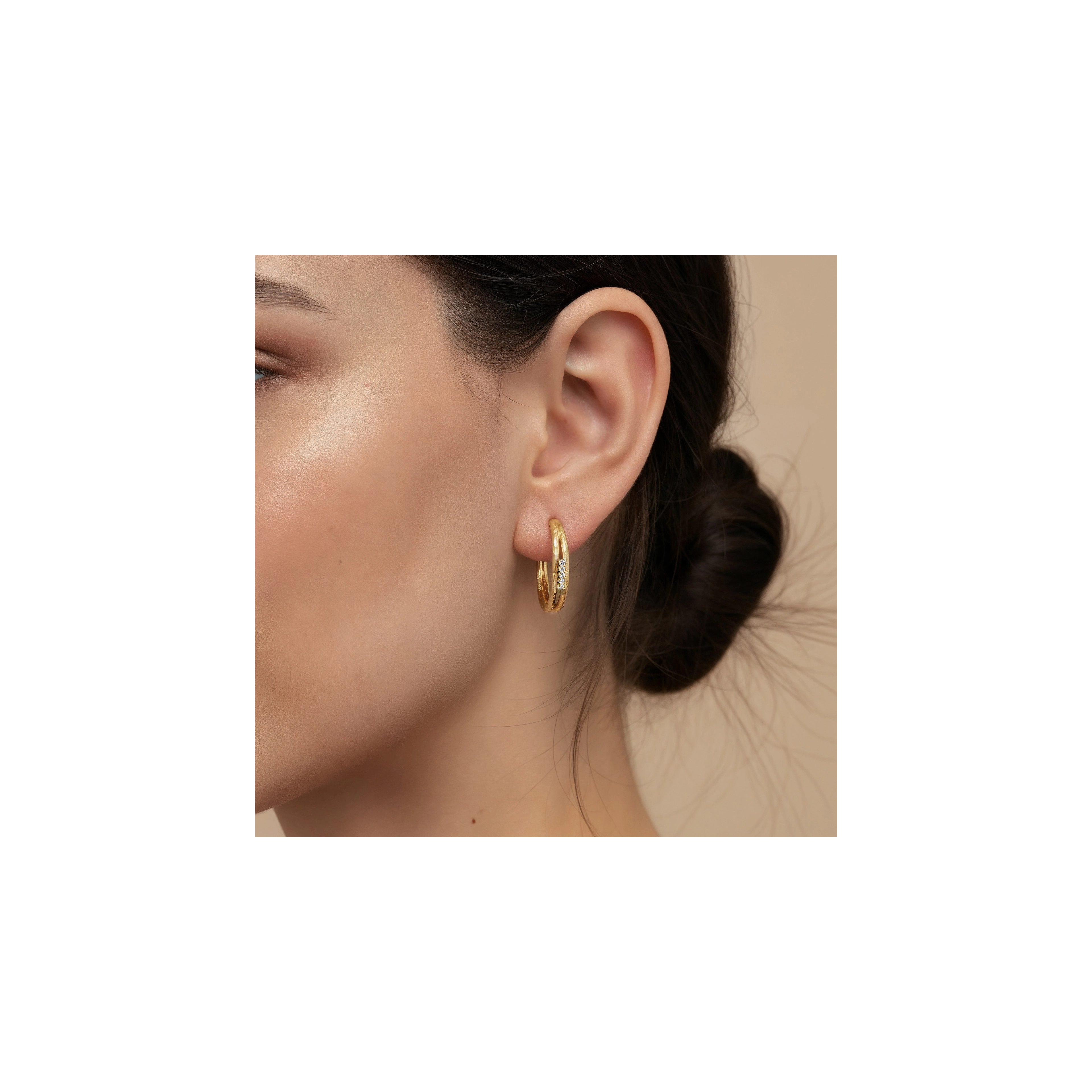 Echoing the fierceness of the peacock’s powerful talons, these medium-sized round hoops showcase a distinctive hammered texture that splits into two sleek tubes. 5x natural diamonds glint from the open space in between, perfectly balancing rugged texture with refined elegance. Combining raw strength with subtle sparkle — they are a go-to piece for those unafraid to make a striking impression.