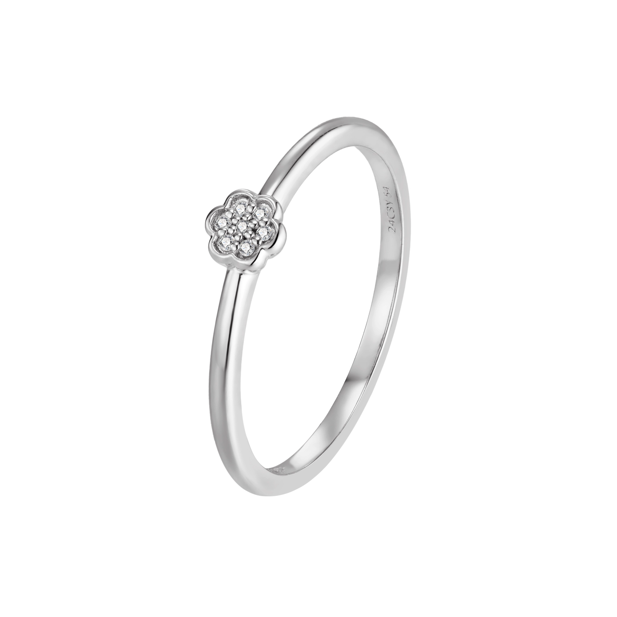 A new edition in our iconic and bestselling First diamond series. The same diamond (7x) centerpiece, now available in a sweet floral setting. Still the best piece around to get you started on your everyday diamond jewelry kit and to stack effortlessly with any of your future additions.