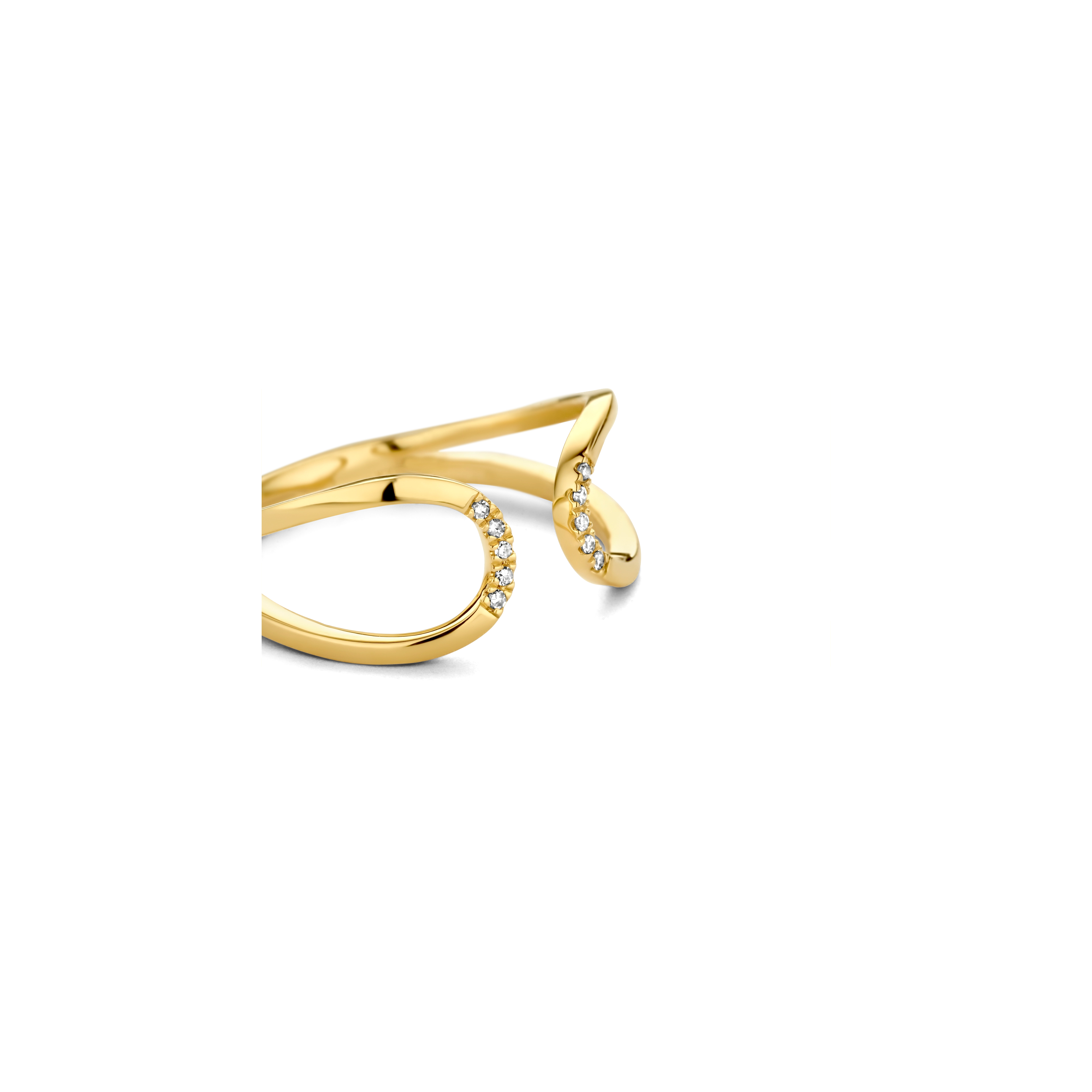 Watch 10x white natural diamonds, as they subtly flow. Featured on an oval-shaped 14 carat open ring, giving a modern touch to an heirloom worthy piece of undenying brilliance.