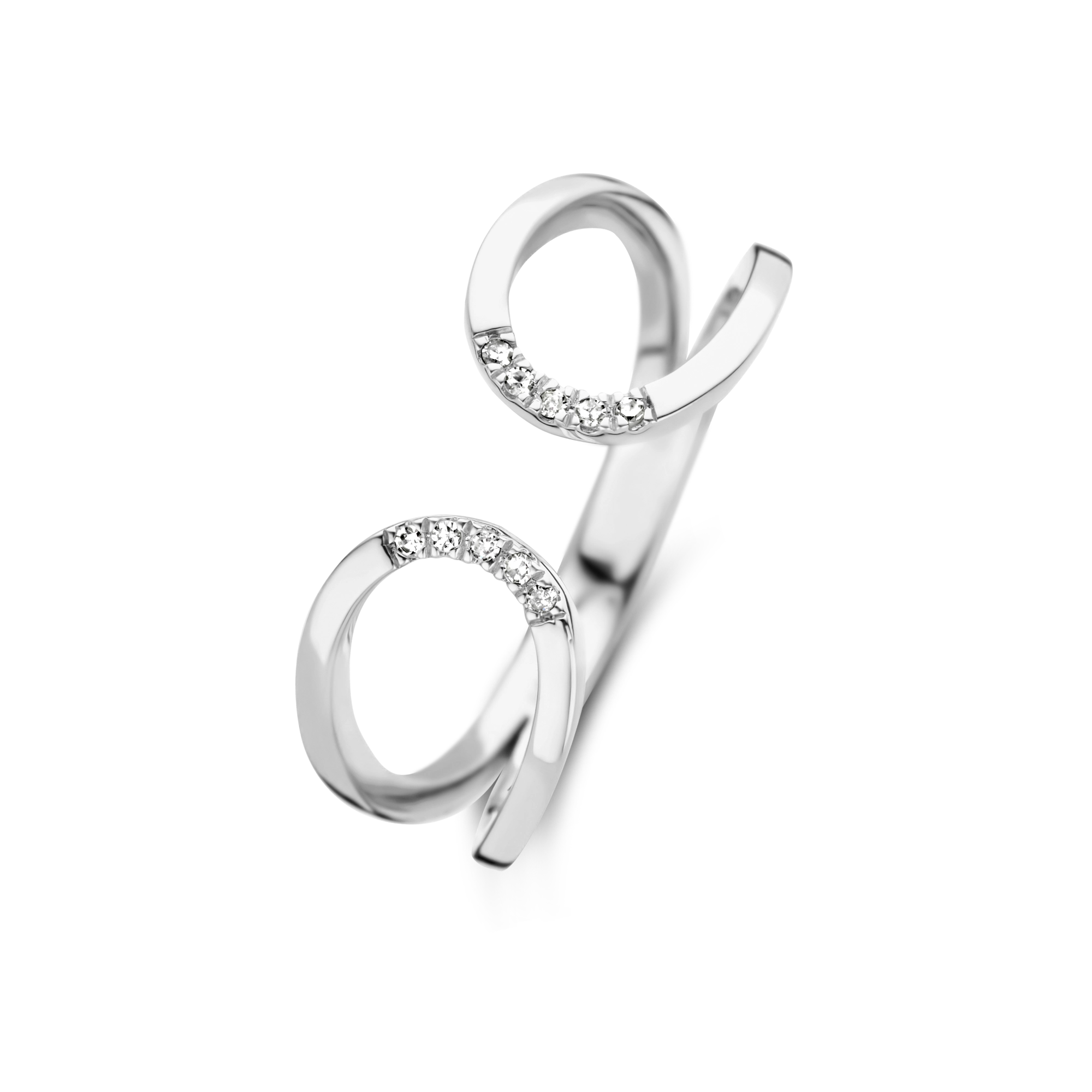 <p>Watch 10x white natural diamonds, as they subtly flow. Featured on an oval-shaped 14 carat open ring, giving a modern touch to an heirloom worthy piece of undenying brilliance. </p>