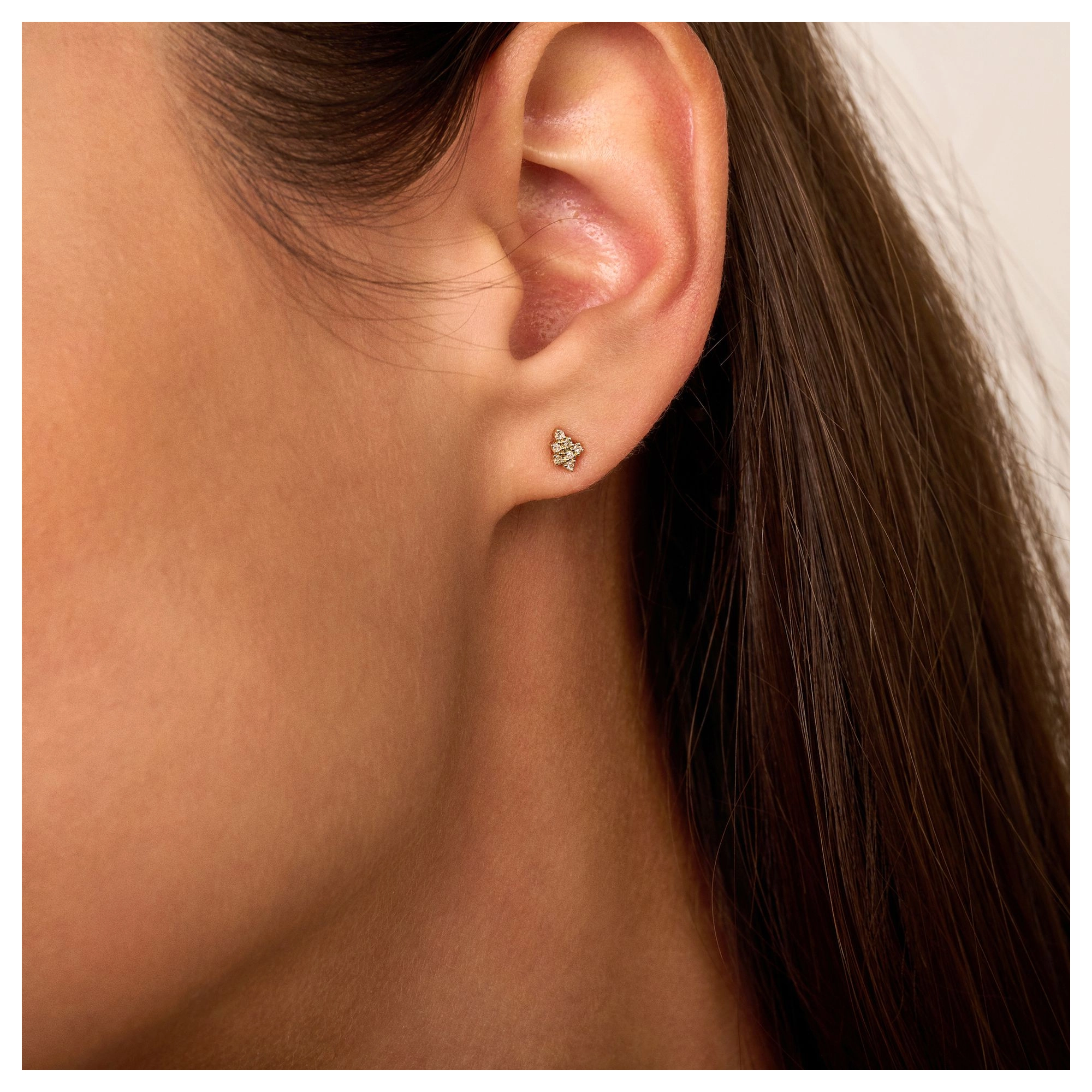 We dare you to not fall madly in love with our 14 carat gold cluster earrings — an asymetric play of 7x signature diamonds on each stud, make up for the most charming sparkler to touch your heart, and ears.