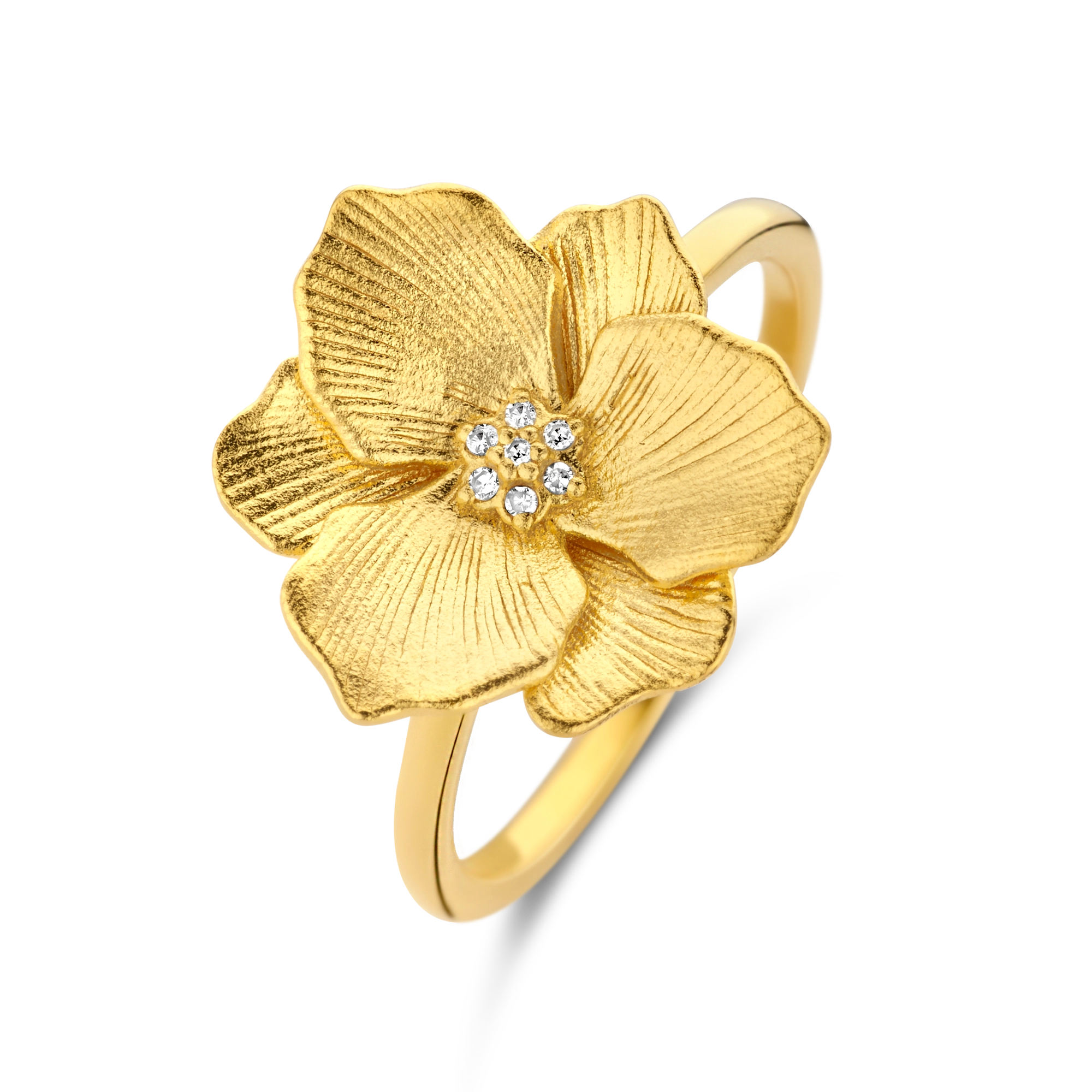 <p>A delicately detailed and engraved Jasmine flower, with a brightly gleaming diamond heart, handset in a rustic brushed finish. Whatever the season, this floral ring will spark an immediate burst of springtime happiness.</p>
