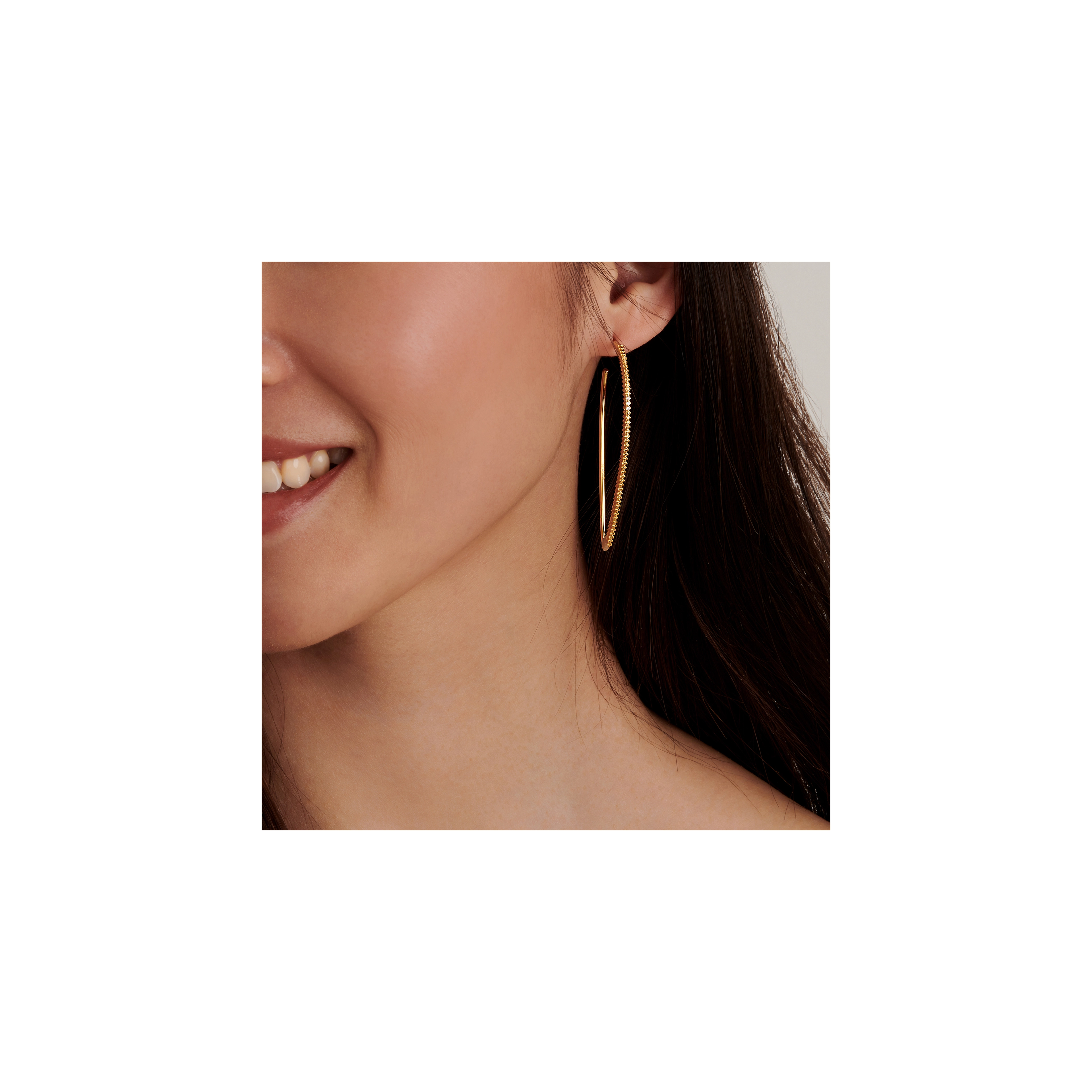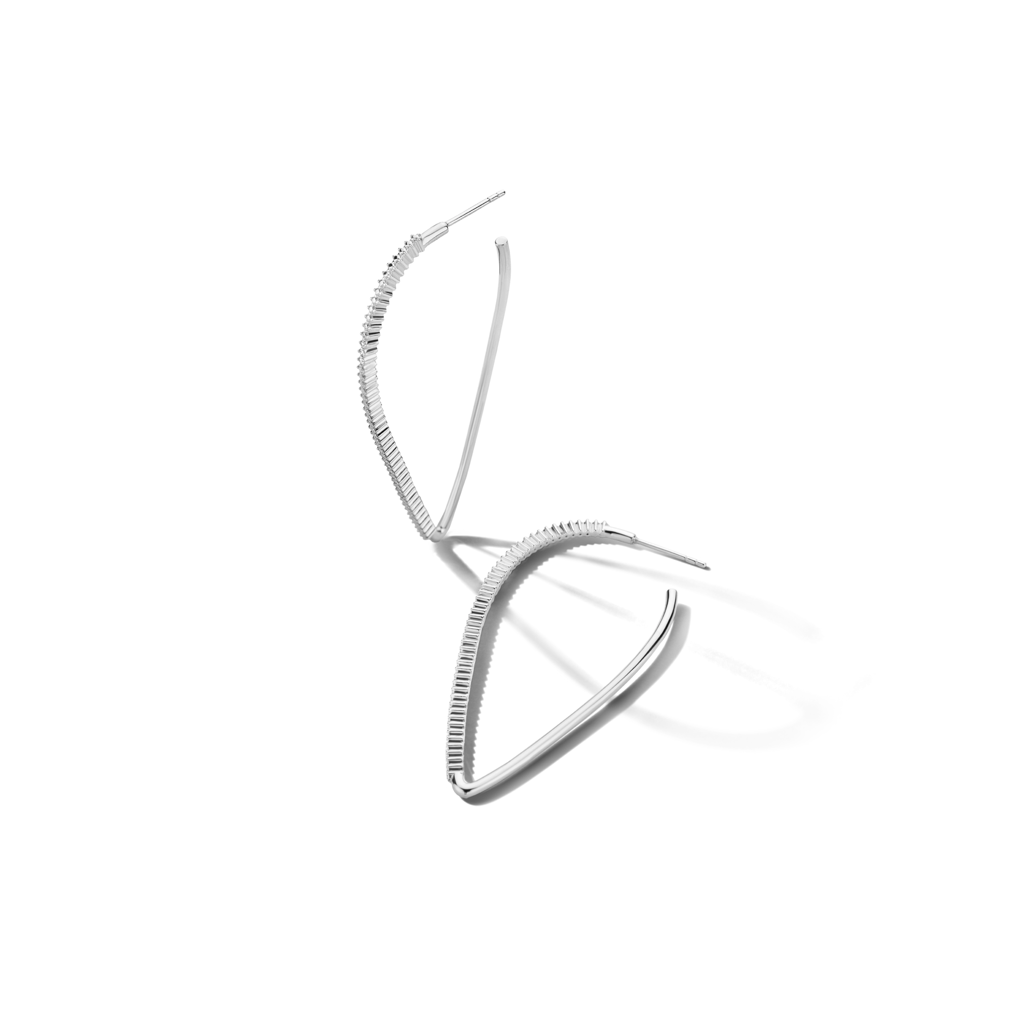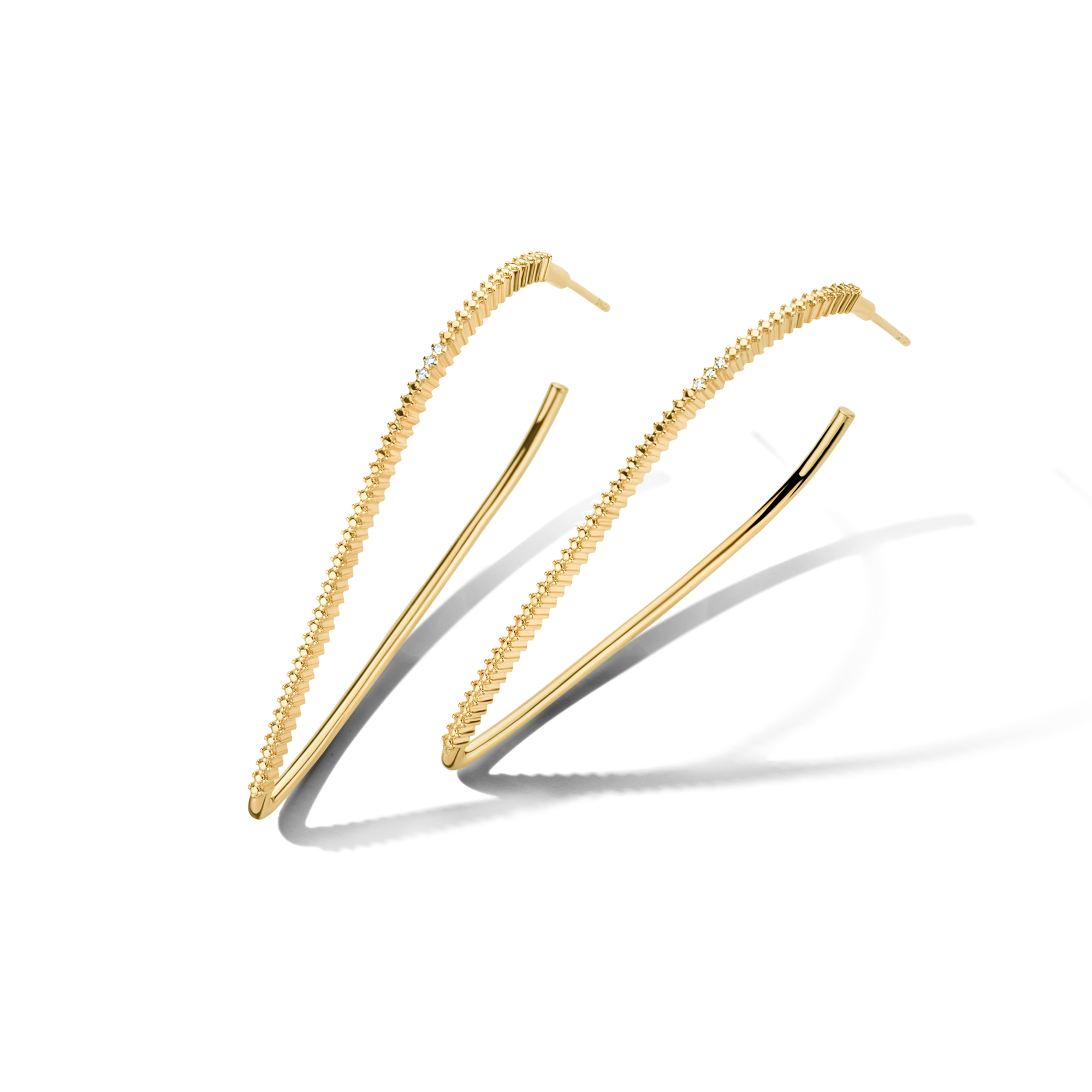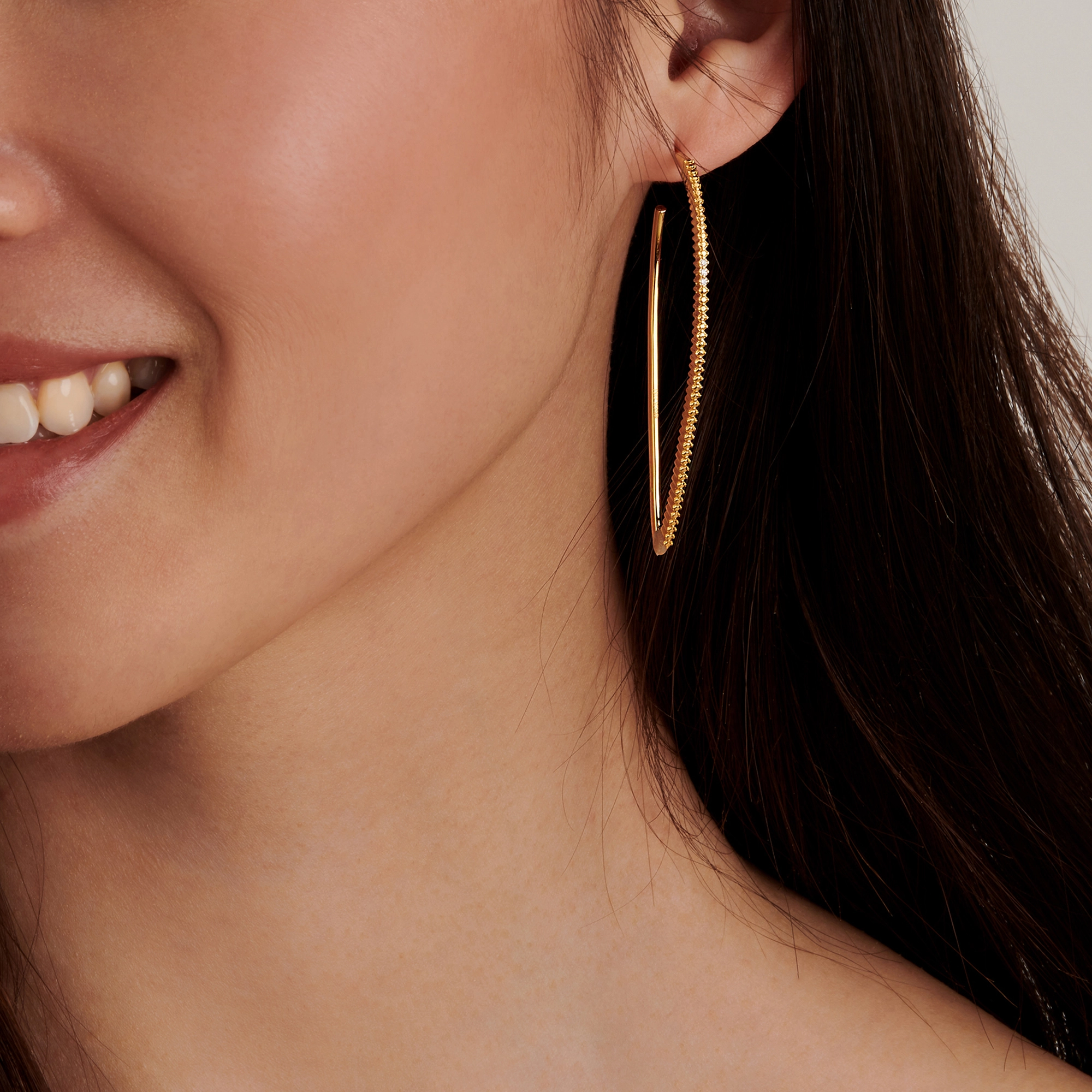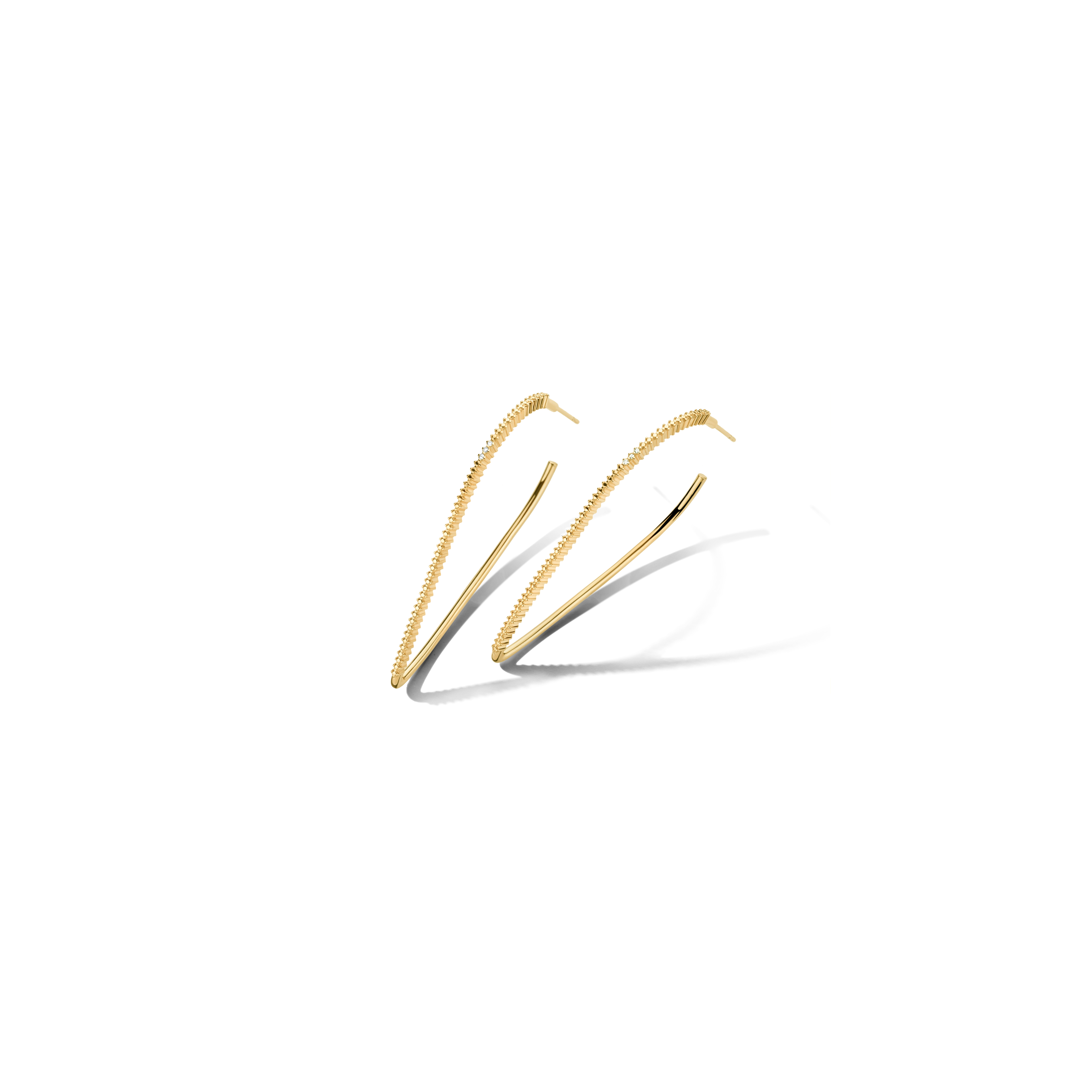 Large and energetic at once. Our eye-catching Lightening hoops feature 3x beautifully handset white diamonds, suddenly hitting you with their undeniable magic. With their contemporary style and mix of textures, these hoops form an ideal alternative to the classic 90s gold hoops.