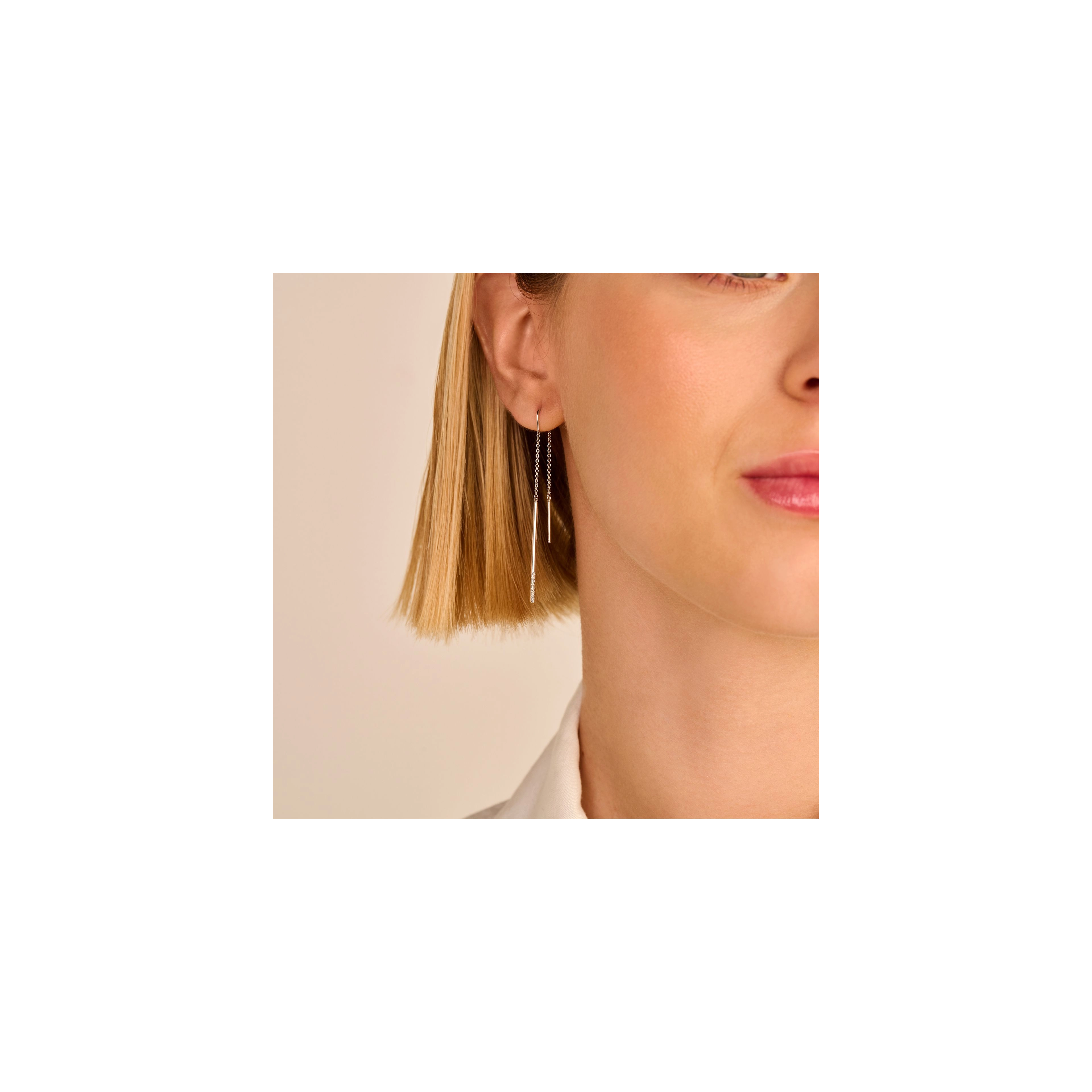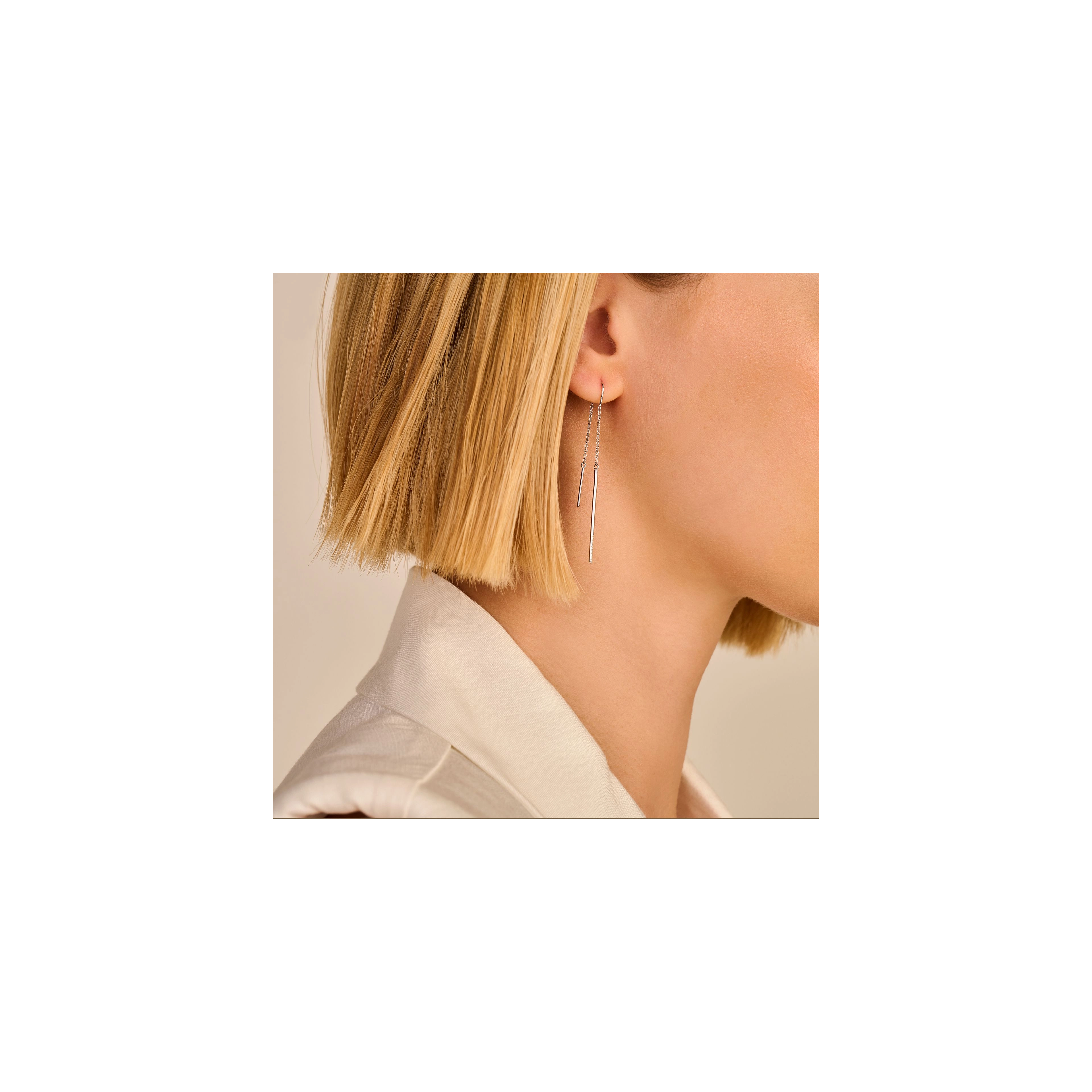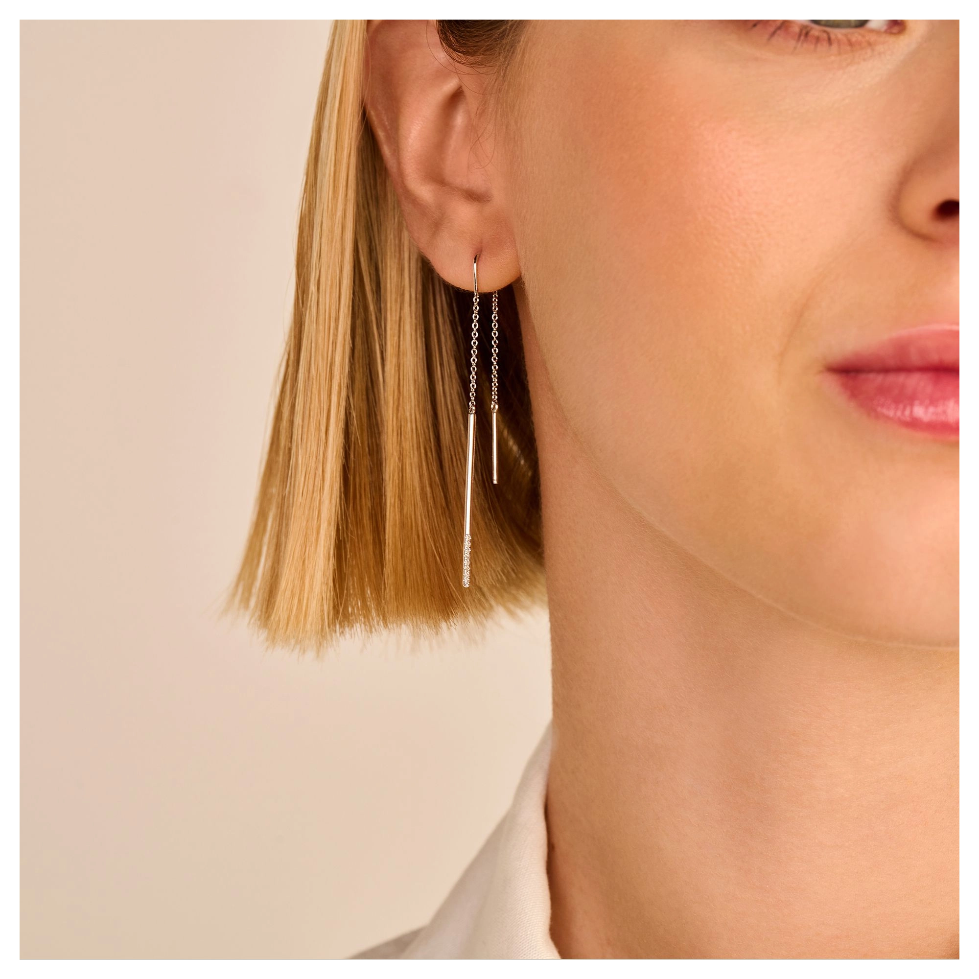 Inspired by our signature Double Linea earrings, this pair of chain threaders have a double diamond (16x) feature and softly rounded finishes. Functional hooks ensure easy fastening and a comfortable fit. Flowing with every move, wherever your curiosity takes you today.