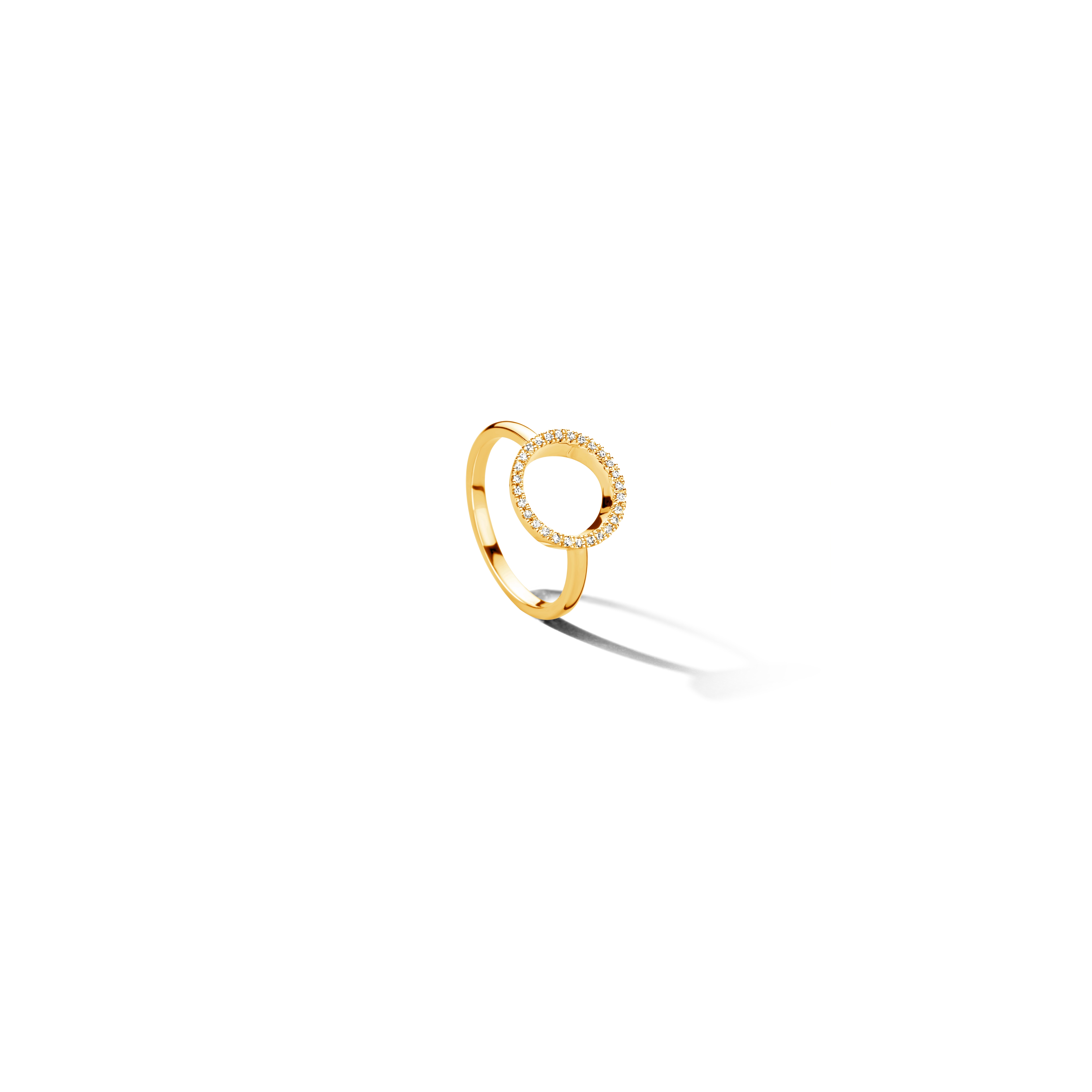A circular design, symbolizing an infinite loop of magical moments that is life. Made in sterling silver, handset with 28x white diamonds and available in silver rhodium or 18 carat yellow or rose gold vermeil.
