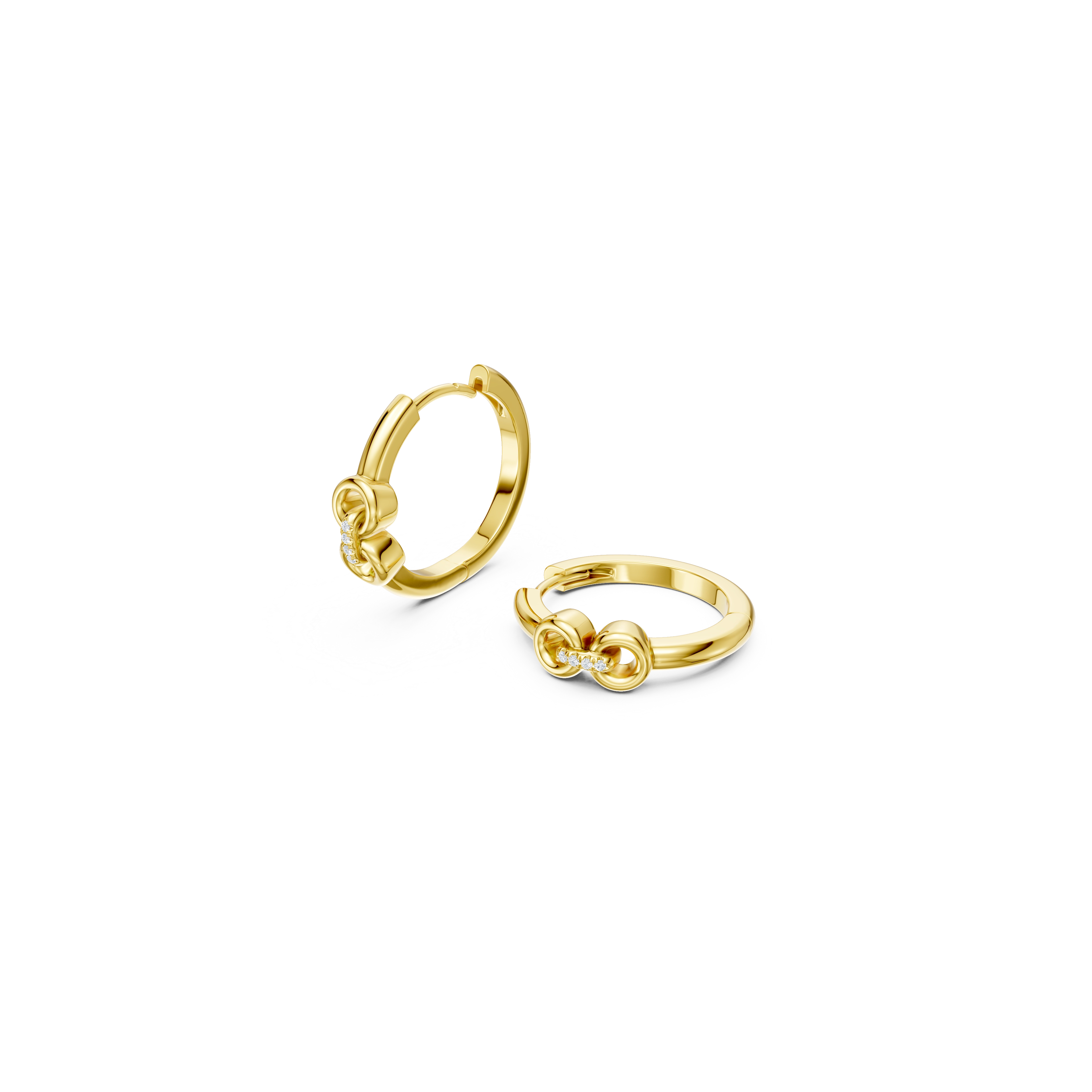 Intimate, radiant, enduring. These hoop earrings feature two polished circles, bound by a delicate diamond bar handset with 4x shimmering diamonds. A design of balance and connection, made to shine with quiet strength.