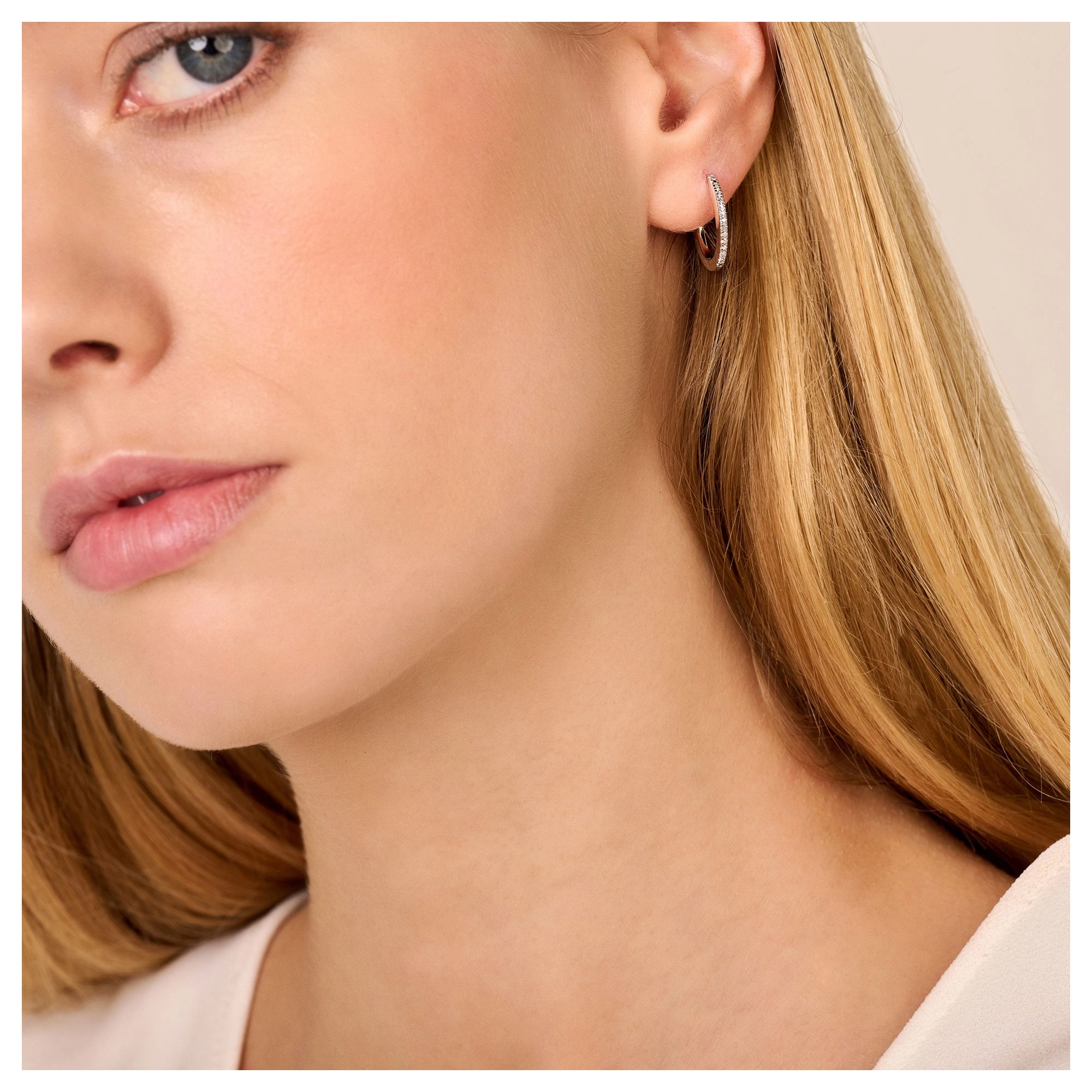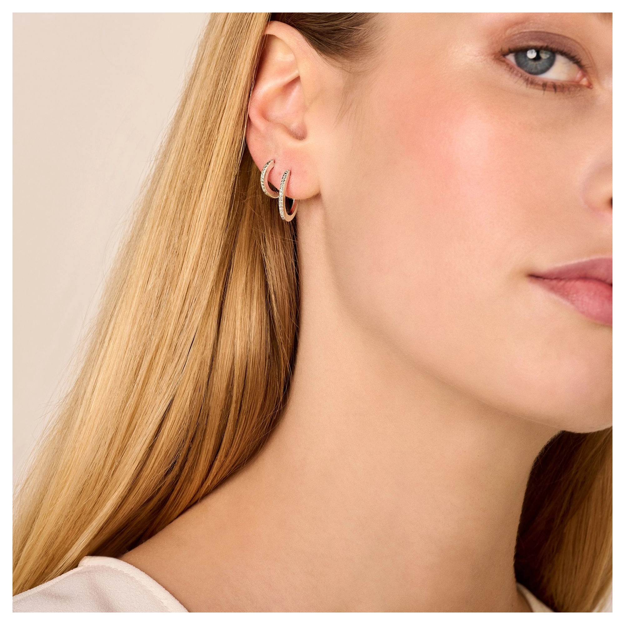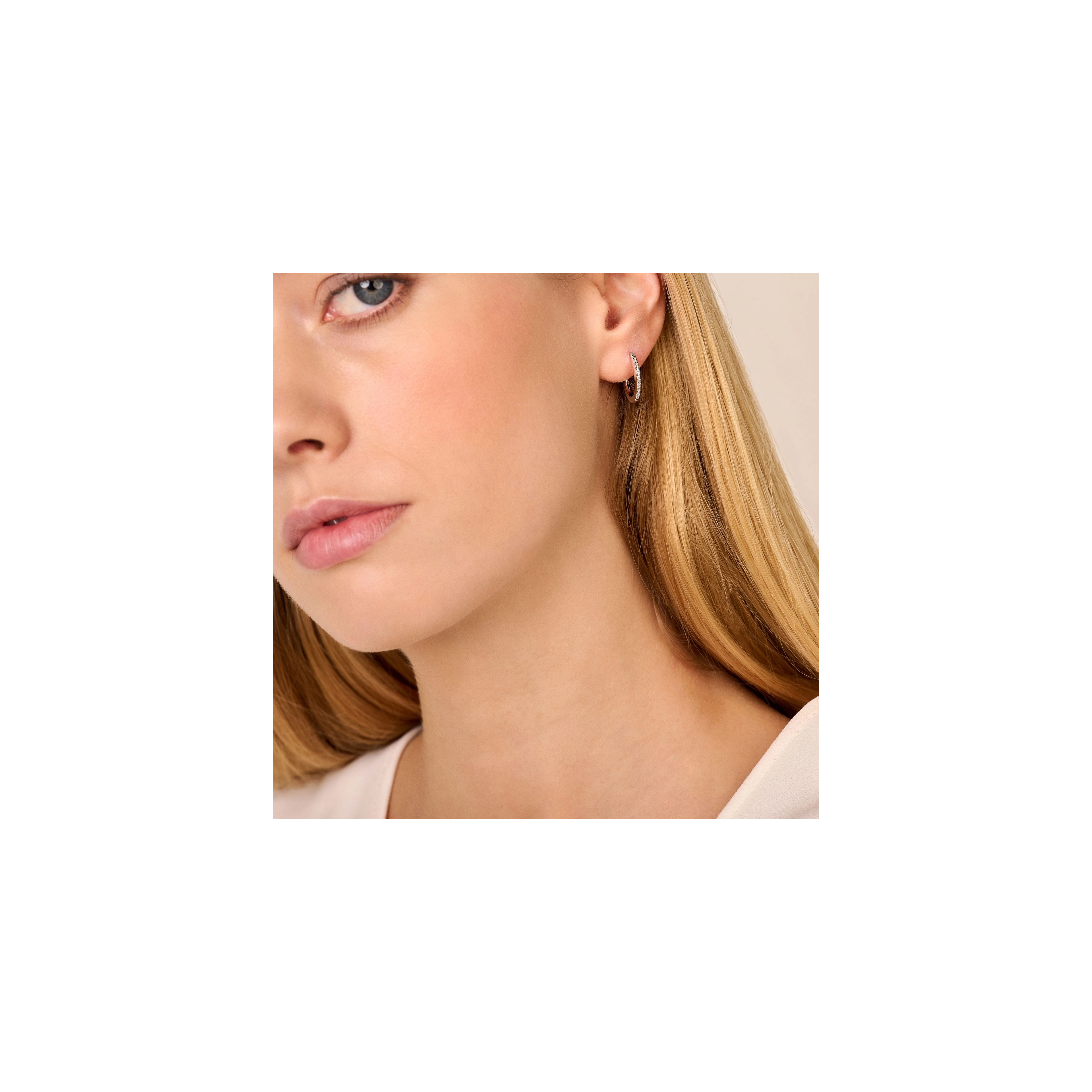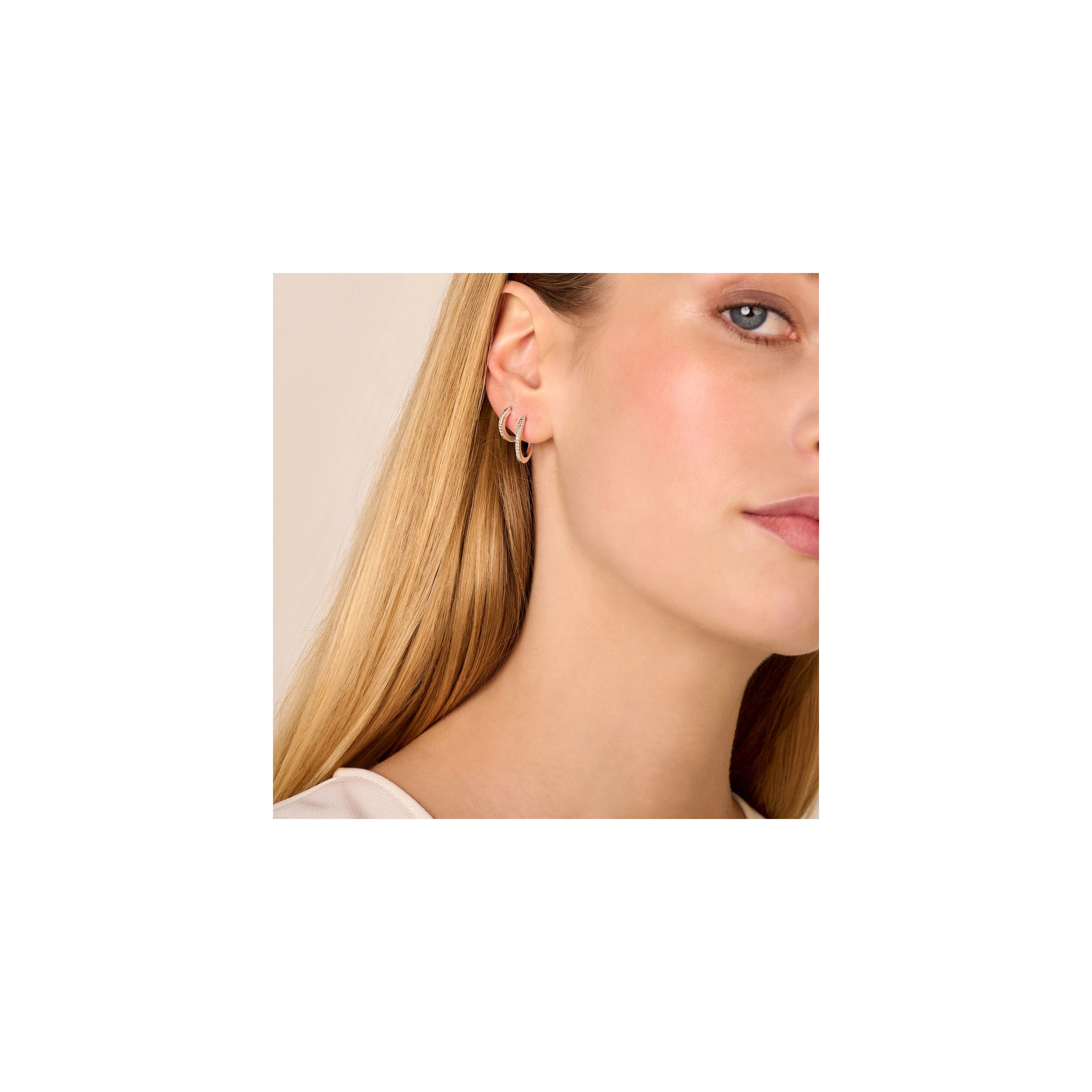 Iconic hoops, featuring 11x white diamonds, to make you shine from the inside out - all day, every day. P.S.: Also available in extra (sparkly) large sizes or as single hugging hoops. Feel free to play around and mix sizes. Made in sterling silver, gilded with silver rhodium or 18 carat yellow or rose gold vermeil.
