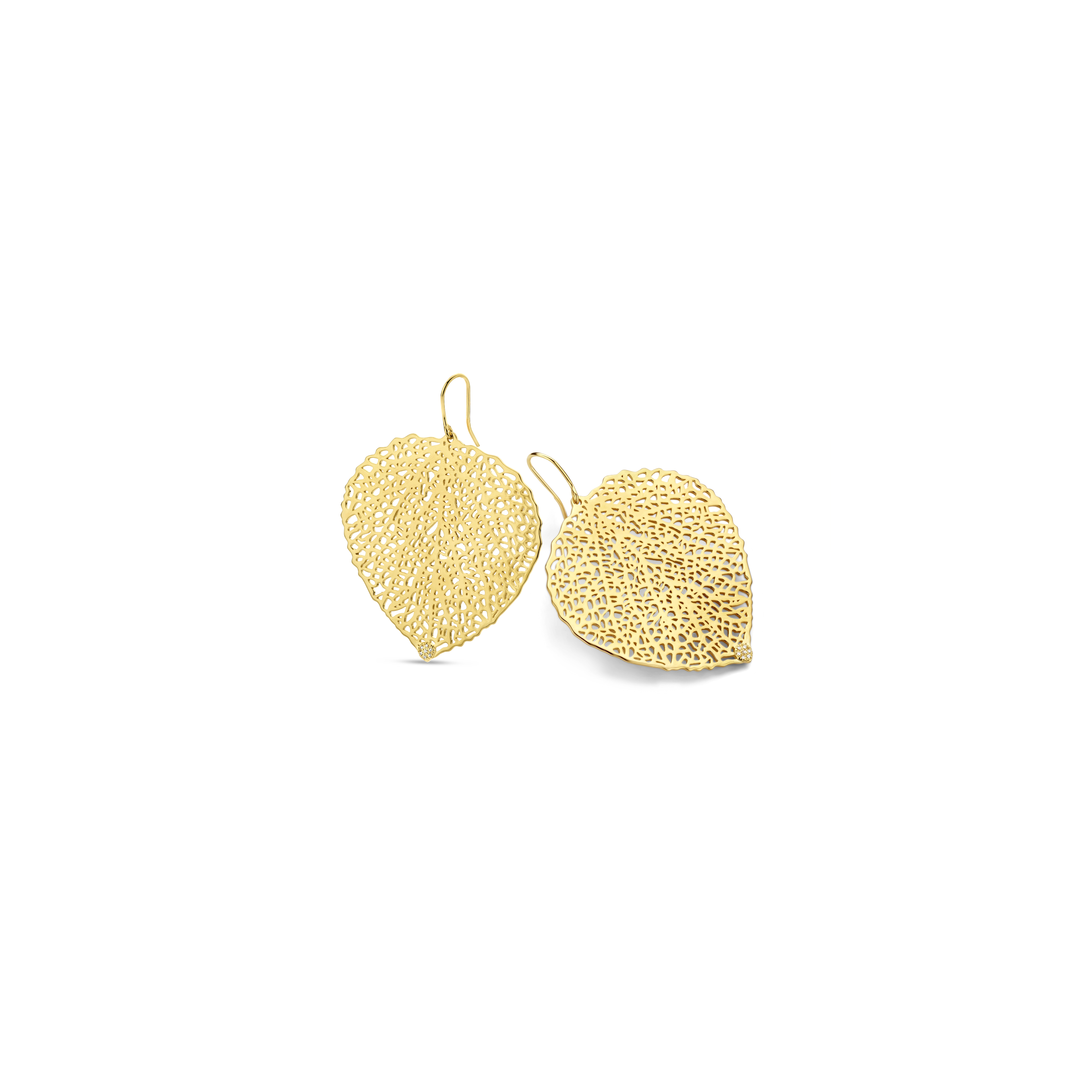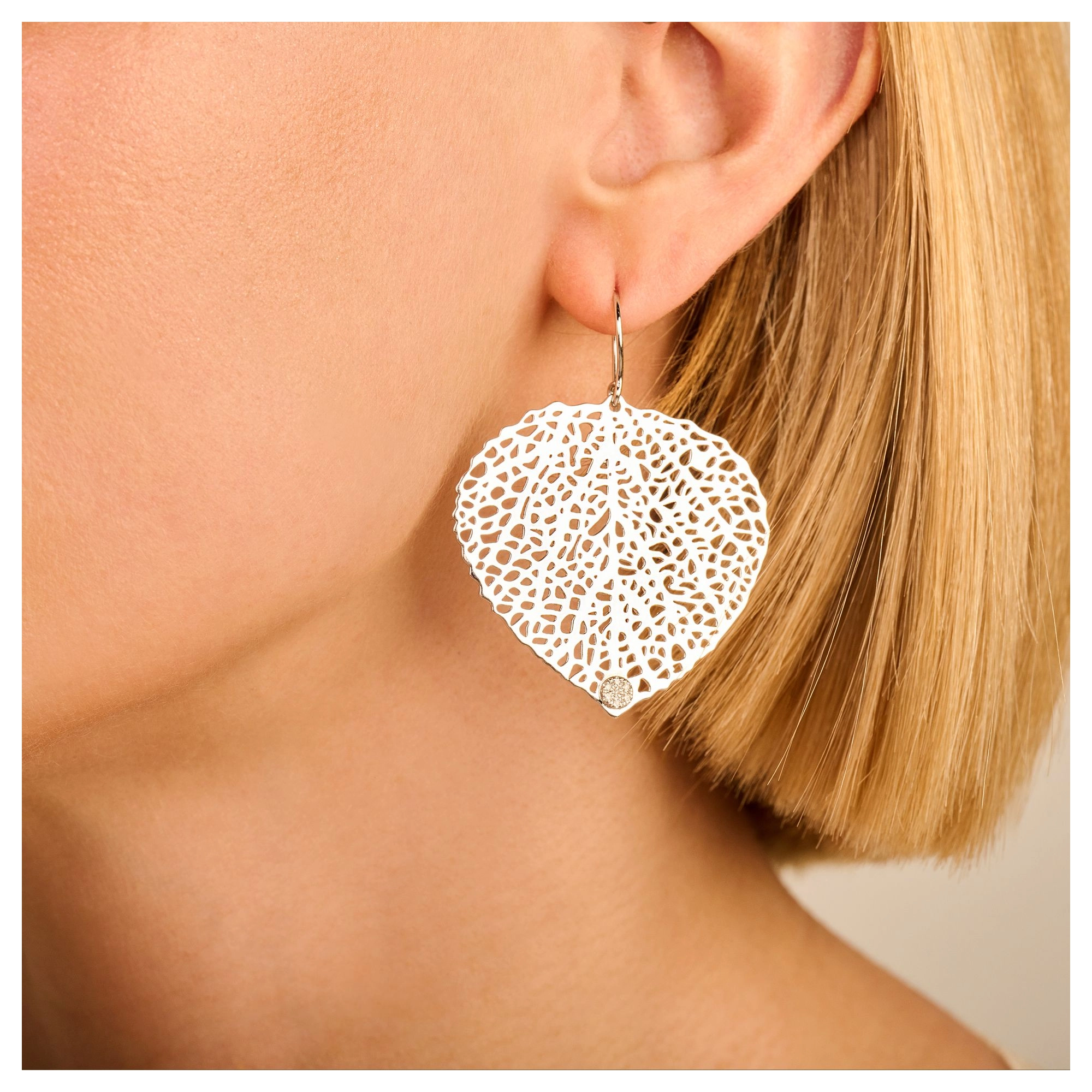 At DPT, nature continues to be our biggest source of inspiration. The detailed vein structure on this breathtaking pair of leaf earrings is a true work of art. A cluster of 7x natural diamonds, represents a drip of rain, softly running down.STYLING TIP Our subtle First Diamond and Galaxy series are a perfect fit to create a balanced organic look.