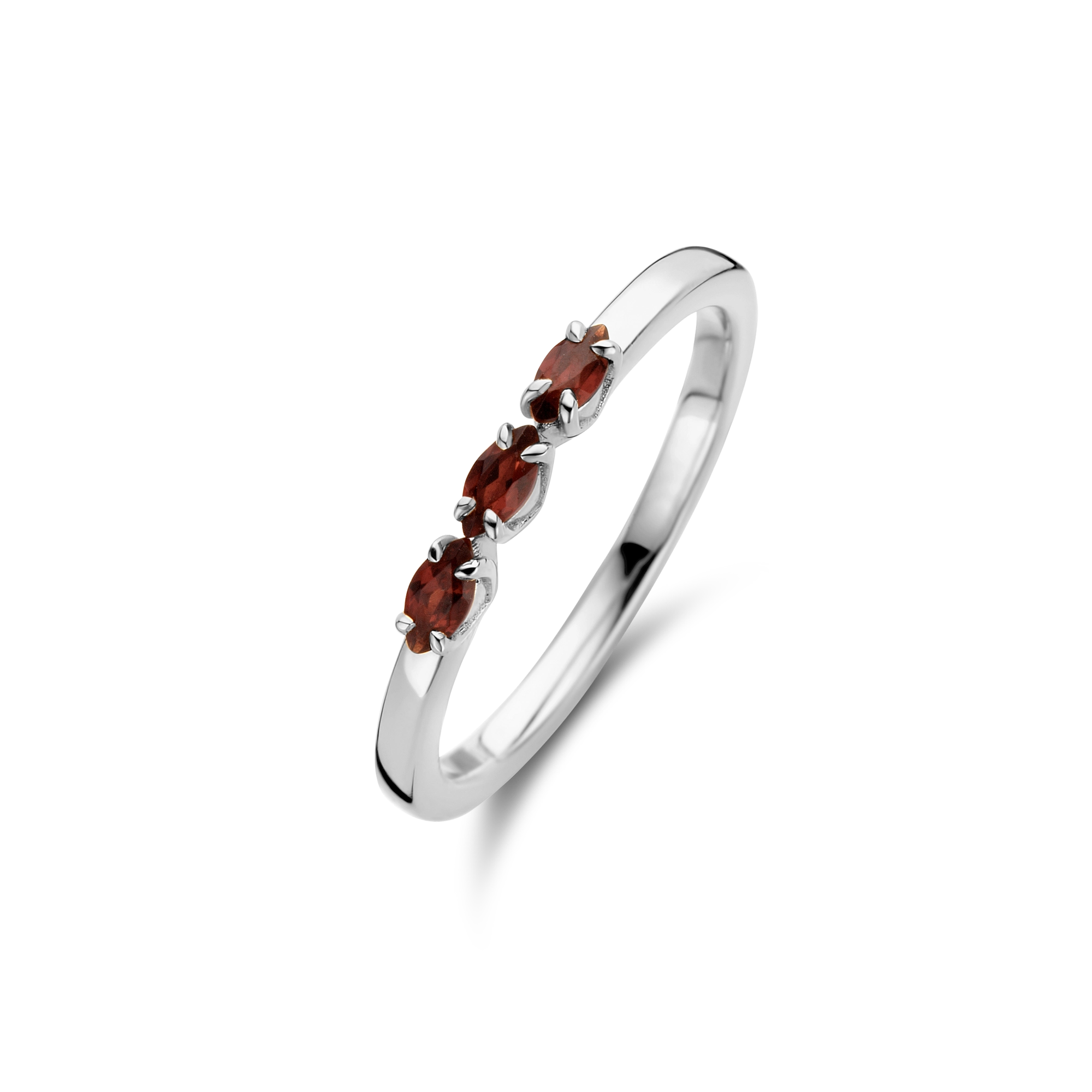 'Que sera, sera. Whatever will be, will be.' Gracefully clinching 3x enticing red garnets - the gemstone of passion - into a fine claw setting, highlighting its fierce character, full of fire.
