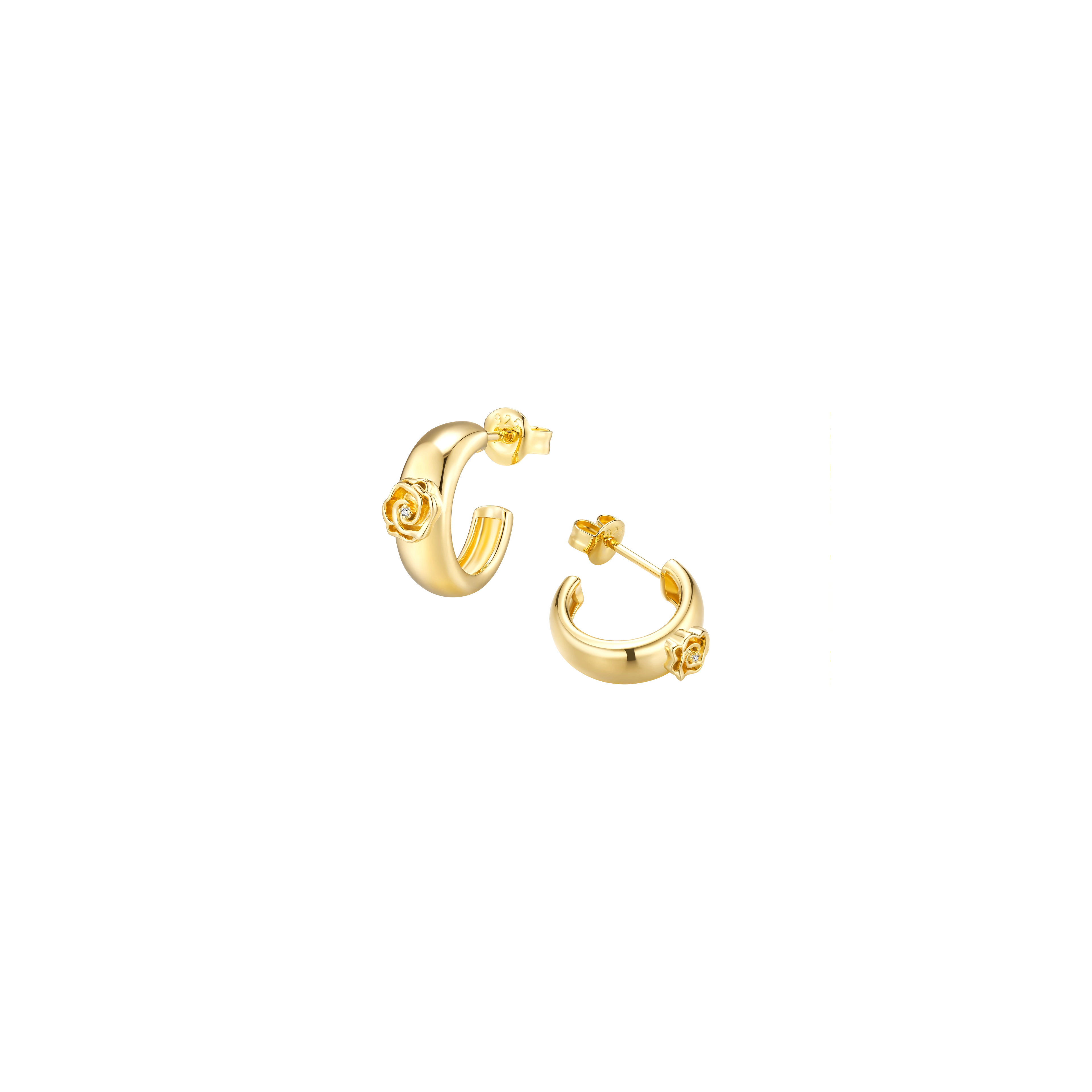 These hoops aren’t just a budding tribute to nature; they’re a full-blown floral affair for your soul. A pair of wider hoop earrings flaunting lovely rose flowers, each with a natural white diamond at heart. Perfectly balancing boldness and grace, they make every day blossom with charm.