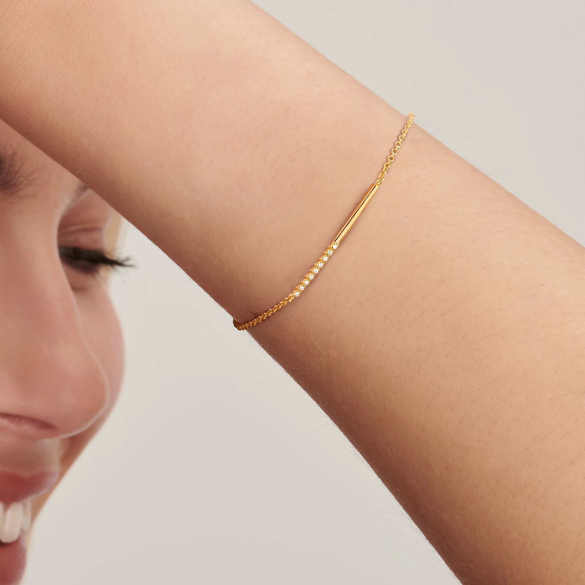 Set your spirit free. Embracing everyday life in this minimalist diamond bracelet - brimming in confidence, there is no holding you back.