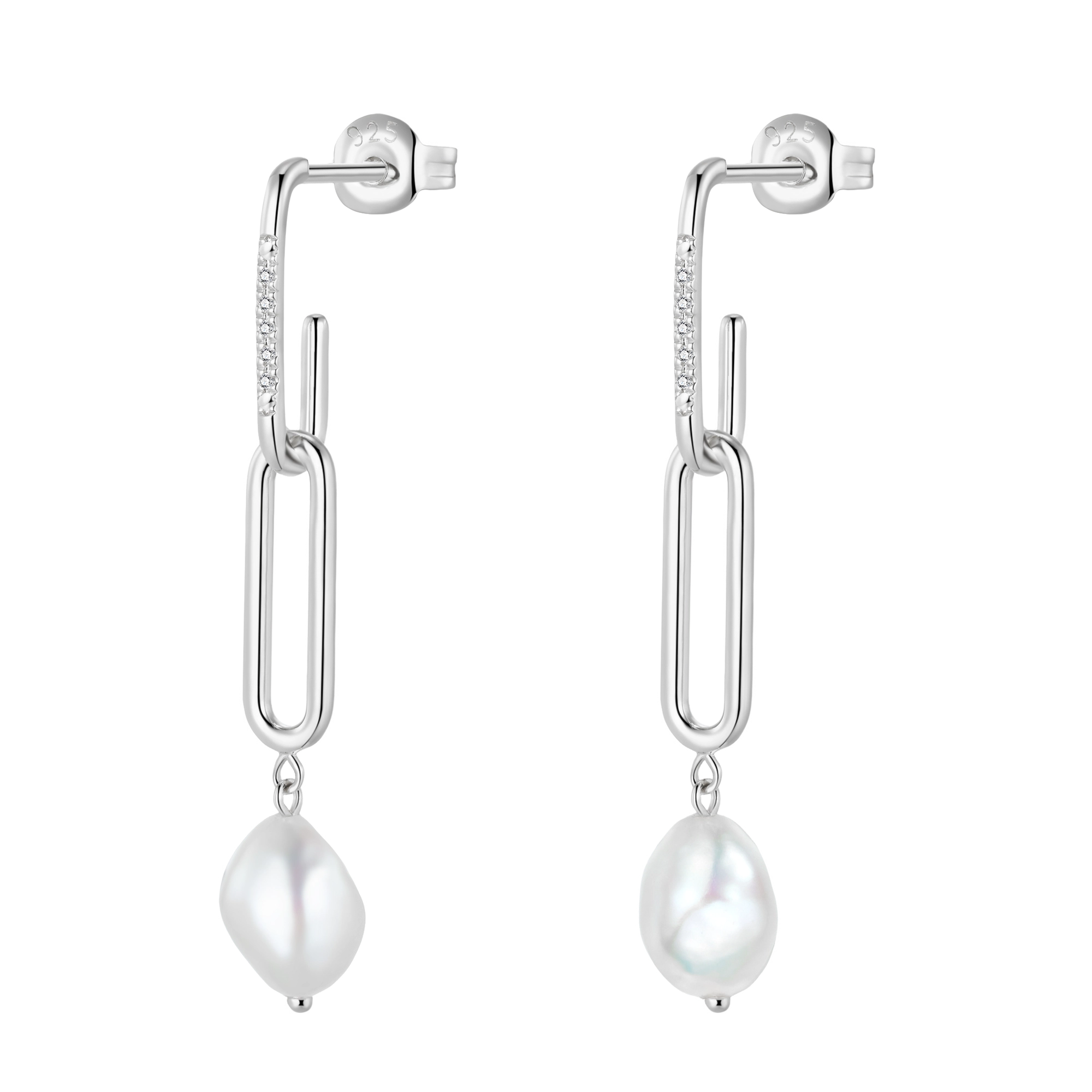 A pair of earrings that embody freedom and elegance. Delicate double shackles, each adorned with 5x radiant natural white diamonds, flow effortlessly like a breeze in motion. A lustrous baroque pearl pendant sways below, capturing the ethereal beauty of clouds drifting in the sky. Perfect for those who seek the balance between strength and delicacy.