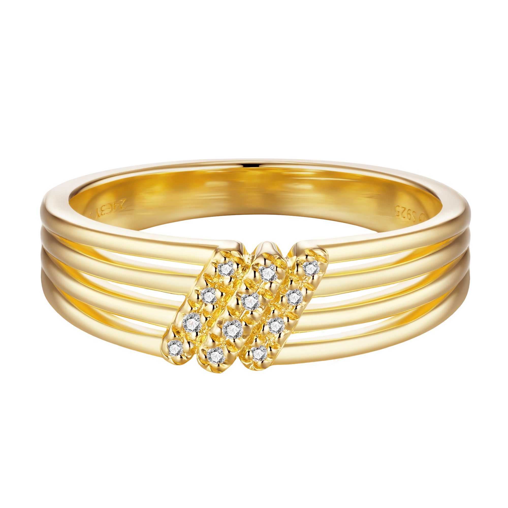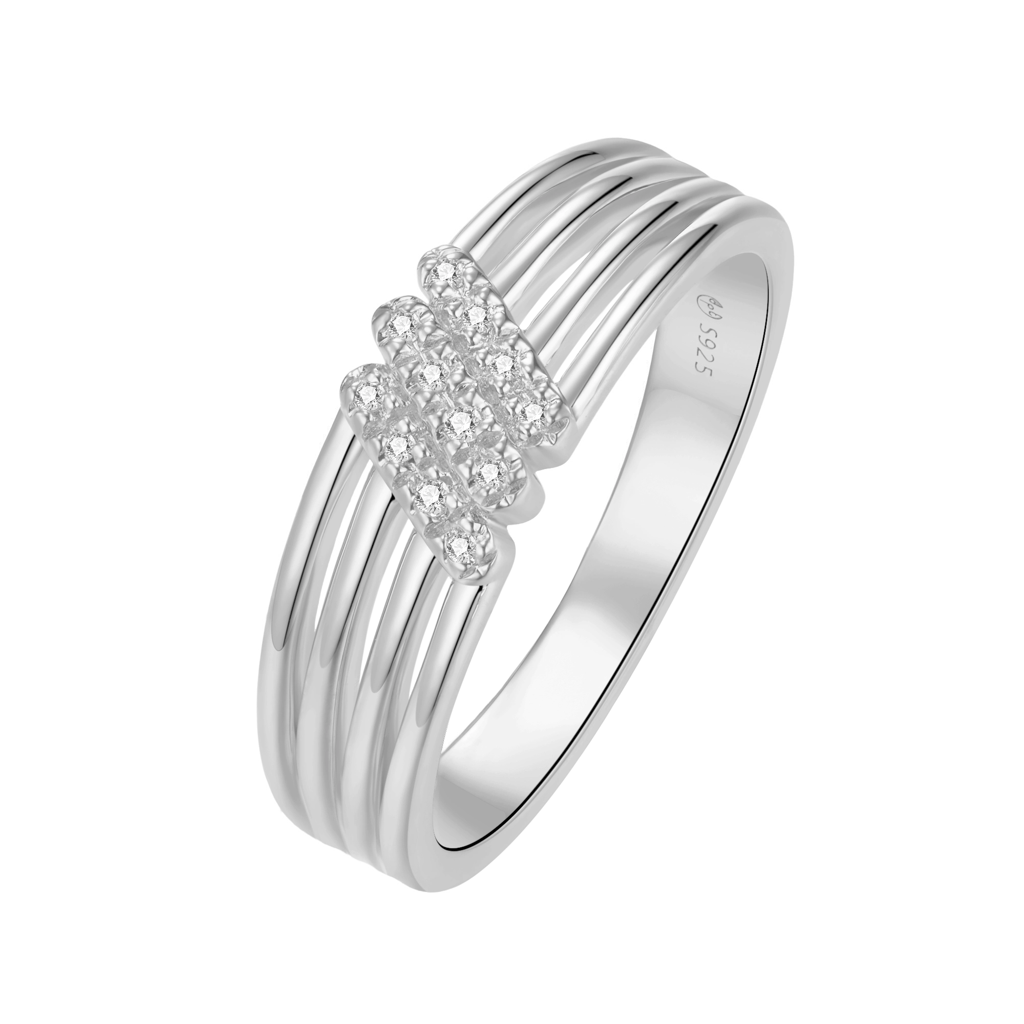 Float effortlessly into elegance — a triple band inspired by the celestial beauty of the free-spirited air element. Three vertical lanes of pavé-set diamonds (12x) shimmer side by side, like trails of starlight cutting through a clear night sky. Designed to embody lightness and grace, this piece is a tribute to the boundless energy of the winds.