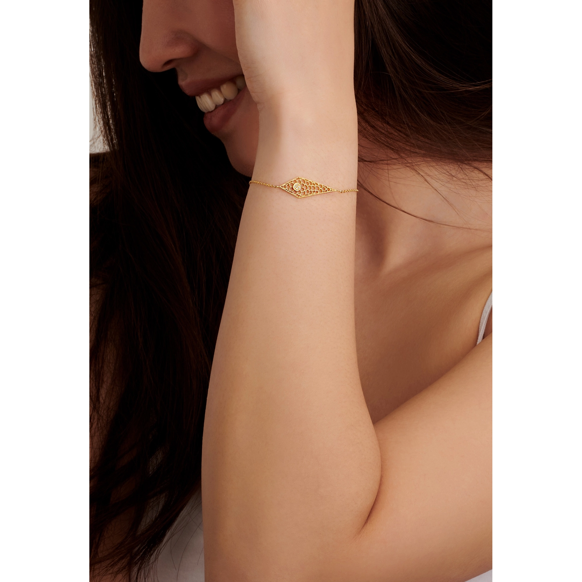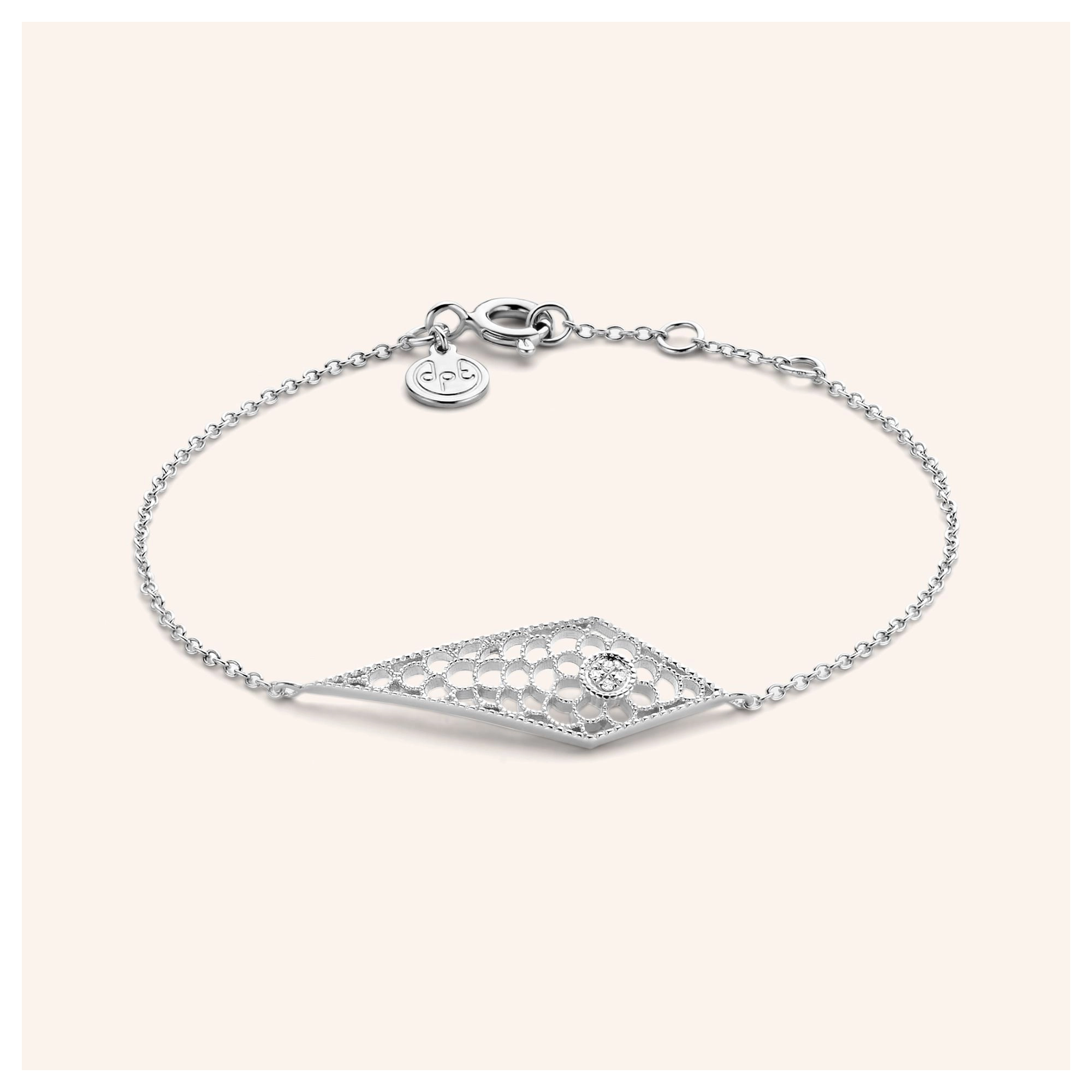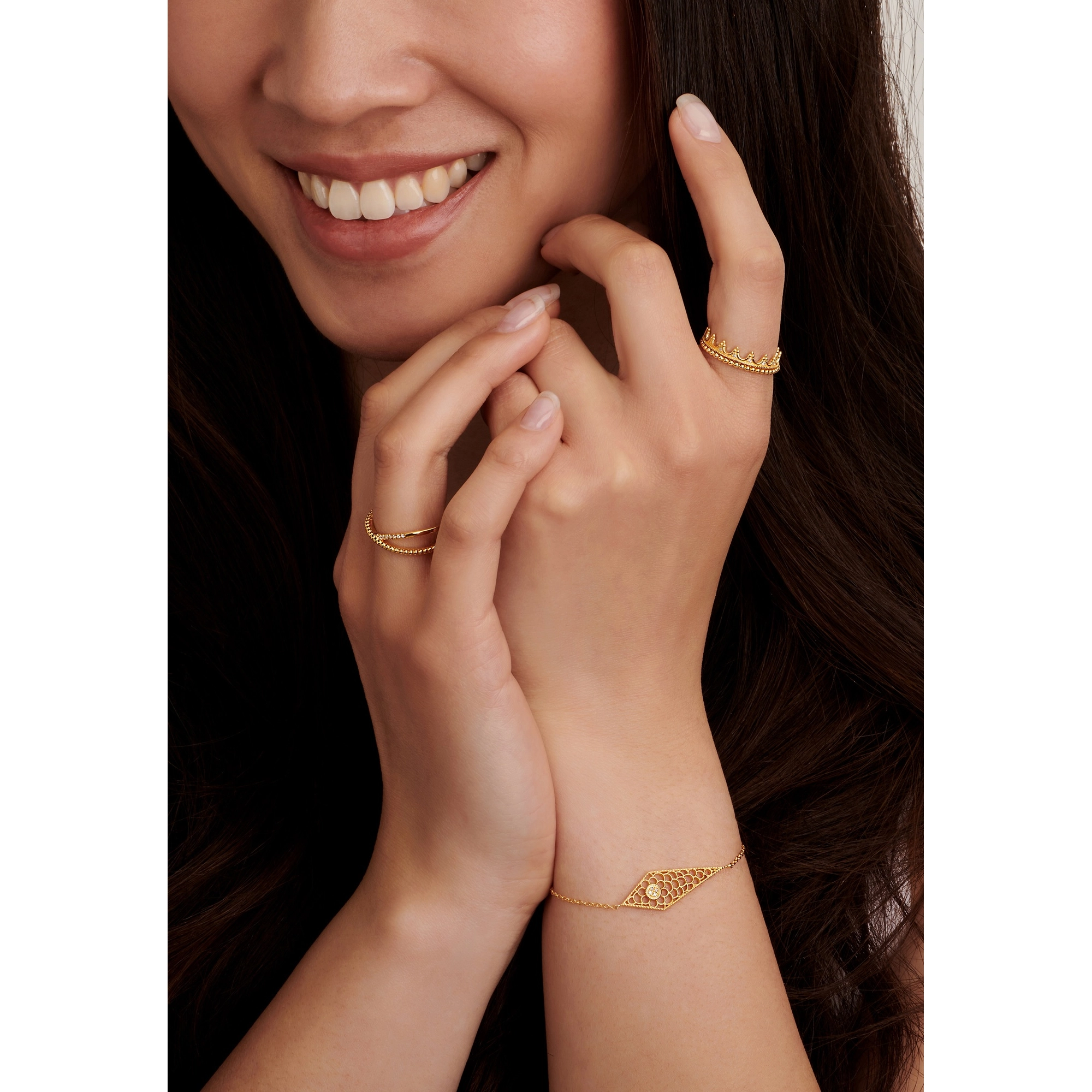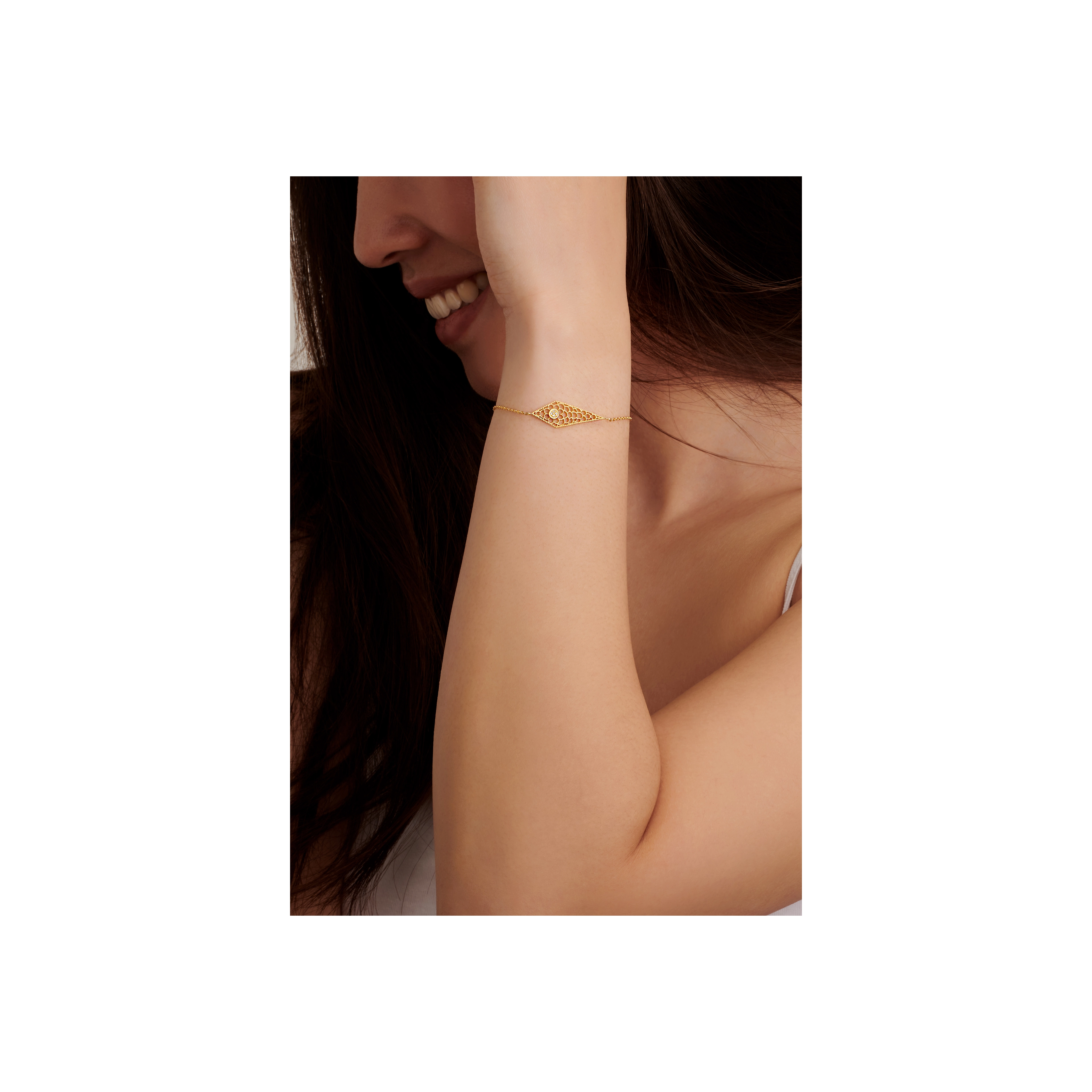Nothing sparks more joy than life's surprising encounters. Our Miracle bracelet with its oriental cut-out pattern, handset with 4x white diamonds, make up a surprisingly enchanting mix of rich details and organic shapes.