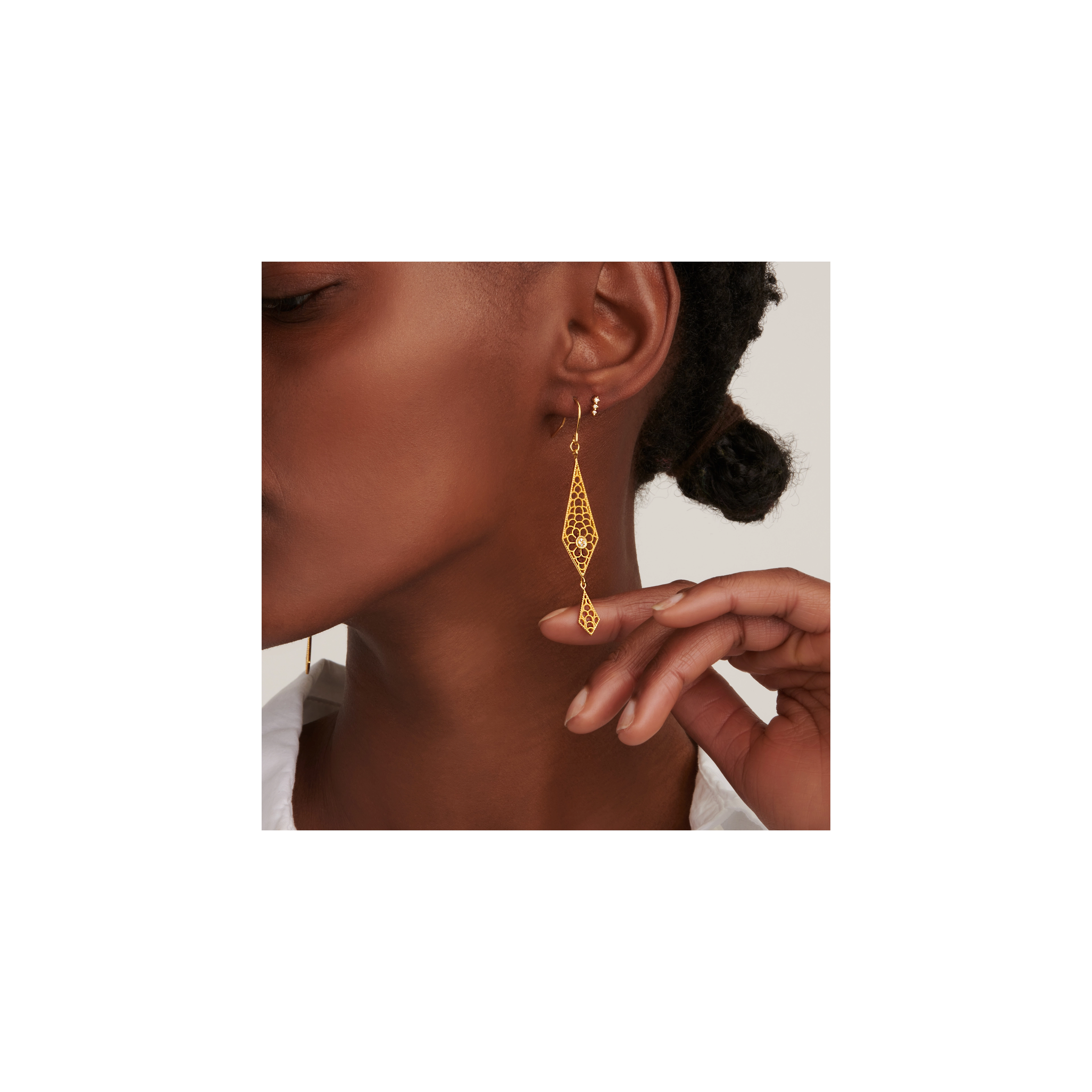 Nothing sparks more joy than life's surprising encounters. Our Miracle chandelier earrings with their oriental cut-out pattern, each handset with 4x white diamonds, make up a surprisingly enchanting mix of rich details and organic shapes.