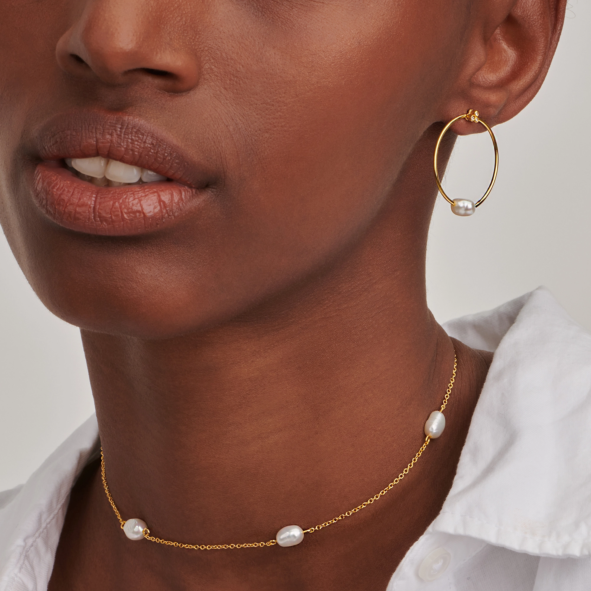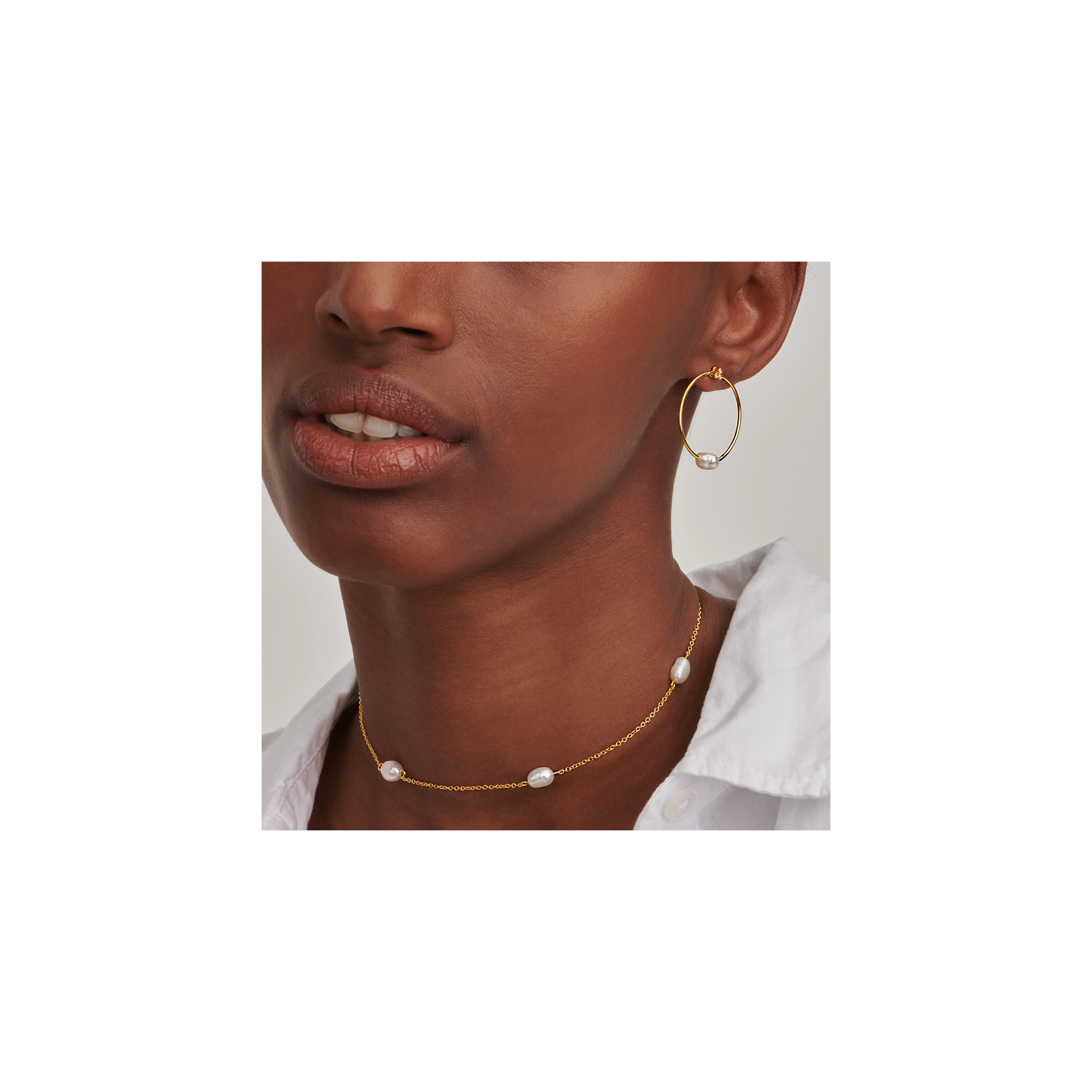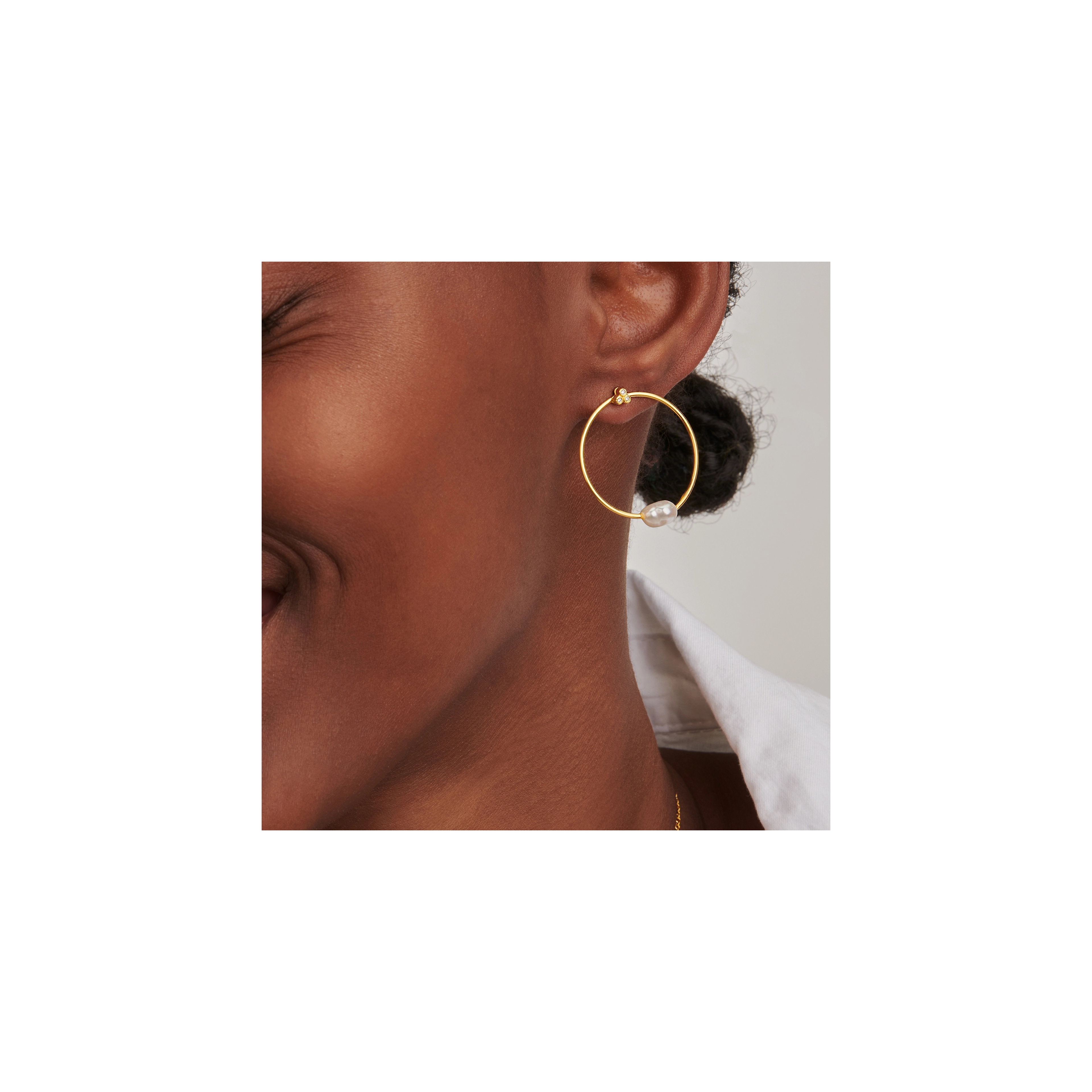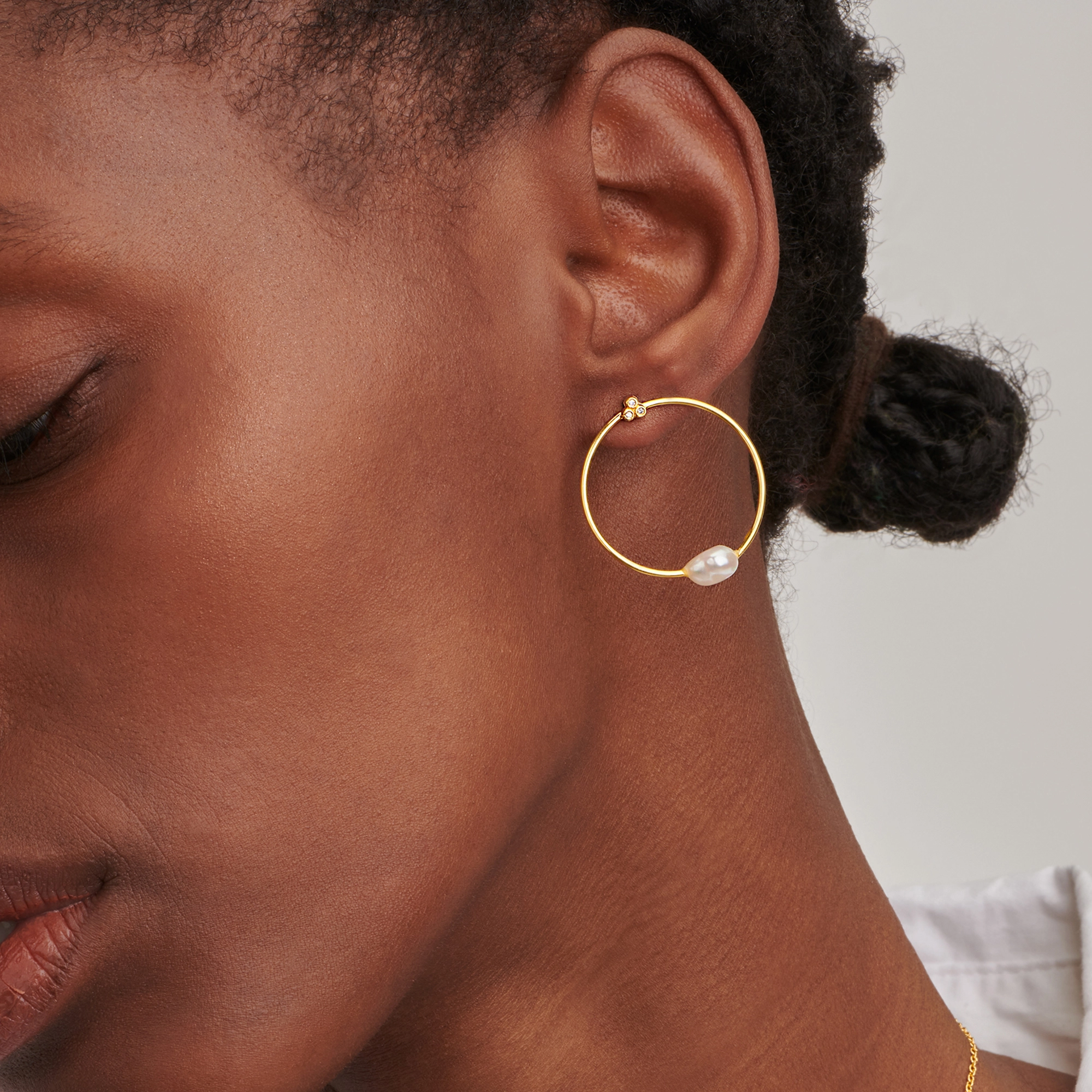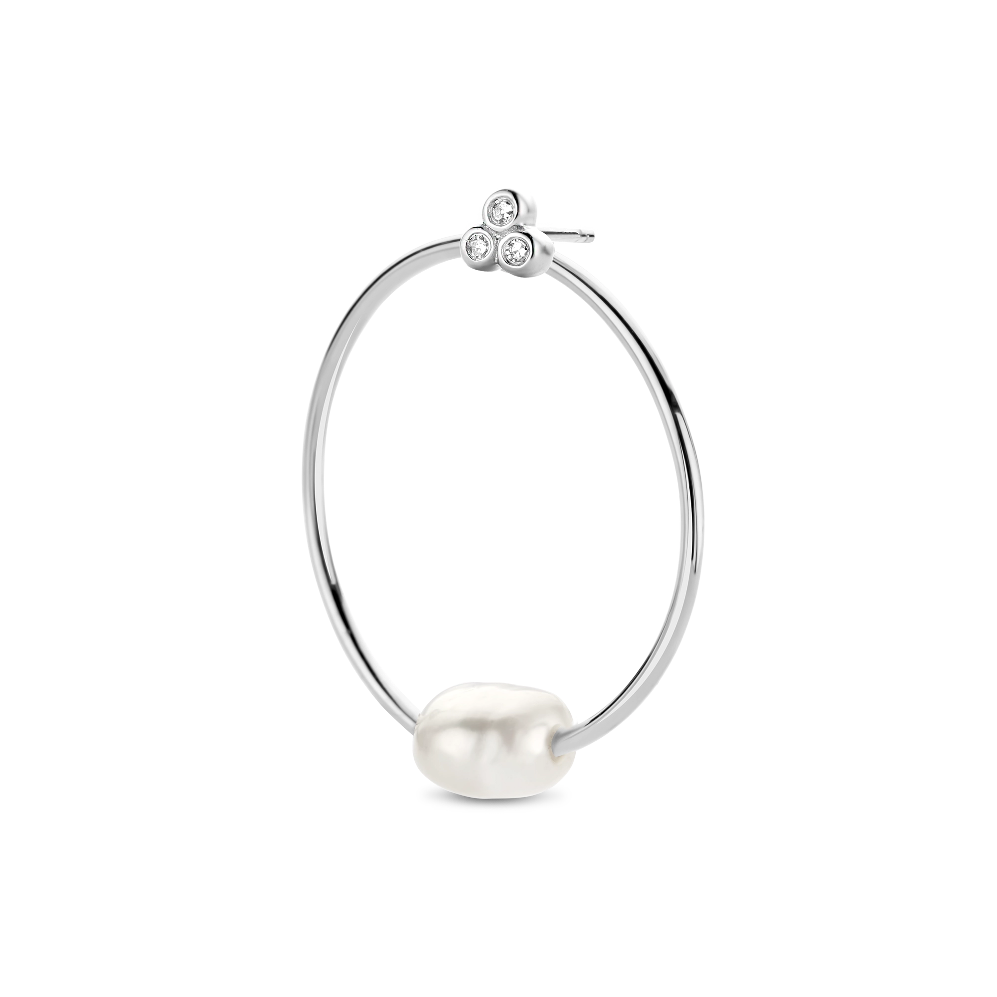 A stunning mother of pearl shine, ref lecting the glorious moonlight as the main feature of this baroque pearl single hoop. Let's have adventures in the dark, before the night changes.