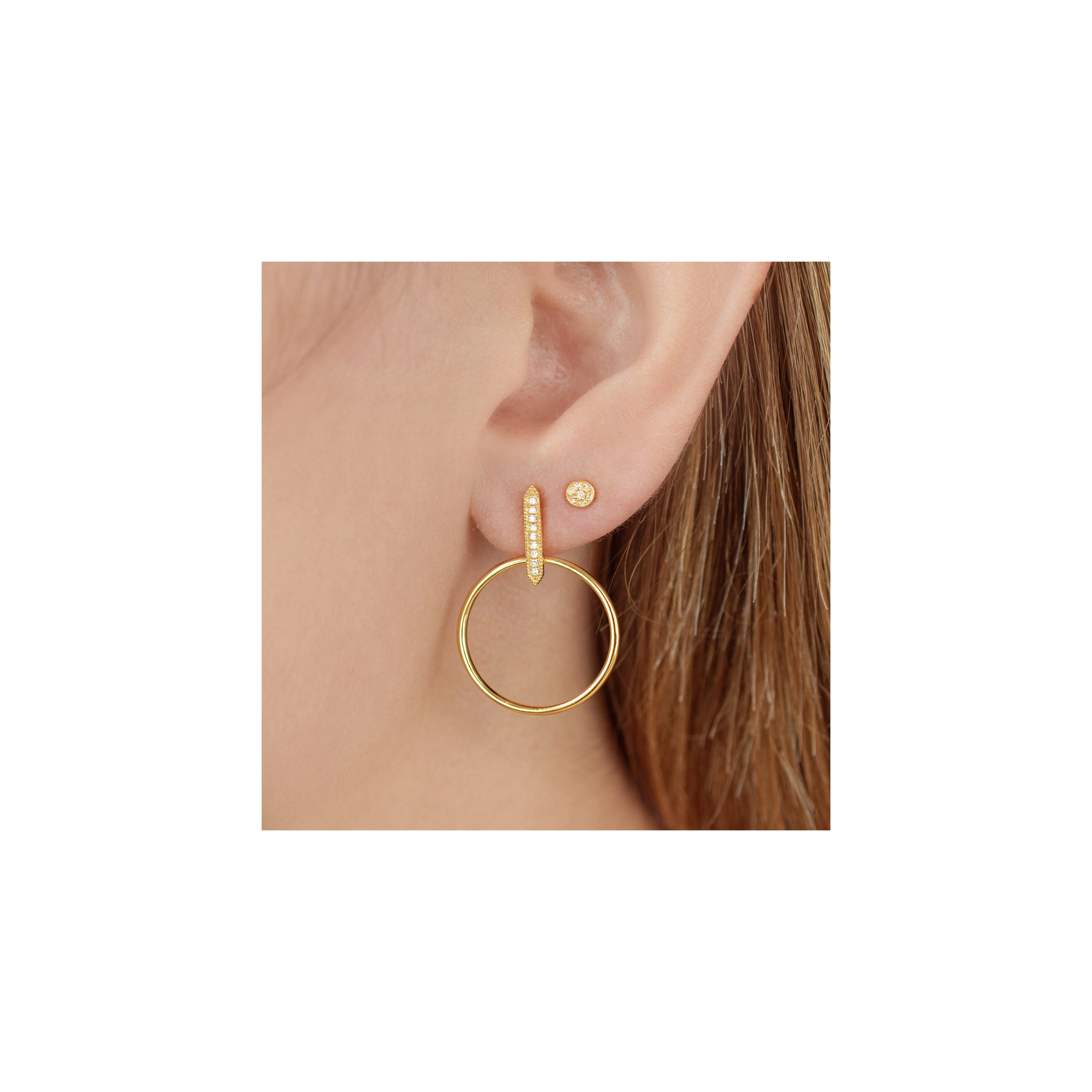 Simplicity with a little twist. Subtle and modern, this contemporary hoop will brighten up your day.