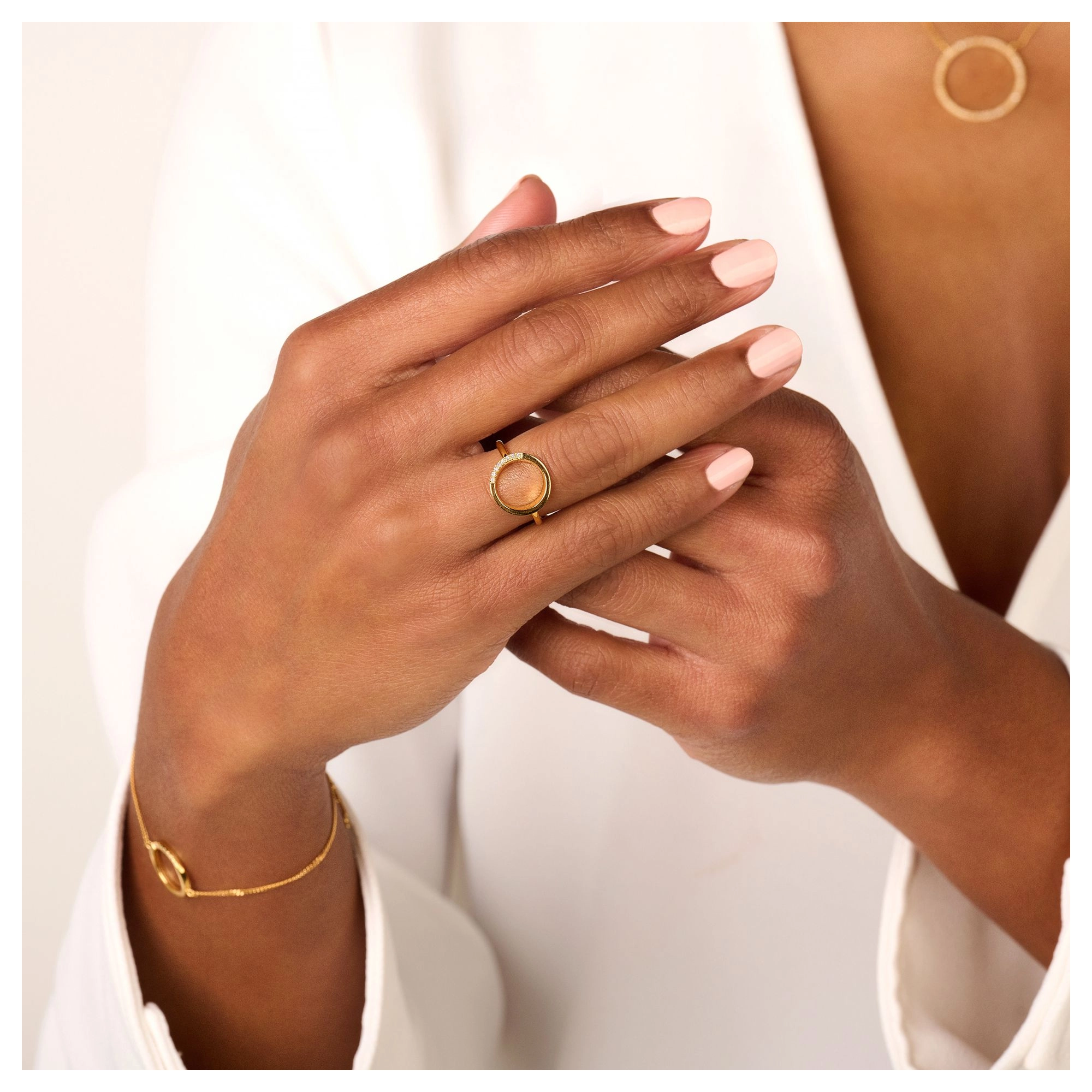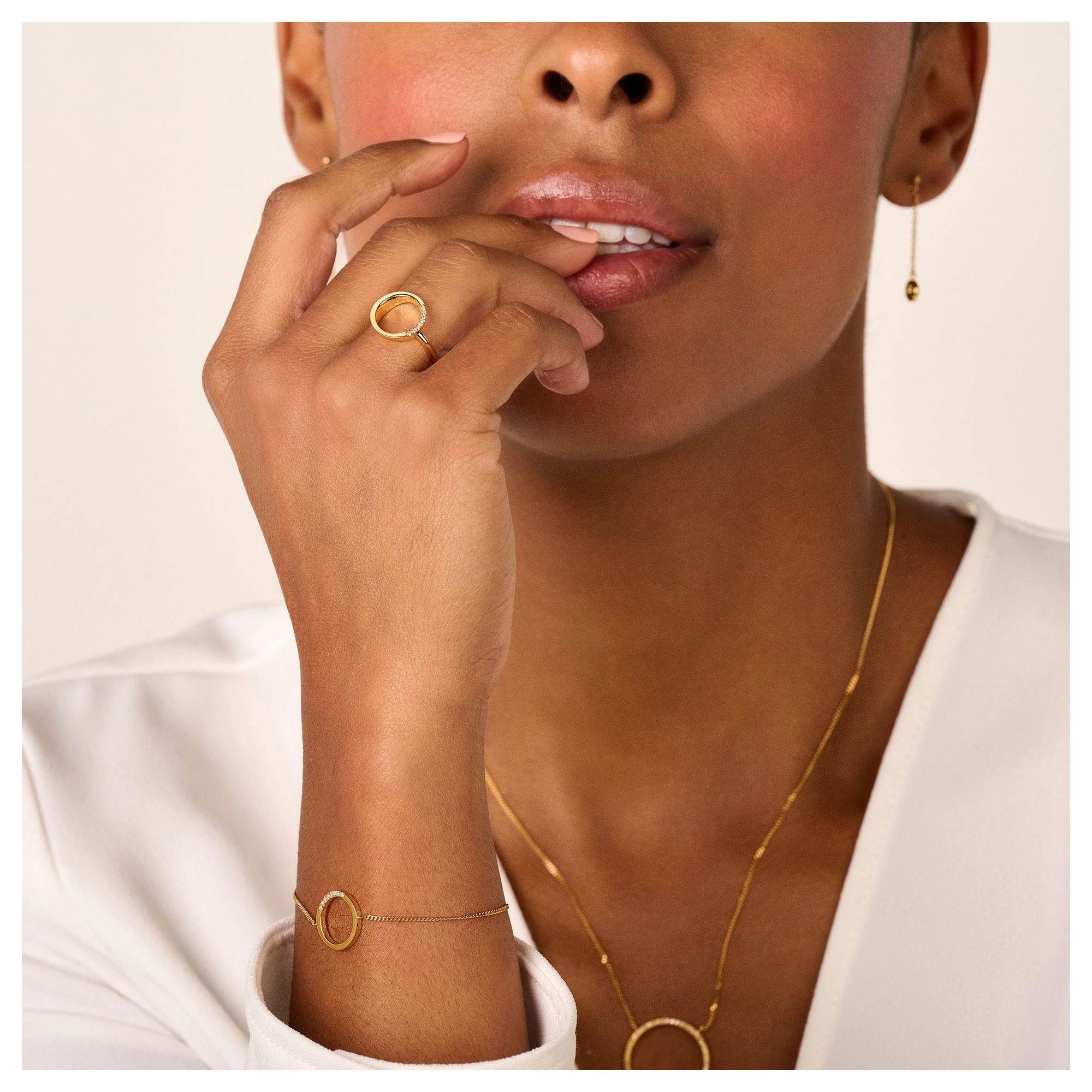 Add a little luxury to everyday life. This pure and timeless shaped ring, flashing 8x radiant diamonds, simply never goes out of style. Made in sterling silver, gilded with white rhodium or 18 carat yellow or rose gold vermeil.