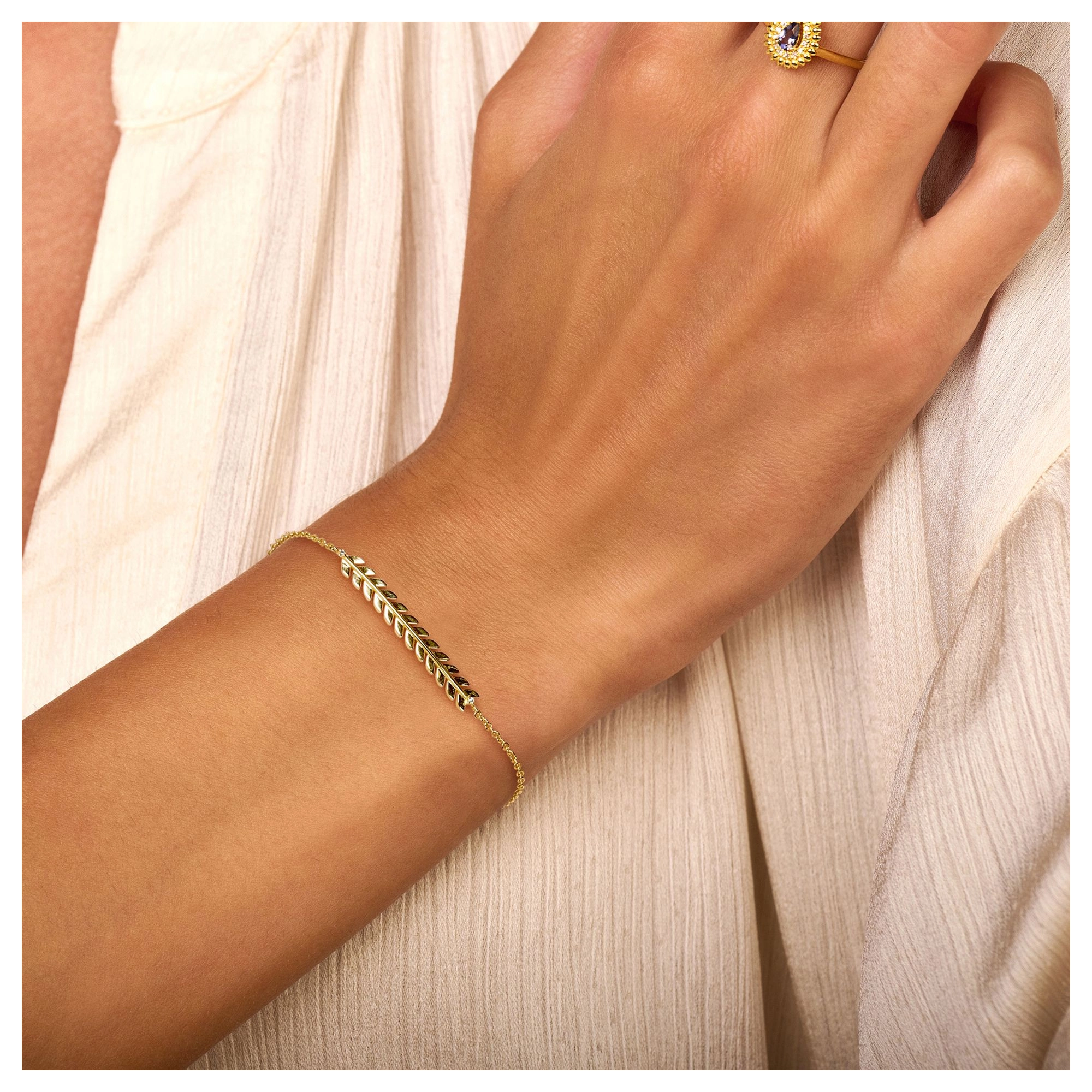 A contemporary willow branch, delicately draped and flowing around your wrist. With 2x signature diamond ends, there’s no limit to your radiating glow.
